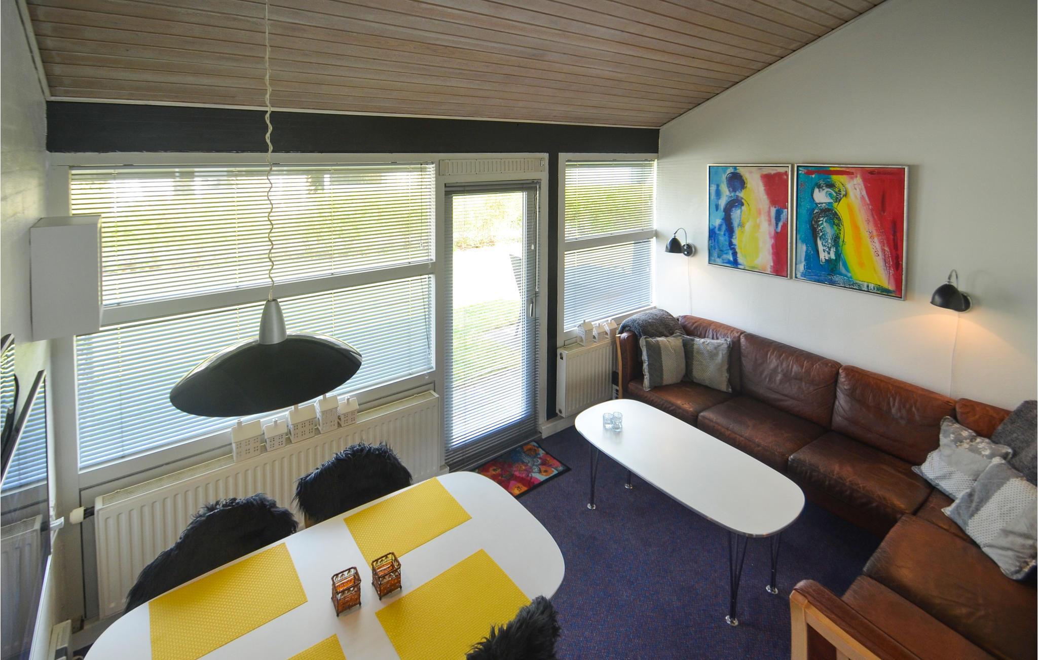 Huset består af 2 soveværelser og en hyggelig opholdsstue, hvor I rigtigt kan læne jer tilbage og slappe af i det store sofaarrangement, og den åbne indretning lader jer nyde hinandens selskab mens der laves mad i det veludstyrede køkken. Her er blandt andet kaffemaskine, opvaskemaskine og mikroovn.
