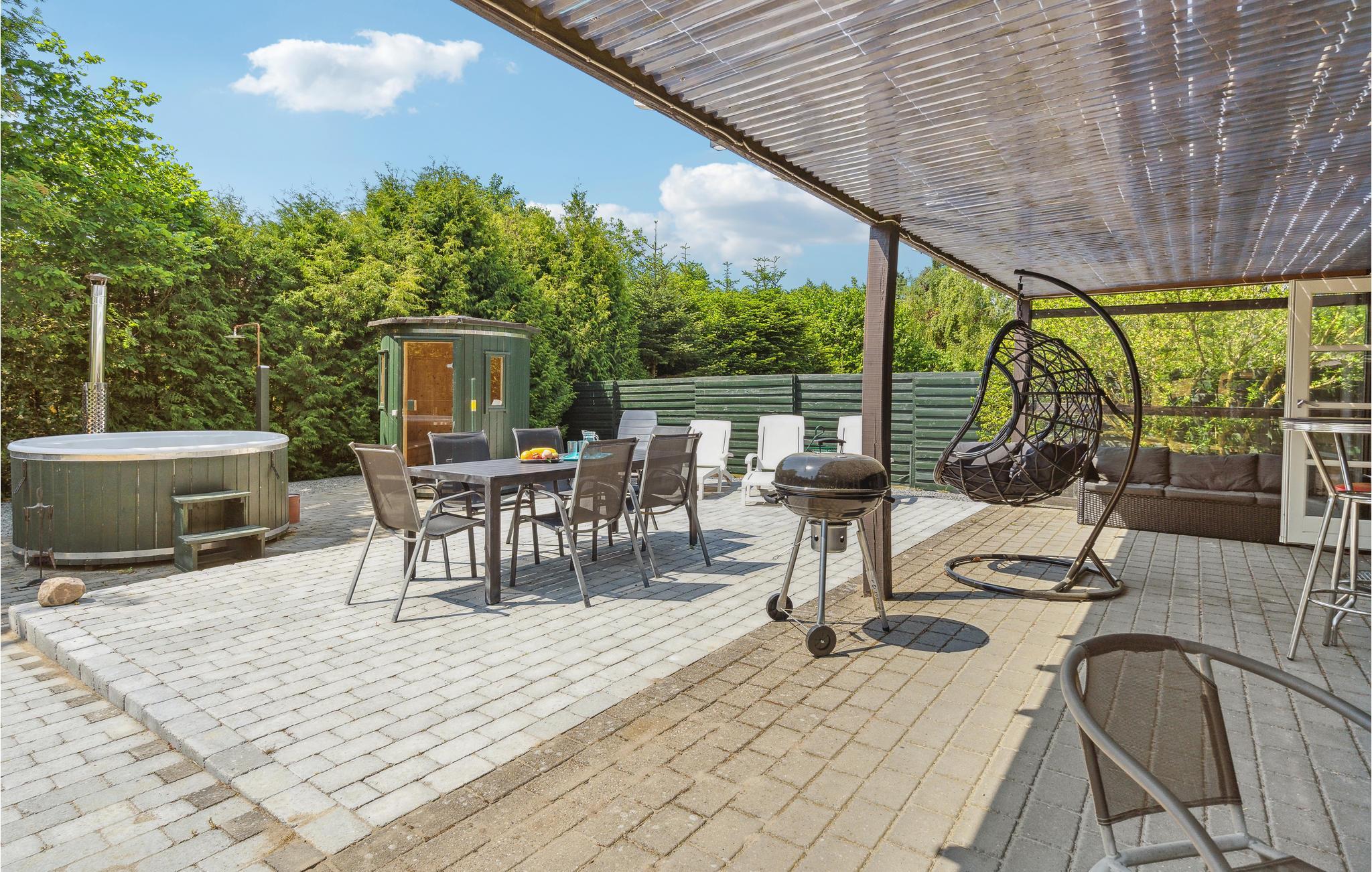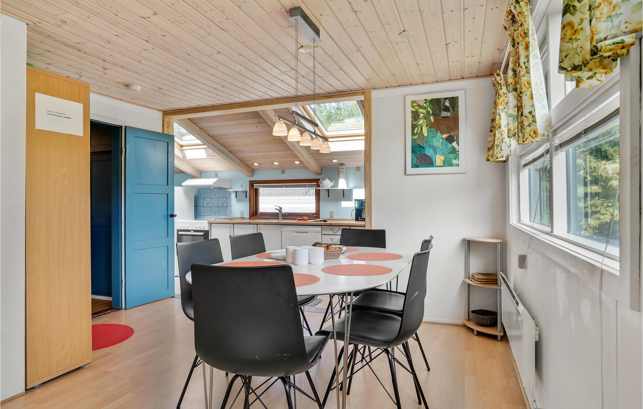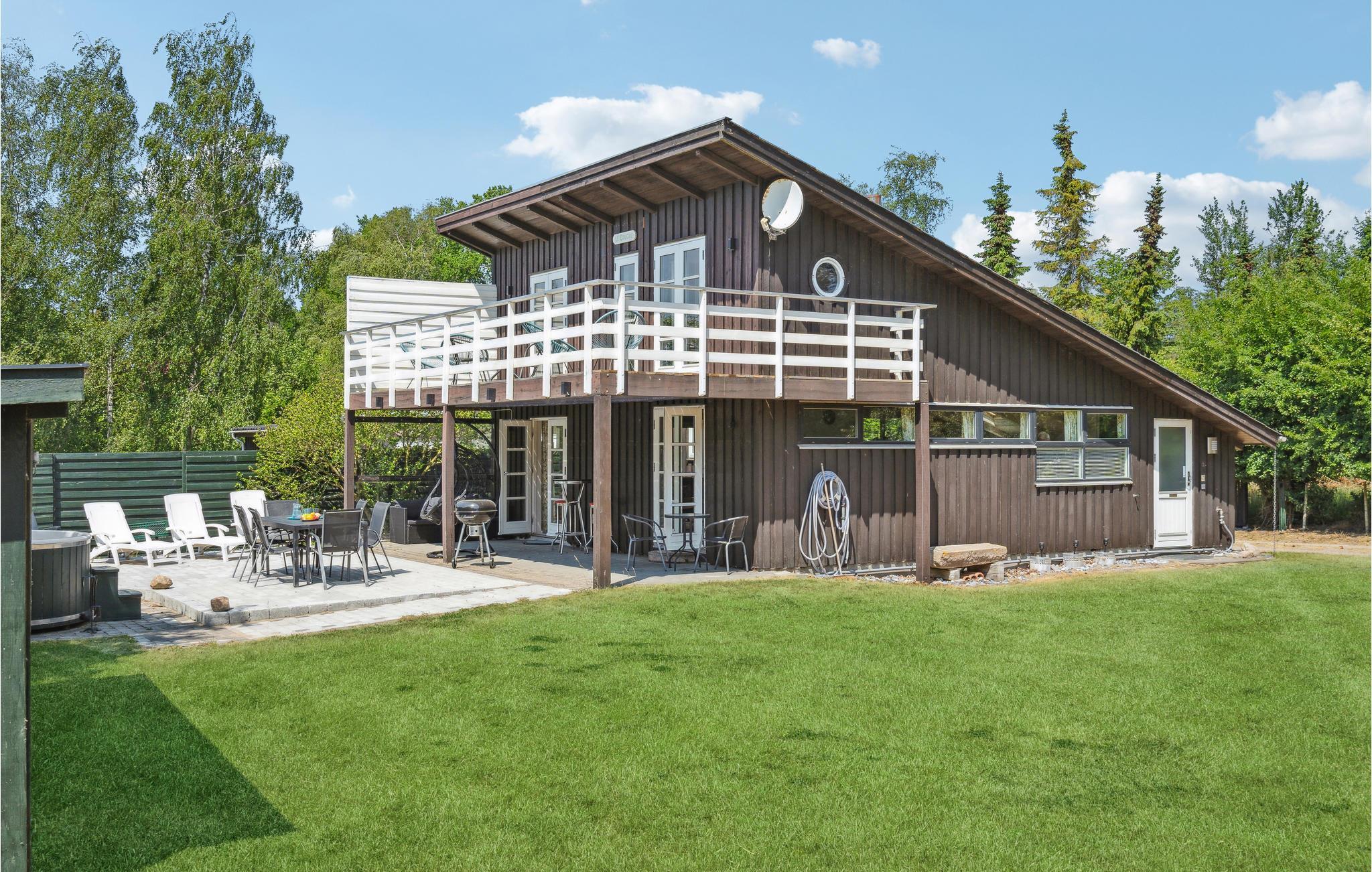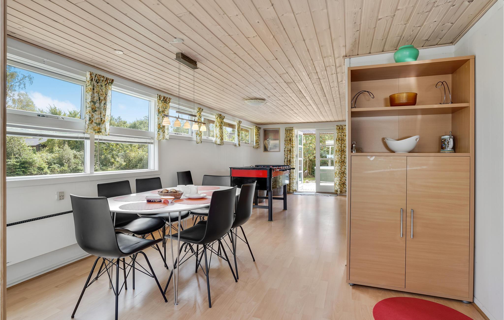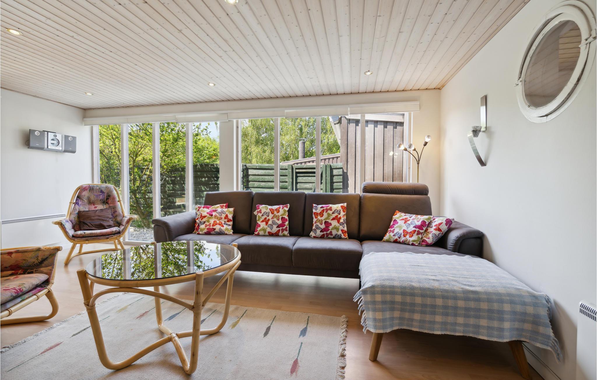 Huset er udstyret med komfortable møbler og åbent køkken i forbindelse med stuen. Soveværelserne findes på 1. sal. I haven er der opstillet vildmarksbad og sauna, hvorfra I kan nyde stjernehimlen og varme jer i den kolde periode. Huset er sammenbygget med K15744, men grundene er adskilt af hegn.