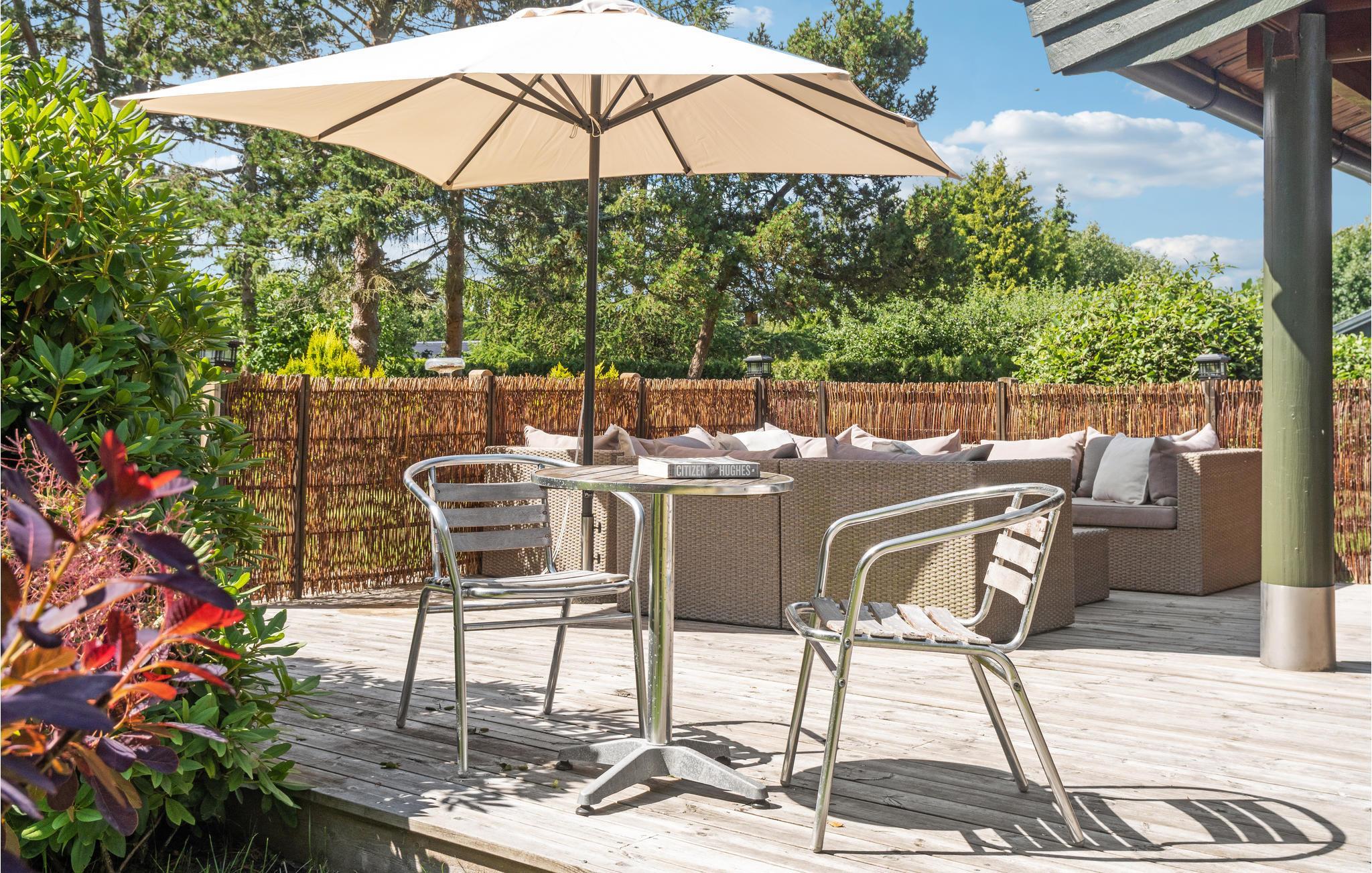 Nyd en fredelig ferie i dette indbydende bjælkehus med en varm atmosfære og hyggelige detaljer nær stranden. Ud med den stressfyldte hverdag og ind med balance og nærvær. Her venter velvære! Træhuset er det ideelle sted til at nyde tiltrængt kvalitetstid, at skabe sjove ferieminder og til selv at sætte tempoet. Glæd jer til aftener med gæt og grimasser og spillehygge ved spisebordet. Lav jeres yndlingsretter i køkkenet og nyd solen på et tæppe i haven eller på den dejlige terrasse, hvor der er skruet op for hyggen med en skøn loungekrog. Det perfekte sted til kølige forfriskninger og aftenhygge. Den ugenerte naturgrund bliver et hit hos børnene. Måske står den på BBQ med efterfølgende koldskål i aften? Den skønne sandstrand ligger i nærheden, og her kan børnene hoppe i vandet flere gange om dagen.