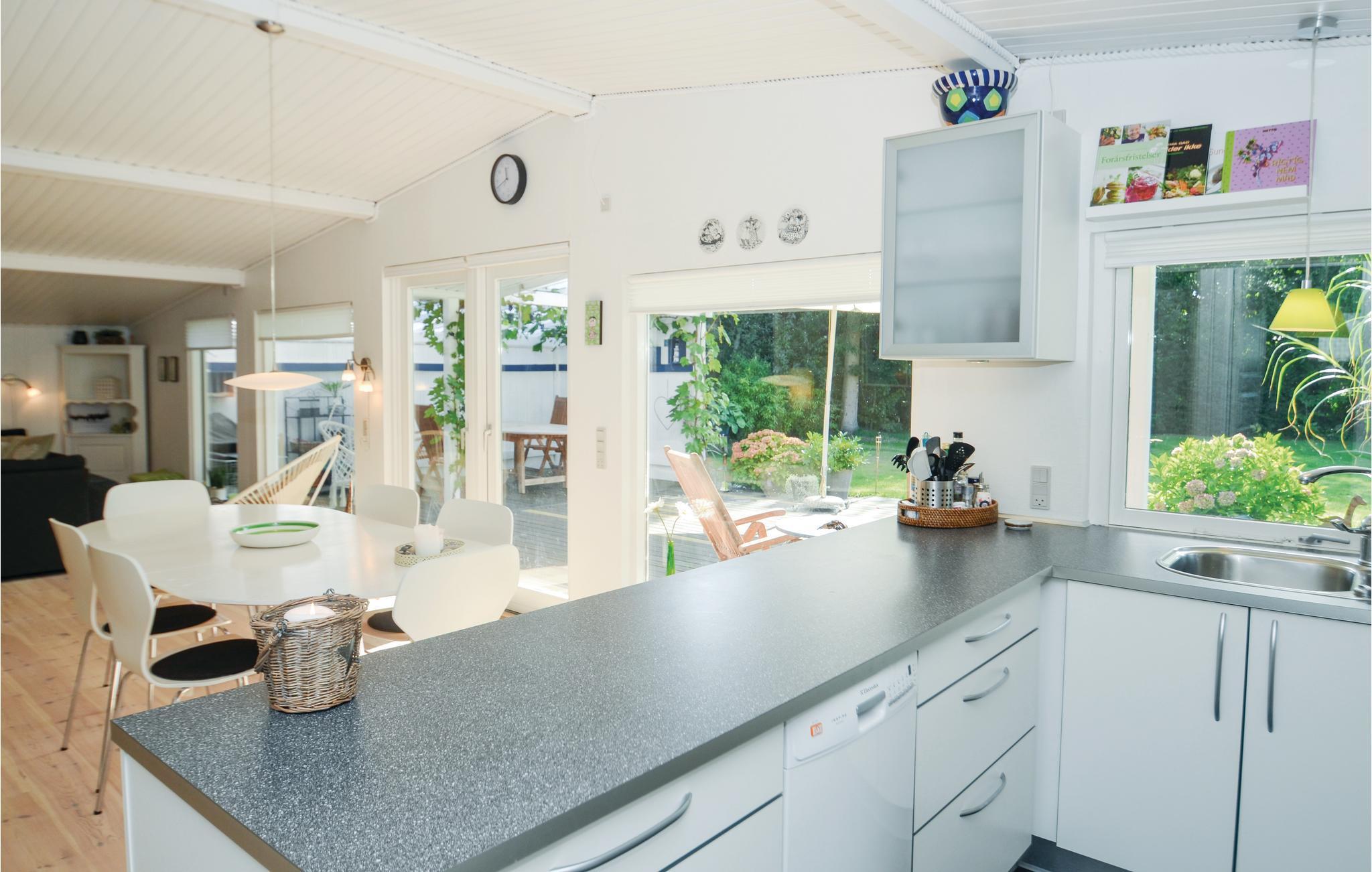 På en skøn naturgrund med masser af muligheder for udendørsaktiviteter ligger dette hyggelige sommerhus, som vil være en skøn base for jeres næste familie- elller venneferie. Indretningen er lys og behaglig med gode hyggekroge, så her kan I puste ud over på dagens oplevelser og er sikret et godt udgangspunkt for en dejlig ferie med fællesskab og aktiviteter. Der er både overdækket og åben terrasse, hvor den friske luft kan nydes i ro og mag. Området ved sommerhuset byder på gode strande samt surfskole og gokartbane, hvis der skal fart over feltet på ferien.