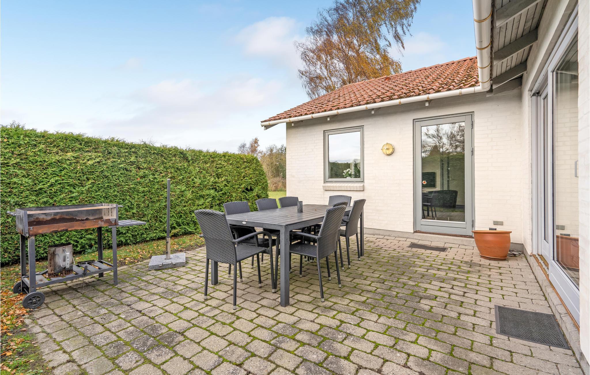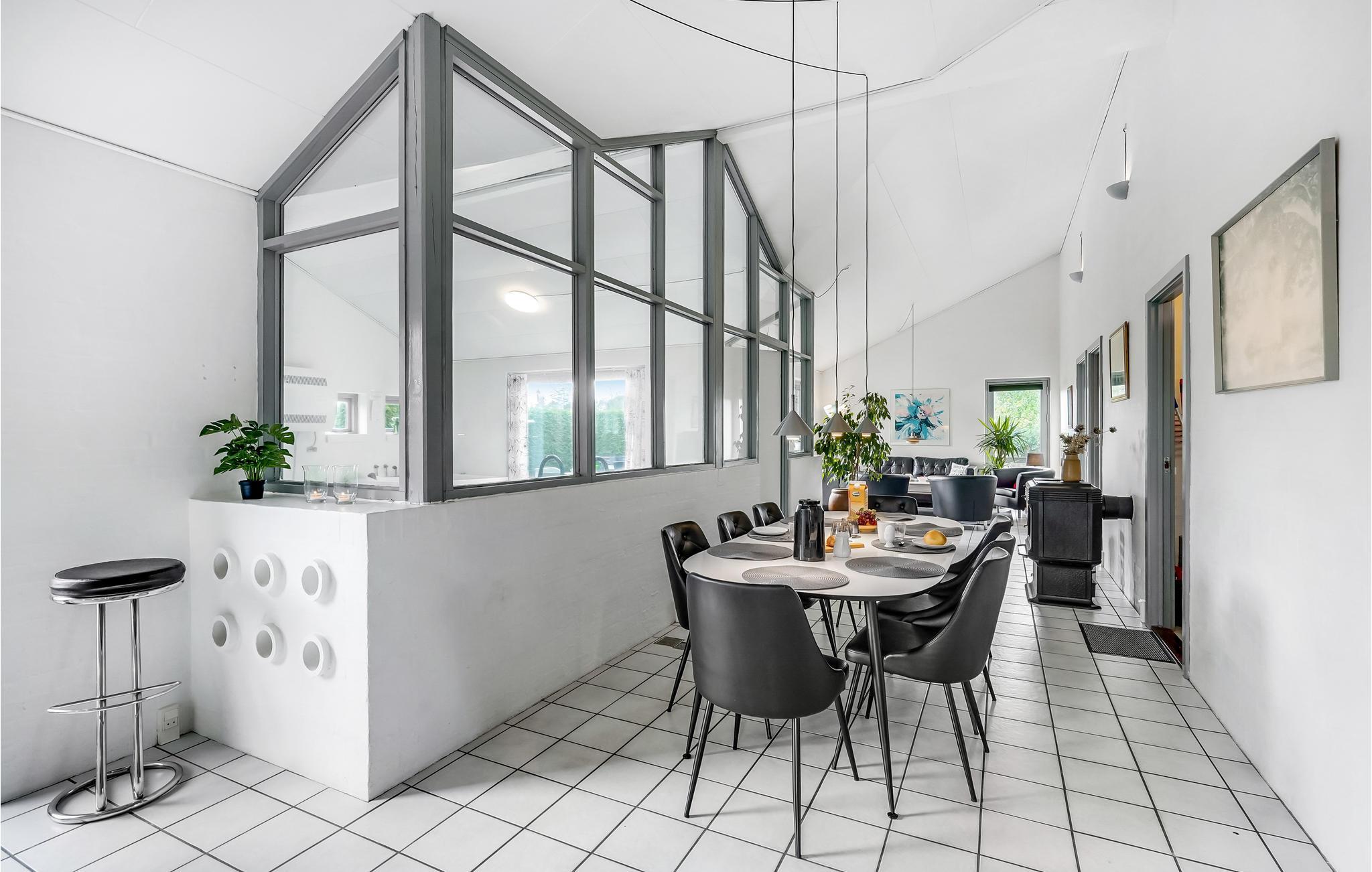 Dette store feriehus har plads til otte gæster velkommen. Her får I hyggelige rammer om jeres ophold, uanset om tiden skal gå med at slappe af ved brændovnen i stuen eller hoppe en tur i poolen. Efter lange gåture ved vandet kan I få varmen i saunaen eller læne jer tilbage i spabadet. Den store have byder på gode solkroge, hvor I kan nyde en kop kaffe, mens børnene boltrer sig på græsplænen eller svinger sig i gyngerne. Terrassen bliver jeres foretrukne sted til dagens måltider i sommerhalvåret, så glæd jer til lyse sommeraftener, mens grillen simrer.