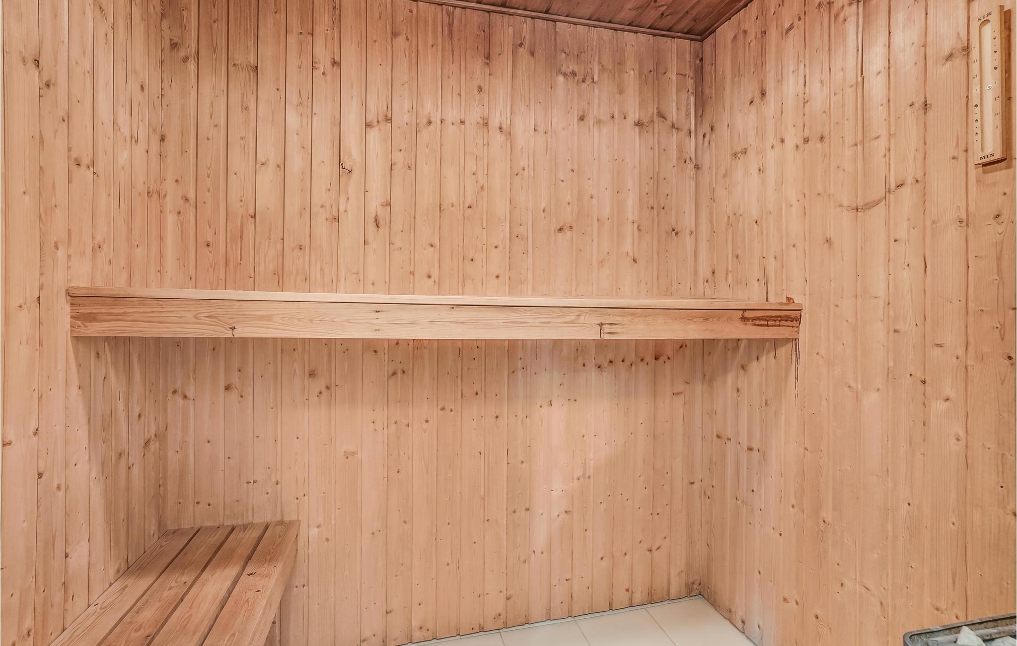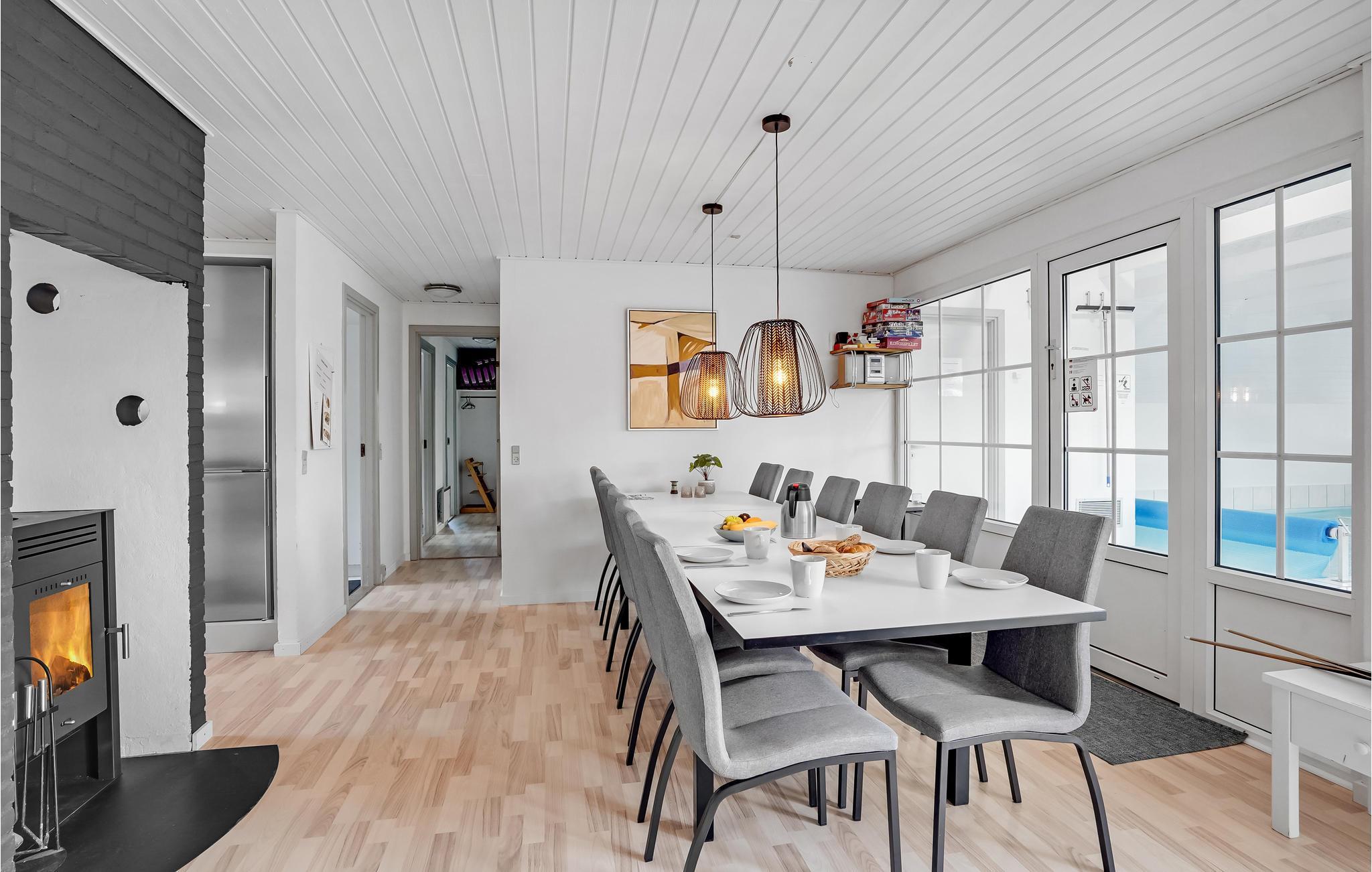 Indvendigt er huset lyst og rummeligt og har alt, hvad hjertet kan begære. Huset oser af personlig indretning og hyggemiljø med brændeovn og spillebord. Det dejlige åbne køkken med adgang til den kombinerede spise- og opholdsstue fremstår rigtig flot. Her kan I tilberede og nyde lækre feriemåltider og flade ud foran den store fladskærm om aftenen. Husets midtpunkt er uden tvivl det store poolrum med lyddæmpende loft, hvor swimmingpoolen står klar til den daglige motion og leg. Poolen bliver opvarmet med varmepumpe, som er miljøvenlig og sparer jer for penge. Endvidere kan I slappe herligt af i spahjørnet og saunaen.