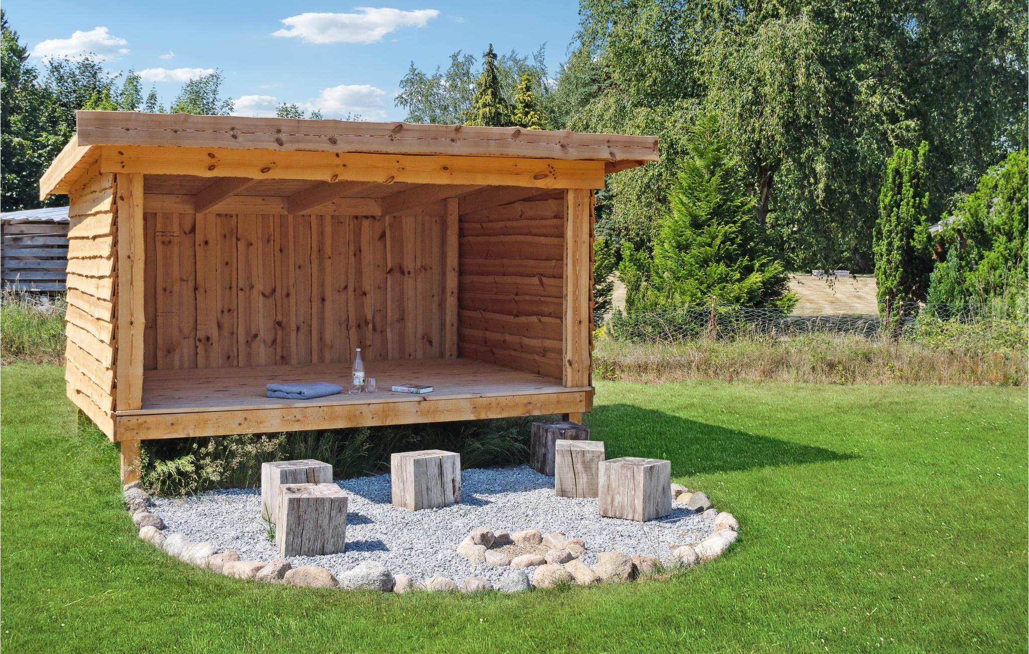 Udendørs findes en ugenert og lukket sydvestvendt terrasse, som indbyder til solbadning, ferielæsning og hyggelige grillaftener. Husets naturgrund er dejlig stor, så her kan børn og voksne hygge sig, bl.a. på legestativet og med andre udendørsaktiviteter.