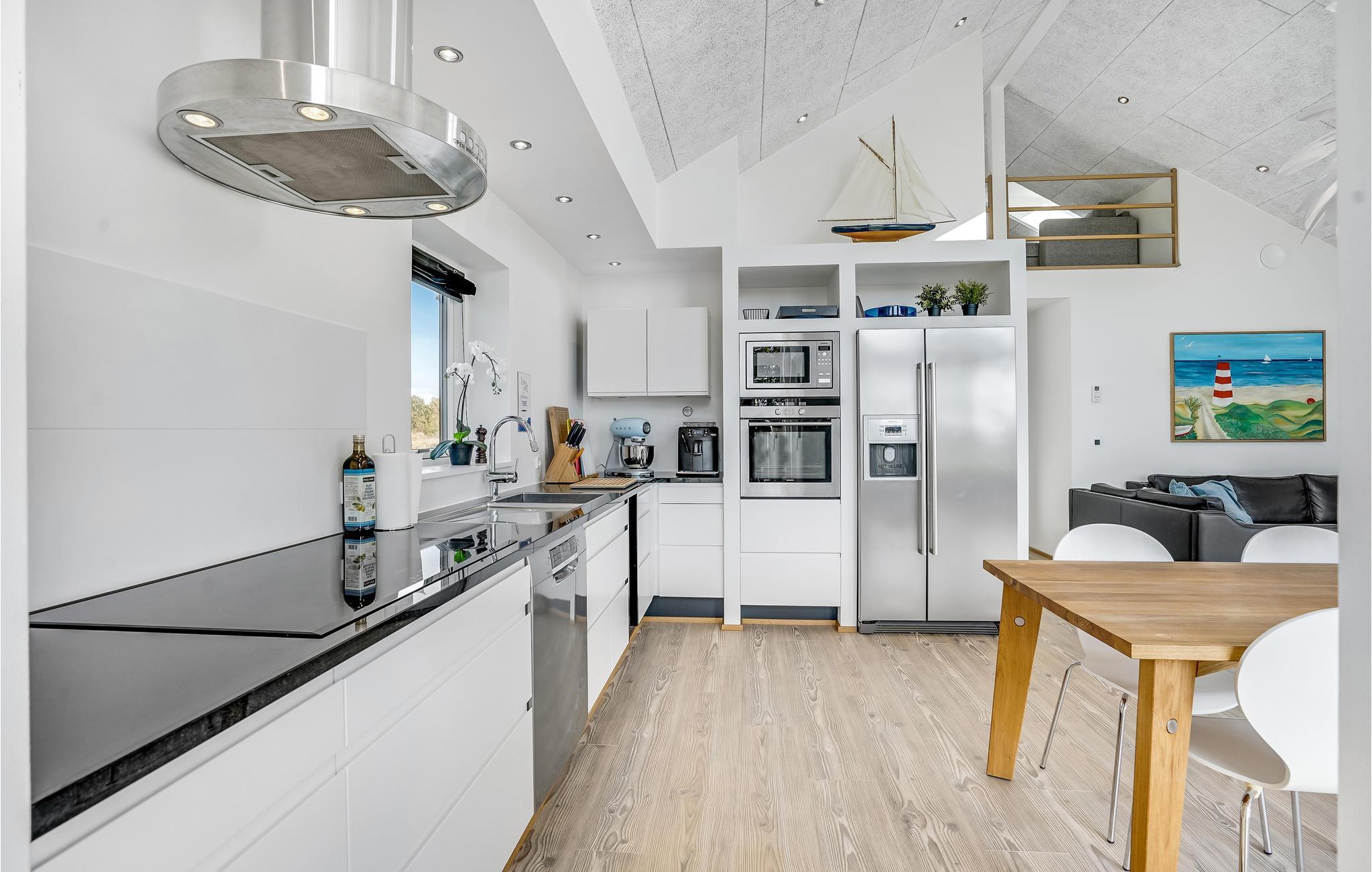 Lækkert sommerhus ved Marielyst på Sydfalster. Huset er bygget i 2018 og i de bedste materialer, hvor der er lagt vægt på energibesparelse. Huset er samtidig udstyret med ventilationsanlæg og centralstøvsuger. Åbent køkken i forbindelse med stuen, hvorfra der er udgang til terrassen. I det udendørs brændefyrede vildmarksbad kan I nyde den smukke udsigt over søerne, og hoppe en tur i saunaen bagefter. Ikke mindre en to badeværelser, så der nemt kan bo to familier sammen. Marielyst byder på forlystelser, som Golf And Fun bane - Gokart bane og minigolf. I centrum findes restauranter og indkøbsmuligheder. Marielyst strand er børnevenlig og en af Danmarks bedste.