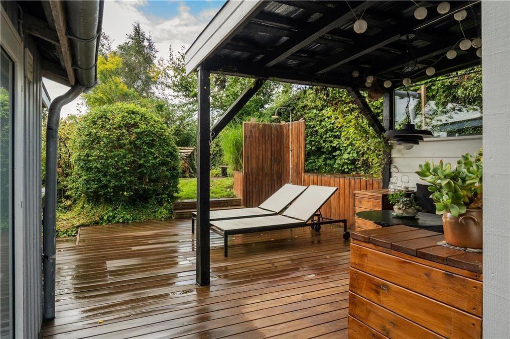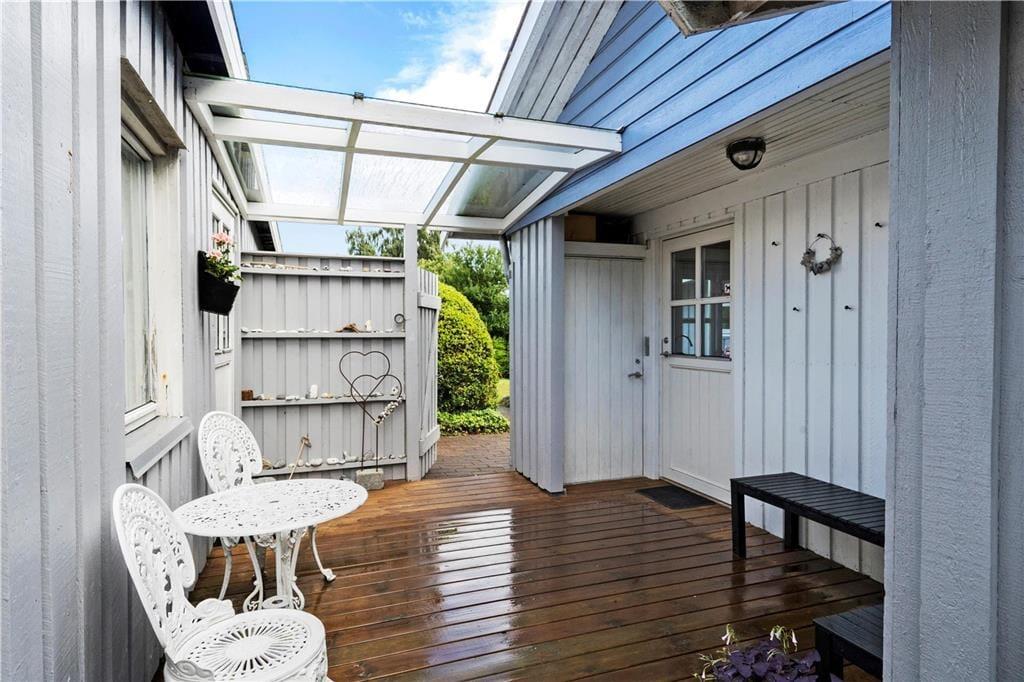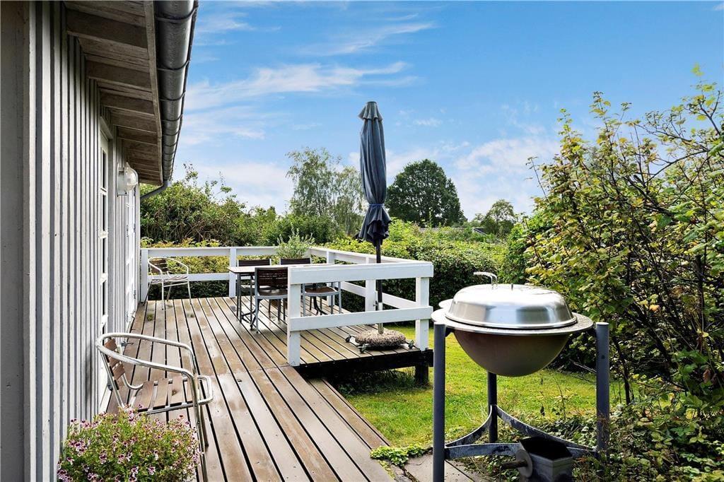 Udenfor kan du se frem til flere terrasser, hvor du altid kan finde den perfekte plads til at nyde dagen. Der er både åbne terrasser til solrige timer og en overdækket terrasse, hvor du kan sidde i læ og stadig være tæt på naturen. Den lukkede terrasse er ideel til hyggelige middage under åben himmel, og haven skaber trygge rammer for børnene. Her er plads til leg, afslapning og samvær, så udelivet bliver en naturlig del af ferien. Fra morgenkaffen i solen til aftengrill med familien er terrasserne rammen om mange gode stunder. Haven indbyder til spil, leg og stille pauser – en oplagt kulisse for ferieminder i det østjyske.