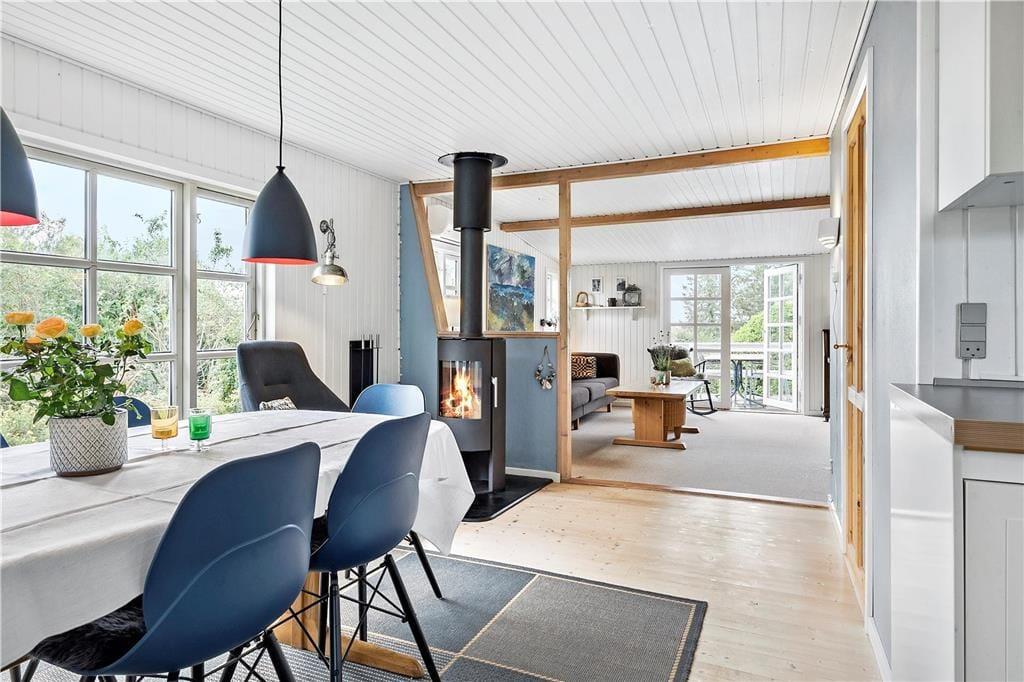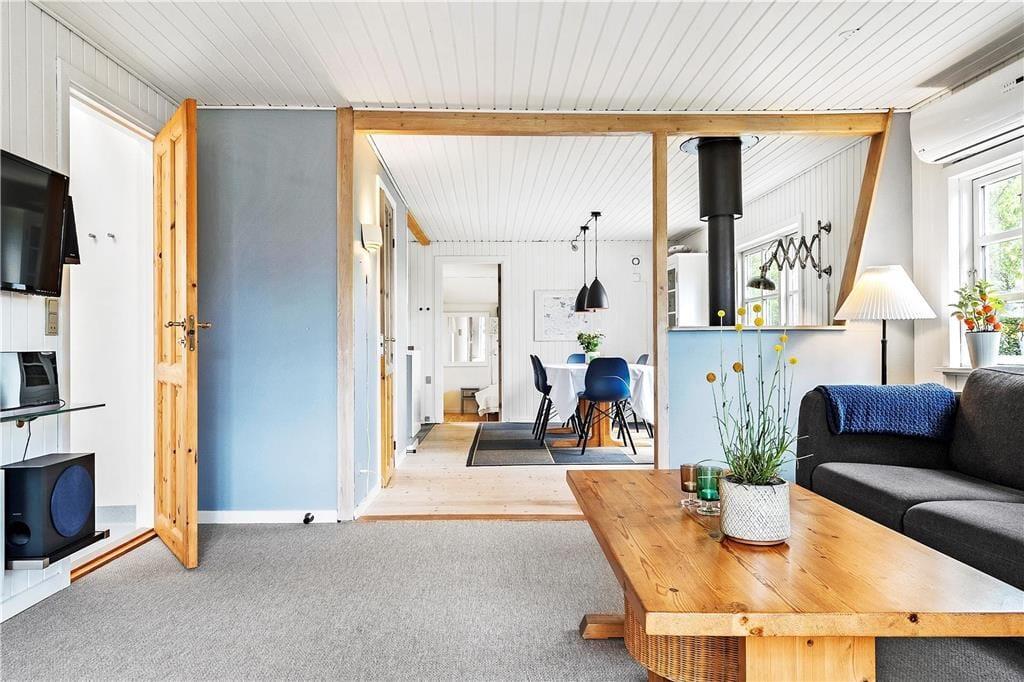 I dette hyggelige træsommerhus nær Ajstrup Strand og Mariendal Strand mærker du straks en varm og indbydende atmosfære. Husets lyse opholdsrum giver plads til både fælles måltider og afslapning foran brændeovnen. Med små hyggekroge fordelt rundt i huset er det nemt at finde et sted at trække sig tilbage med en bog eller en kop kaffe. Når du trænger til lidt ekstra velvære, venter husets indendørs spa, hvor du kan koble af og give kroppen en tiltrængt pause. Det er et sommerhus, der kombinerer funktionalitet med stemning, så hele familien kan føle sig hjemme fra første øjeblik.