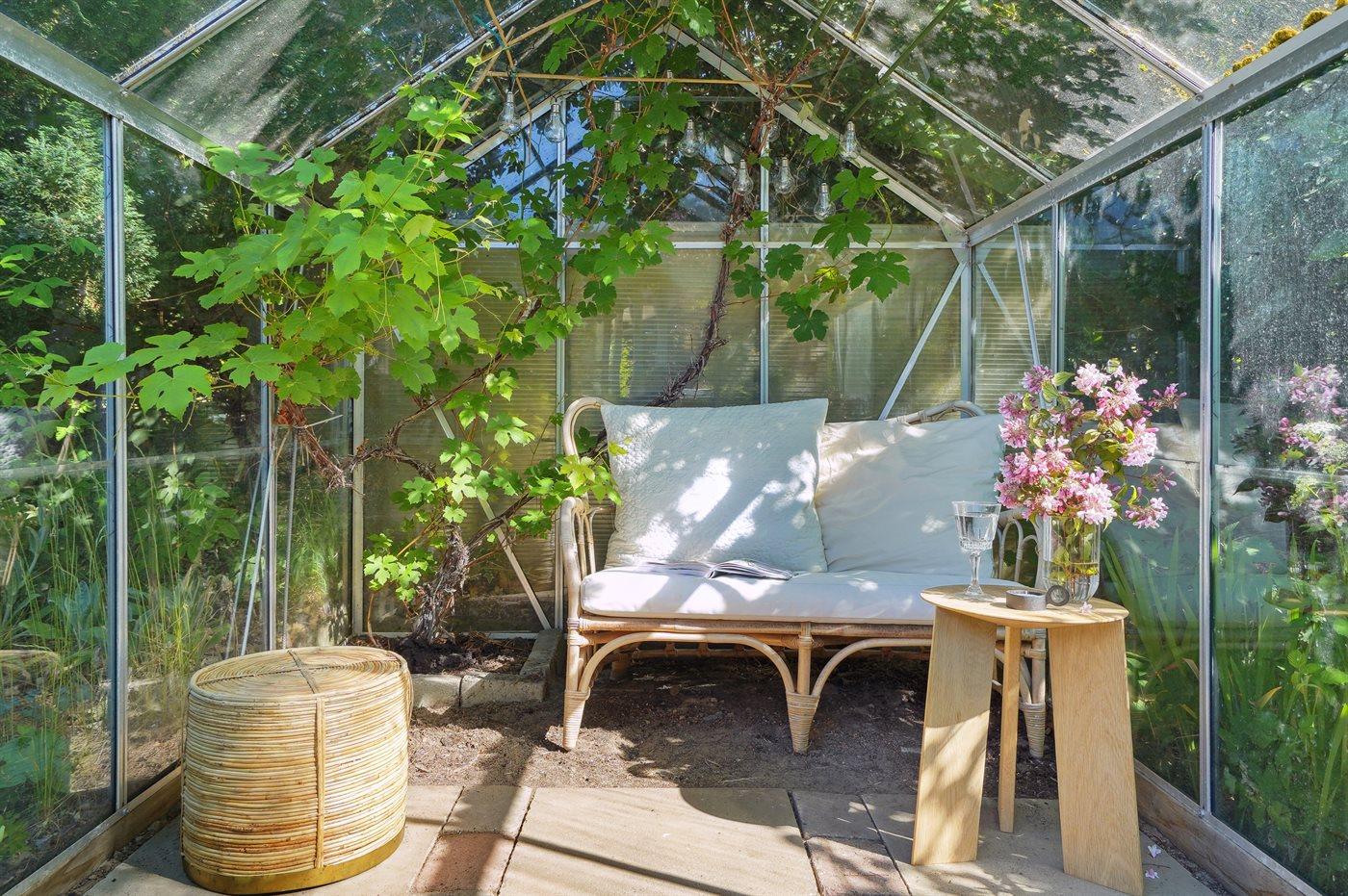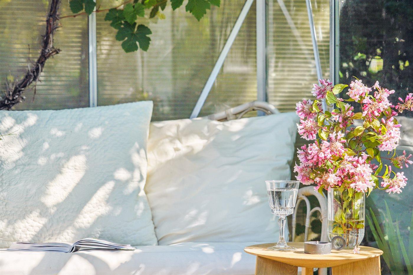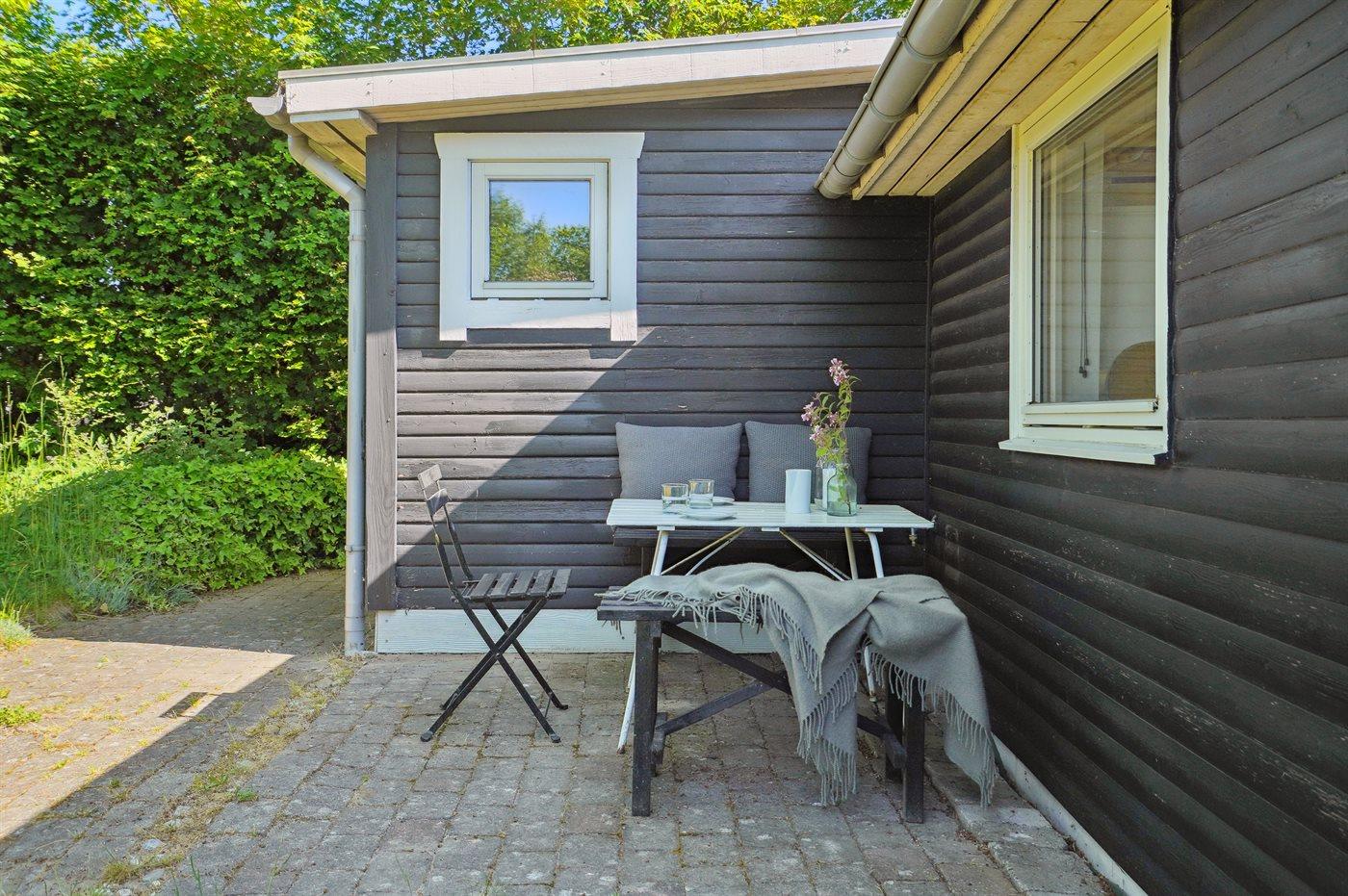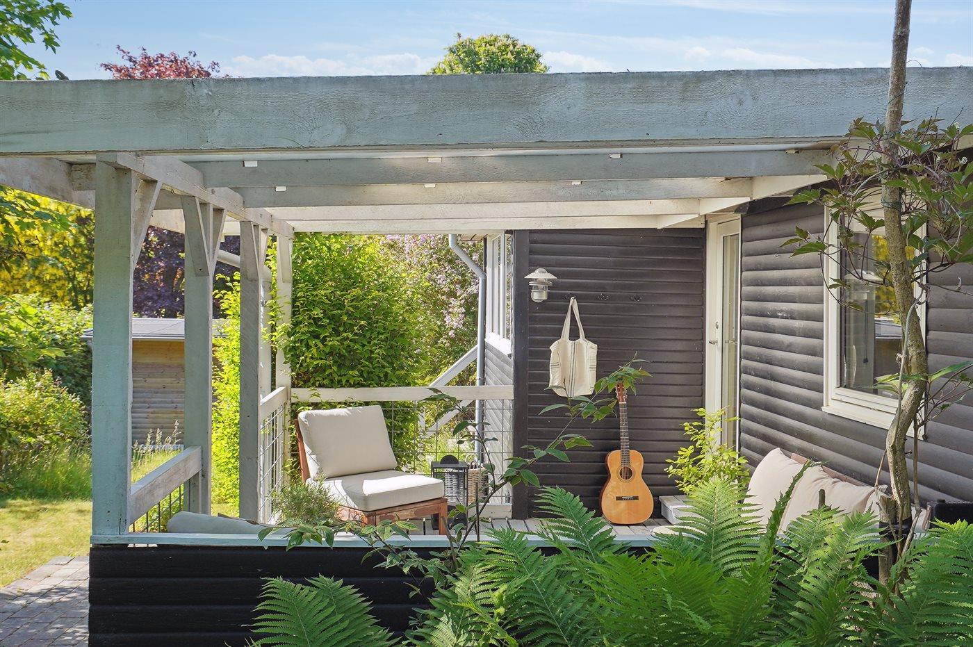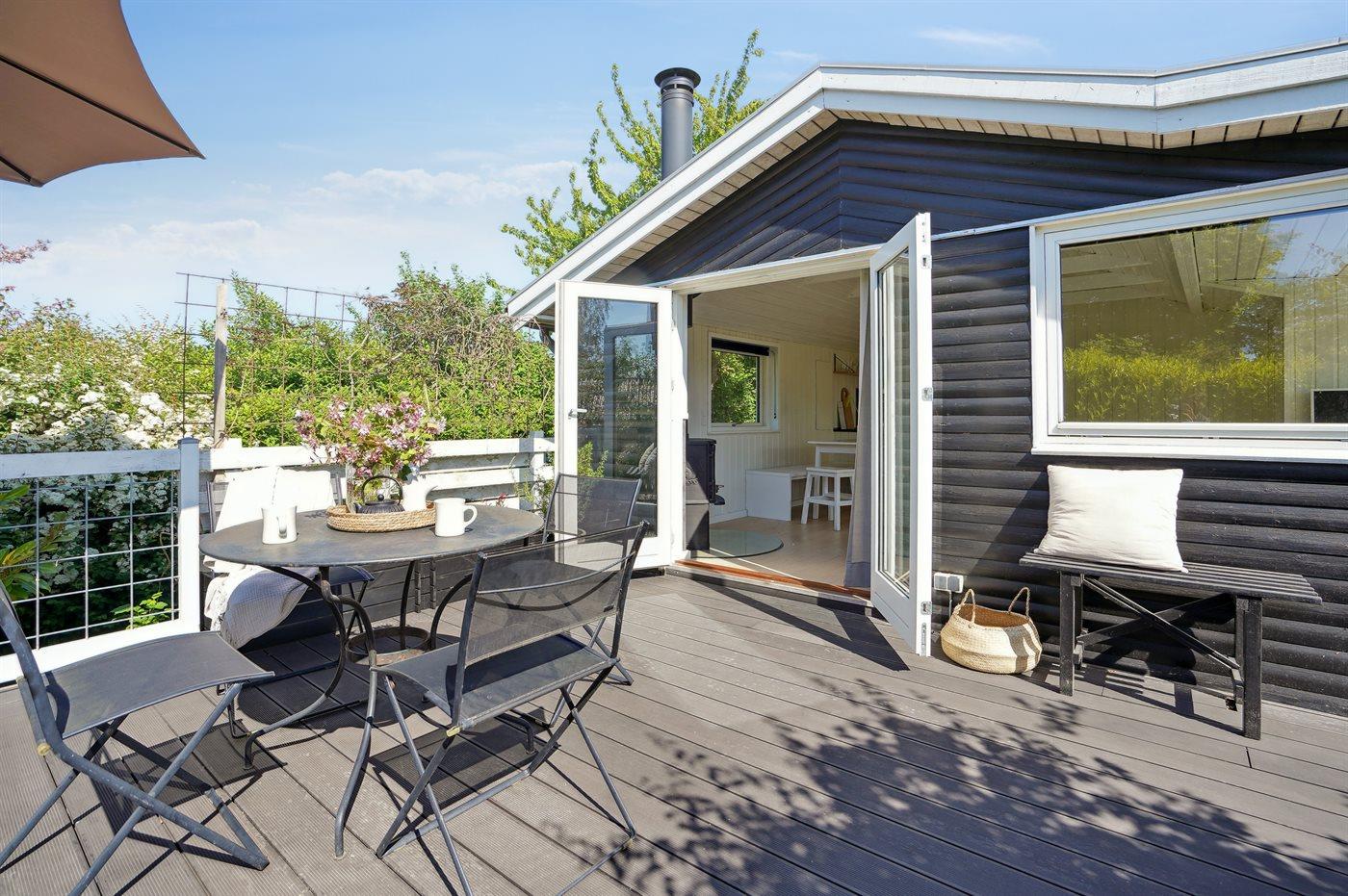 Sommerhuset ligger ugenert på den tilvoksede grund, og her findes skønne sydvest vendte terrassearealer, så solen kan nydes dagen lang.