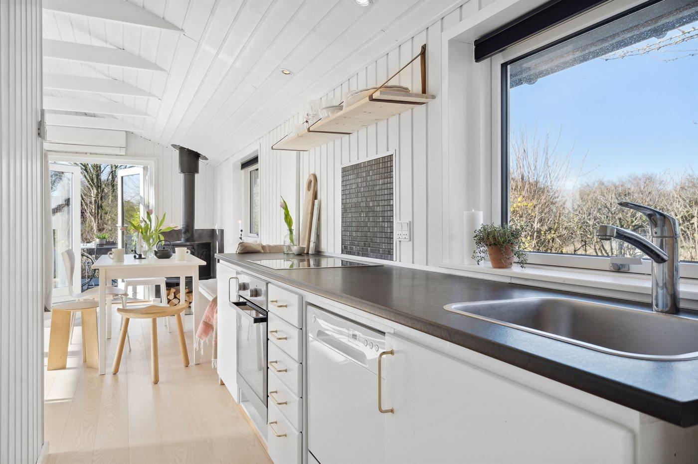 Køkkenet er udstyret med 1 køleskab. Der er 4 keramiske kogeplader, varmluftovn samt opvaskemaskine.