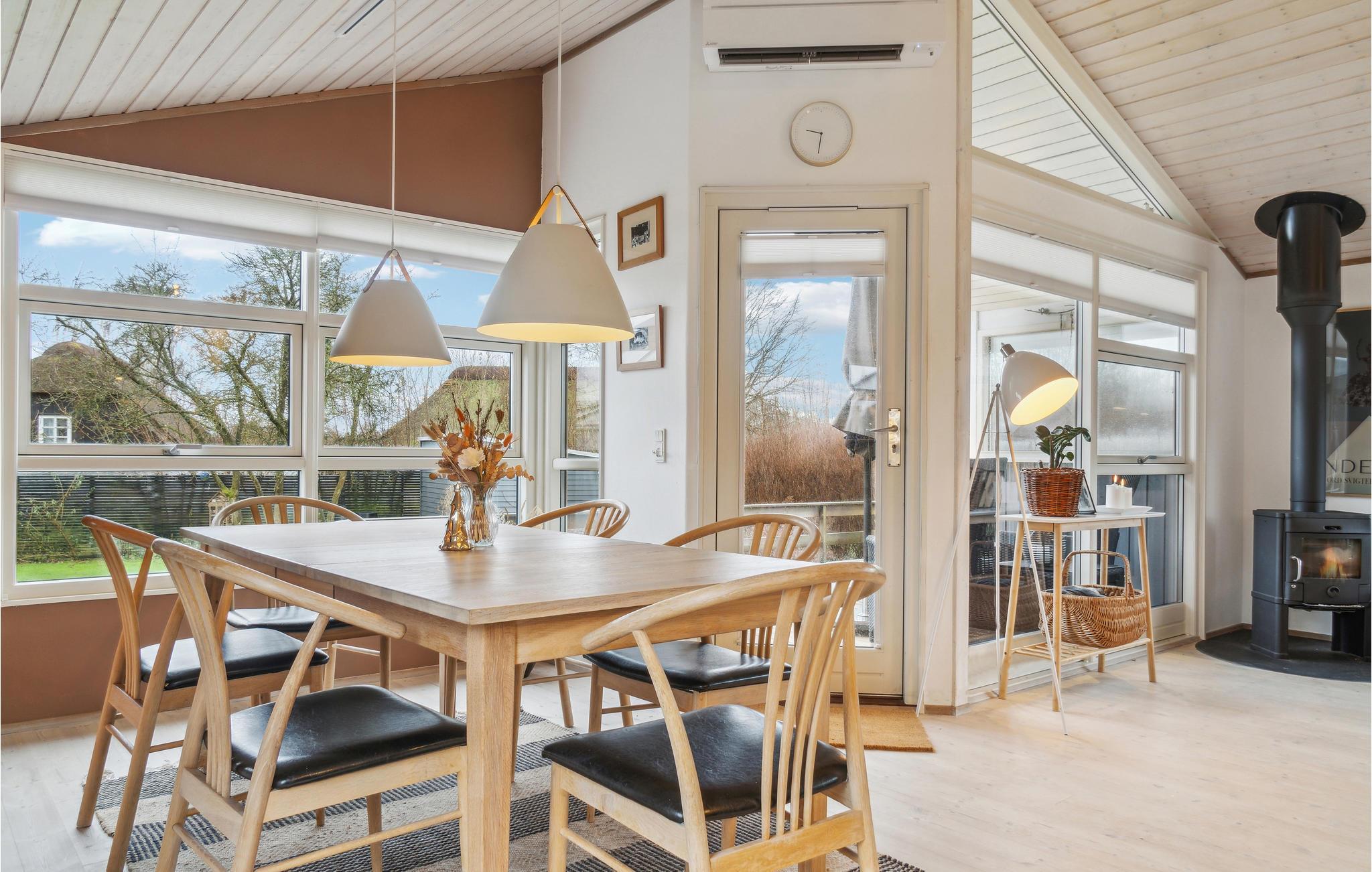 Velkommen til dette indbydende hus, der ligger på en særdeles velholdt grund lige ved stranden. Fra det rummelige opholdsområde får I en vidunderlig udsigt over haven gennem de store panoramavinduer, og I kan se frem til mange hyggelige aftener til lyden af brændeovnens gnitren.