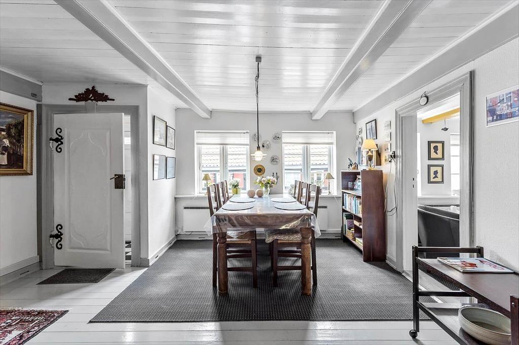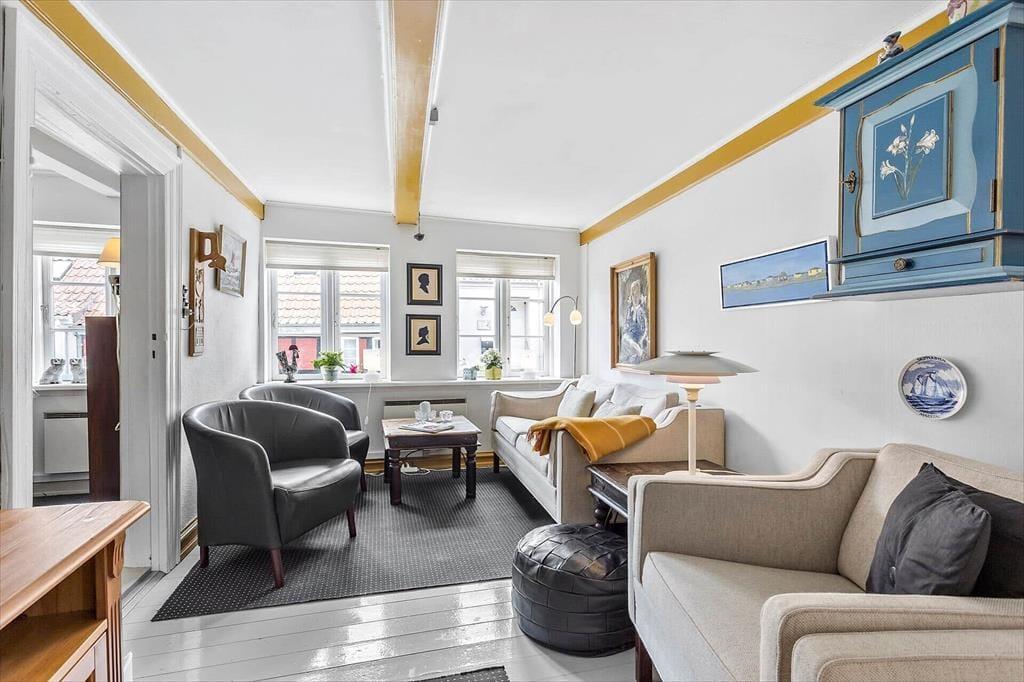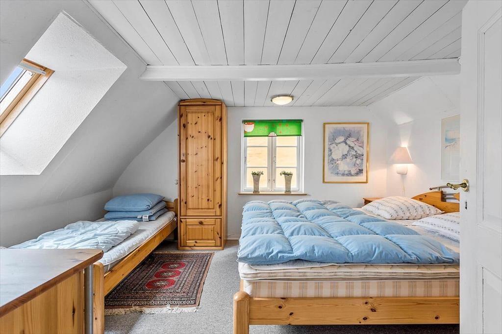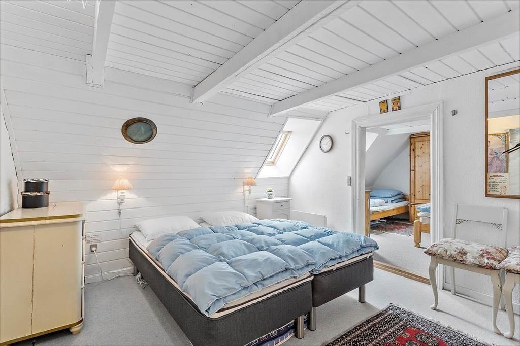 Det lyse og charmerende skipperhus inviterer dig ind med en atmosfære, der emmer af historie og hygge. Huset er indrettet med komfortable møbler og fine detaljer, der gør det nemt at føle sig hjemme. I stuen finder du en brændeovn, som på kølige aftener kan forvandle stuen til et varmt og hyggeligt samlingspunkt for hele familien. Køkkenet er separat, hvilket giver en skøn mulighed for at nyde både madlavning og måltider i en rolig atmosfære. Når det er sengetid, kan du finde ro og komfort i de hyggelige soveværelser, der er indrettet med tanke på en god nats søvn efter en dag fuld af oplevelser.