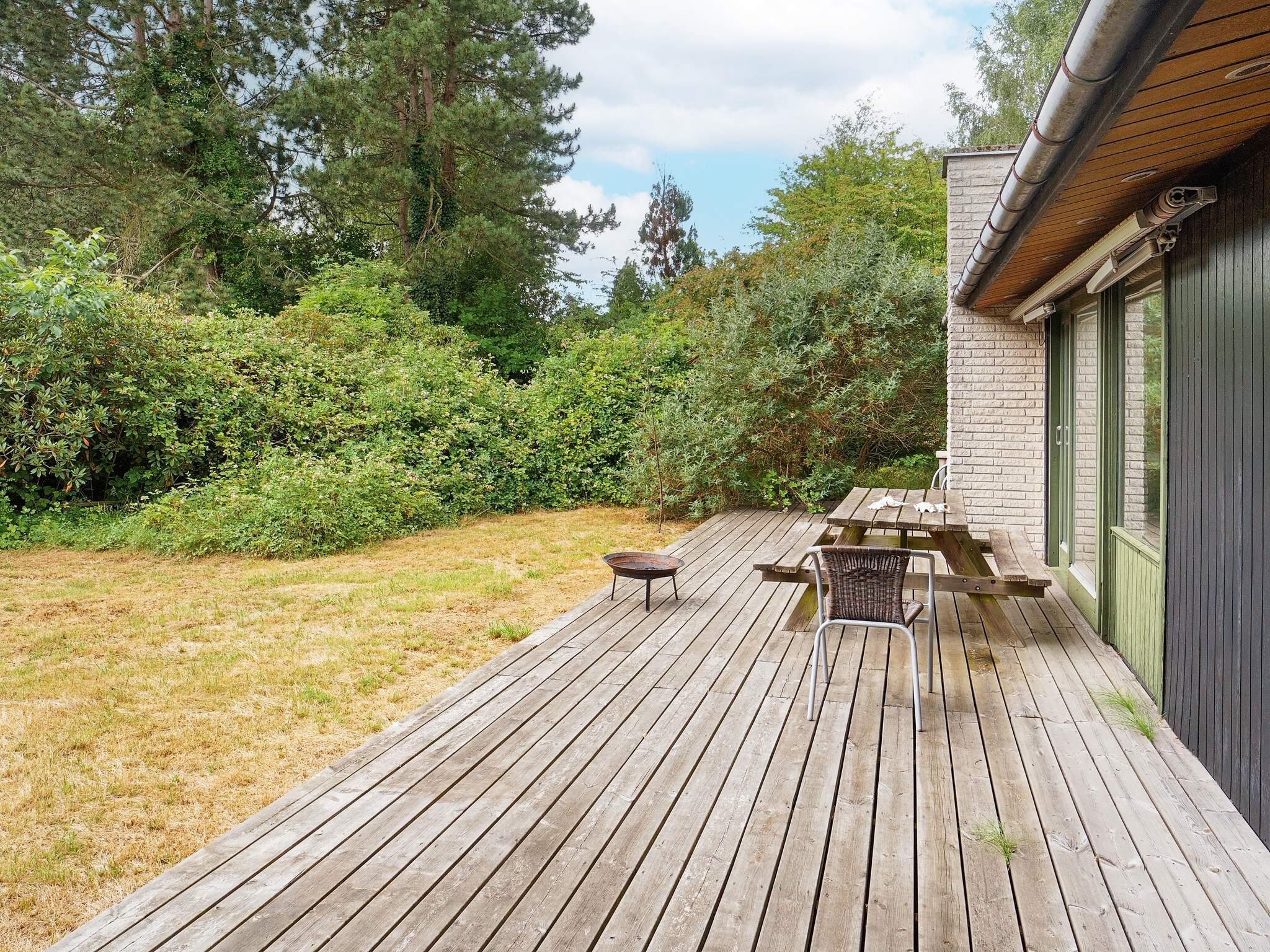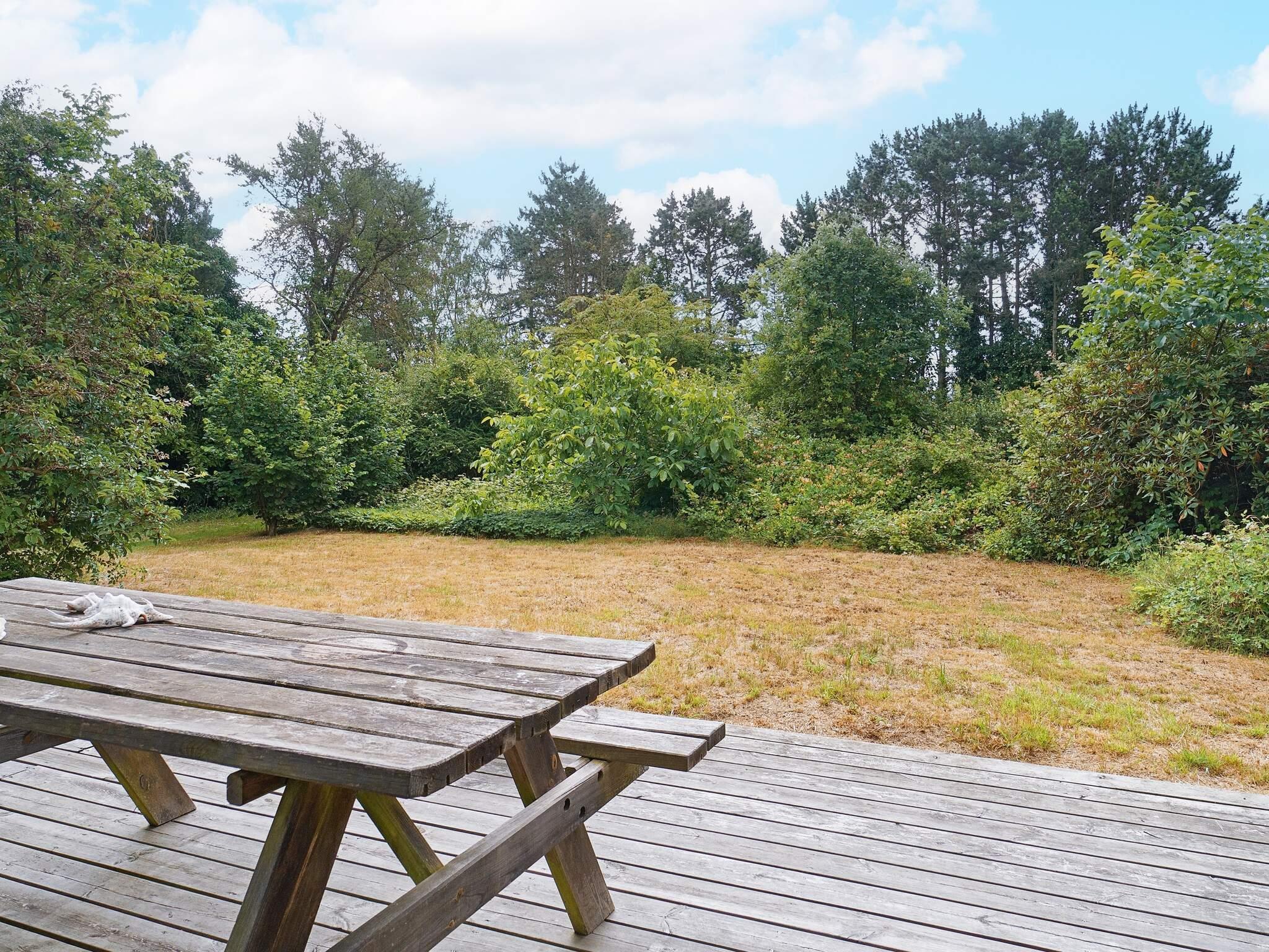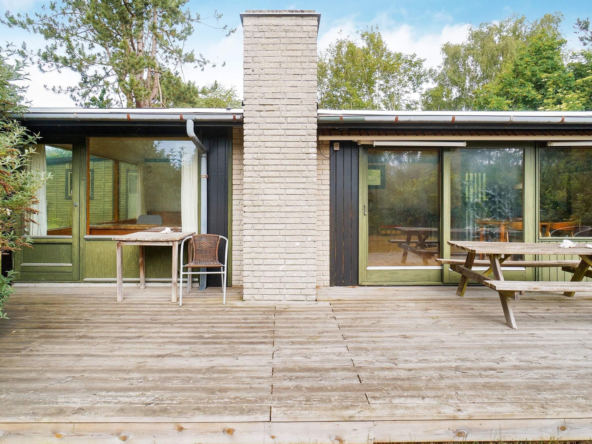Huset har en stor træterrasse, der nyder middagssolen, perfekt til udendørs måltider, solbadning eller blot at slappe af med en god bog. Fra den rummelige stue med et lille åbent køkken har du direkte udgang til terrassen, der skaber en problemfri sammenhæng mellem indendørs og udendørs ophold. I stuen er der også en enkeltseng, mens udestuen indeholder en dobbeltseng med egen indgang, hvilket giver ekstra fleksibilitet til sovearrangementer.