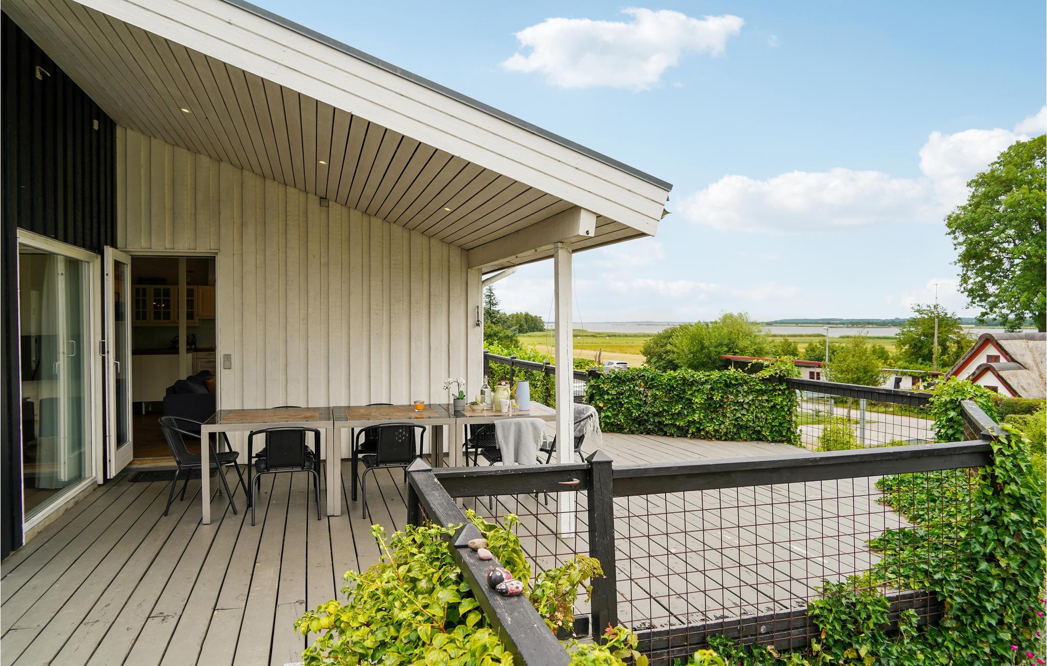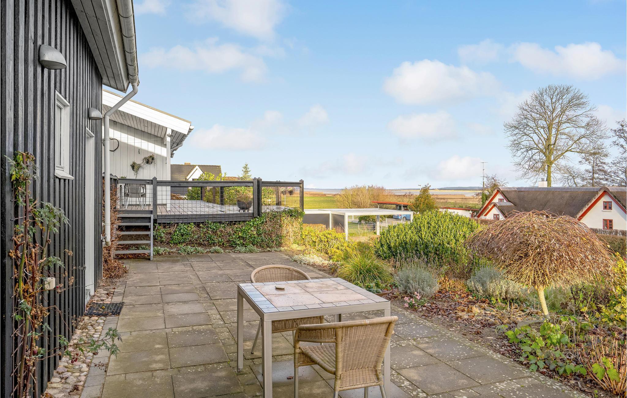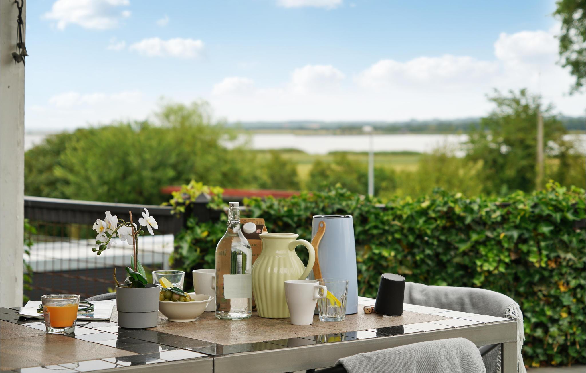 Om sommeren kan I finde en dejlig plet på den delvist overdækkede terrasse og læne jer tilbage i havemøblerne eller samles omkring dagens måltider, mens fuglene synger i trætoppene. Hvis I hellere vil bade i havvand, er der kun 10 km til sandstrandene ved udmundingen af fjorden.