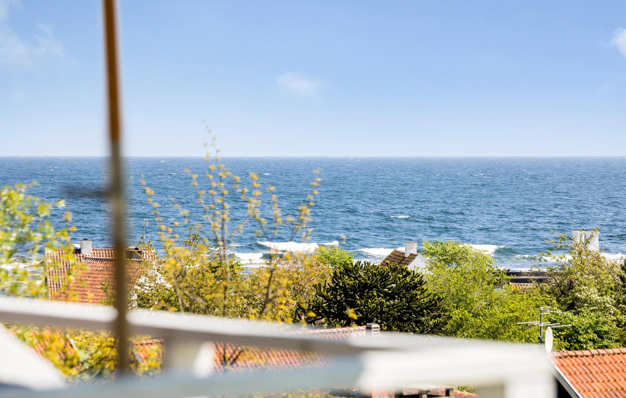 Tag familien under armen og rejs til Bornholm, hvor I lidt syd for Gudhjem får base højt oppe i dette indbydende hus med udsigt over havet. Huset er lyst og moderne indrettet i et åbent miljø og med gode møbler og et pragtfuldt badeværelse med gulvvarme, der sikrer god komfort og gør det nemt at lade skuldrene falde med det samme, I ankommer. Prikken over i'et er dog udsigten, der kan nydes gennem de mange, store vinduespartier, der samtidig giver dejlige lysindfald til stuen. Hvs vejret viser lidt tænder, kan I tænde op i brændeovnen og nyde dens knitrende lydtapet til aftenhyggen ved spisebordet eller i sofaen.