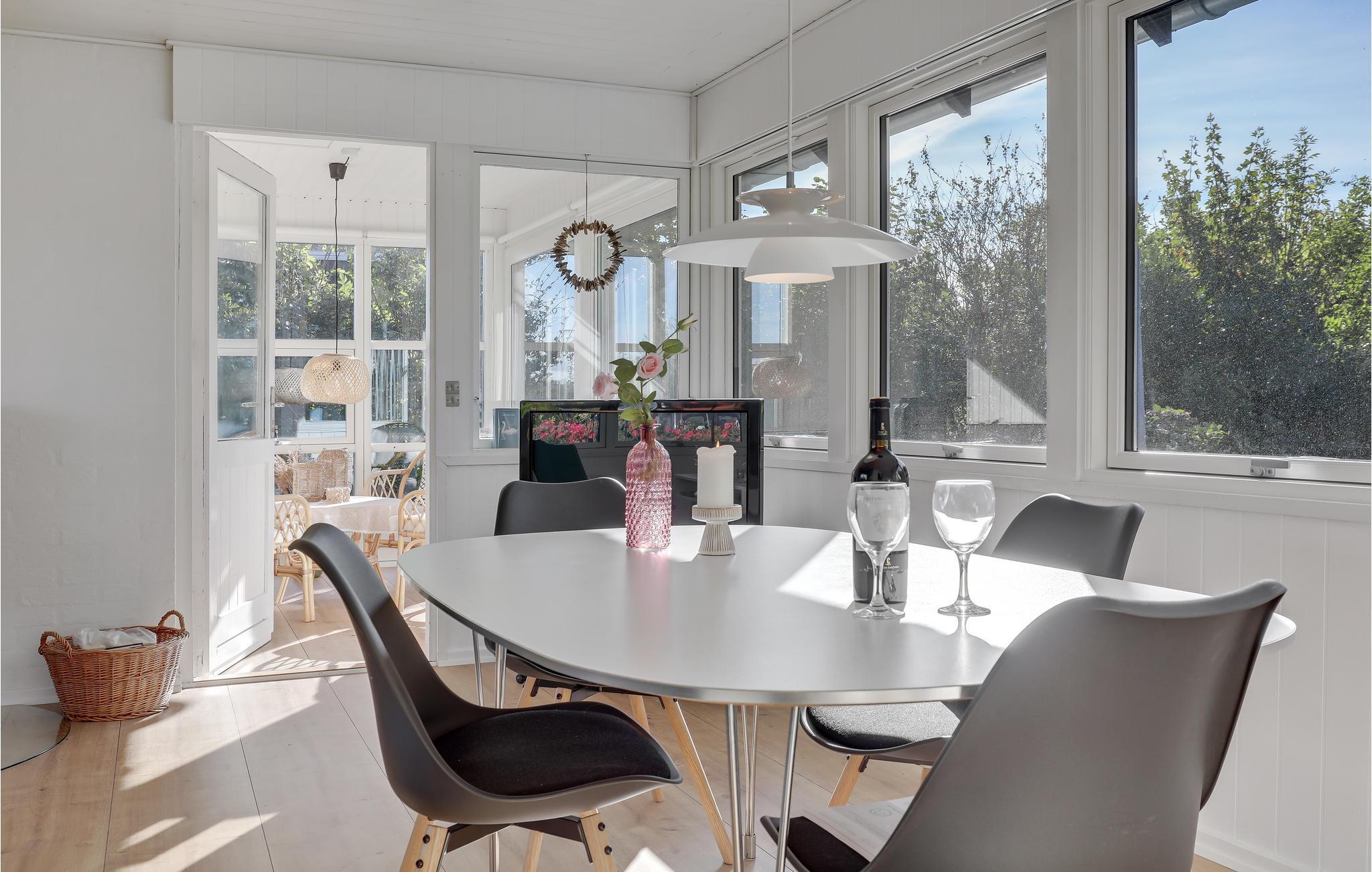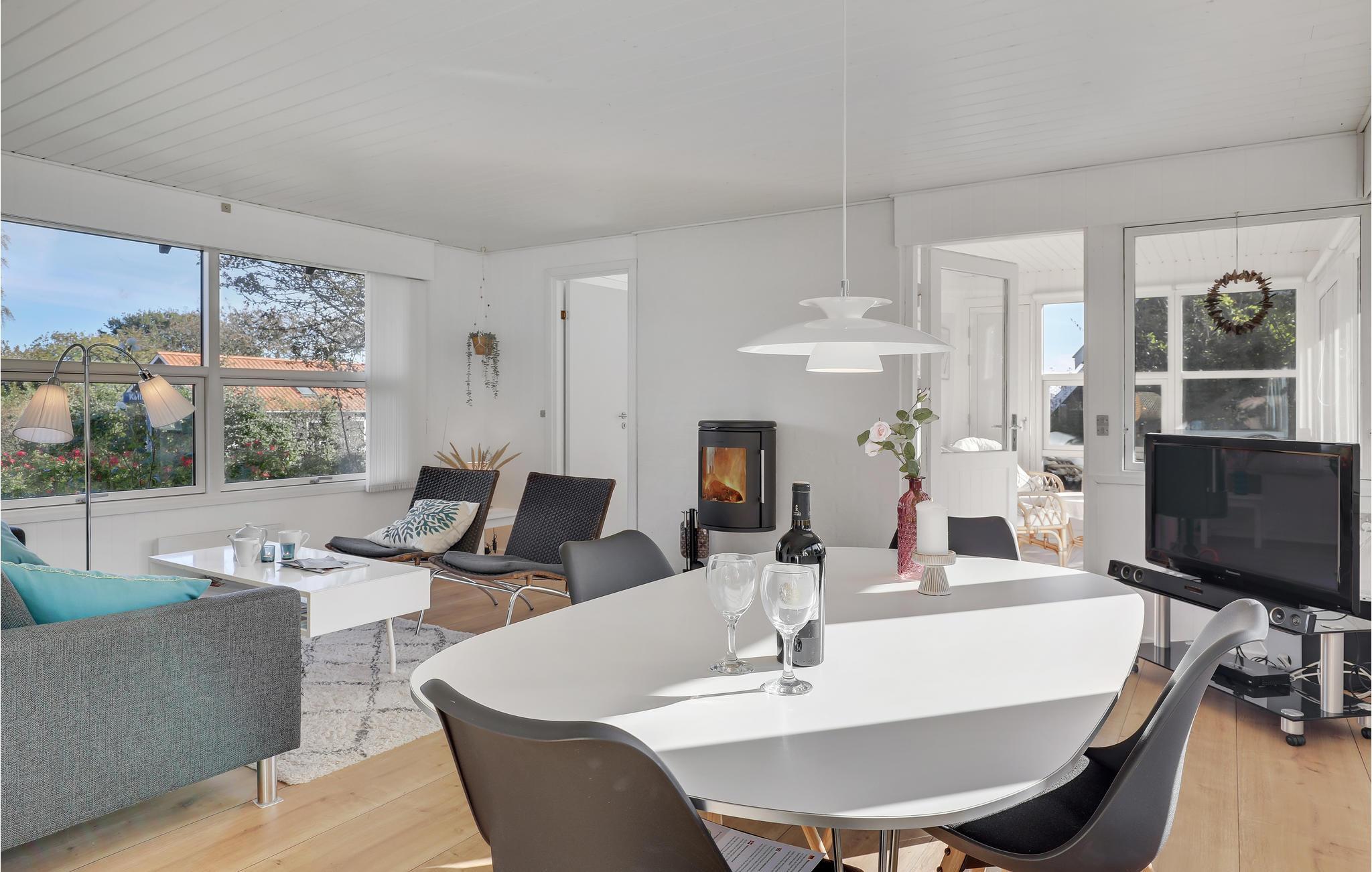 Hold jeres velfortjente ferie i dette flotte og velholdte sommerhus af træ, der er lyst og moderne indrettet. Det ligger i attraktive omgivelser i Melsted, ikke langt fra den smukke klippekyst og en lille småbådehavn, hvor det er hyggeligt at holde øje med når fritidsfiskerne lægger til. Nyde udelivet i husets dejlige have og på den skønne store terrasse med bekvemme havemøbler. Lad jer betage af den flotte havudsigt fra stuen.