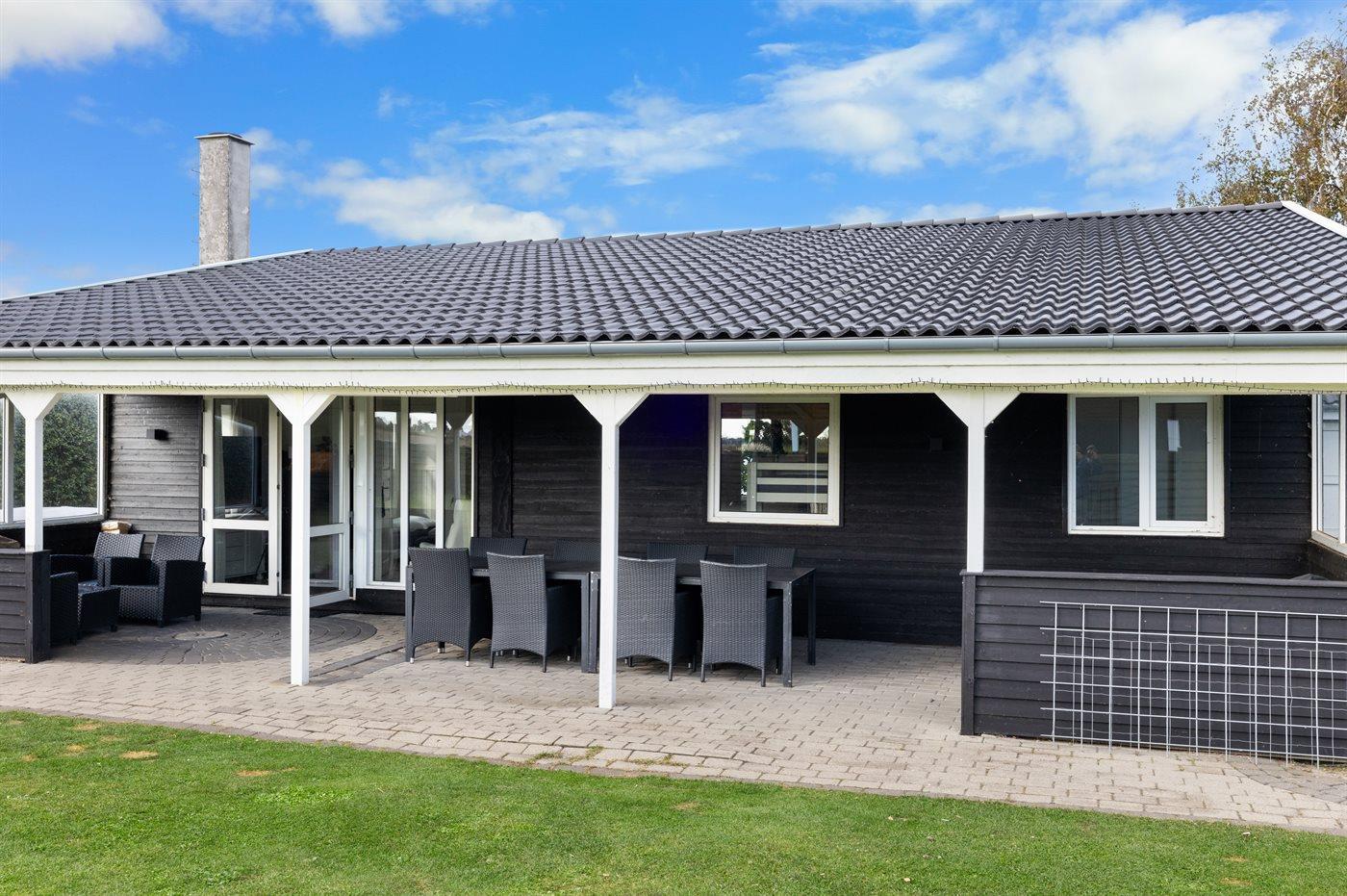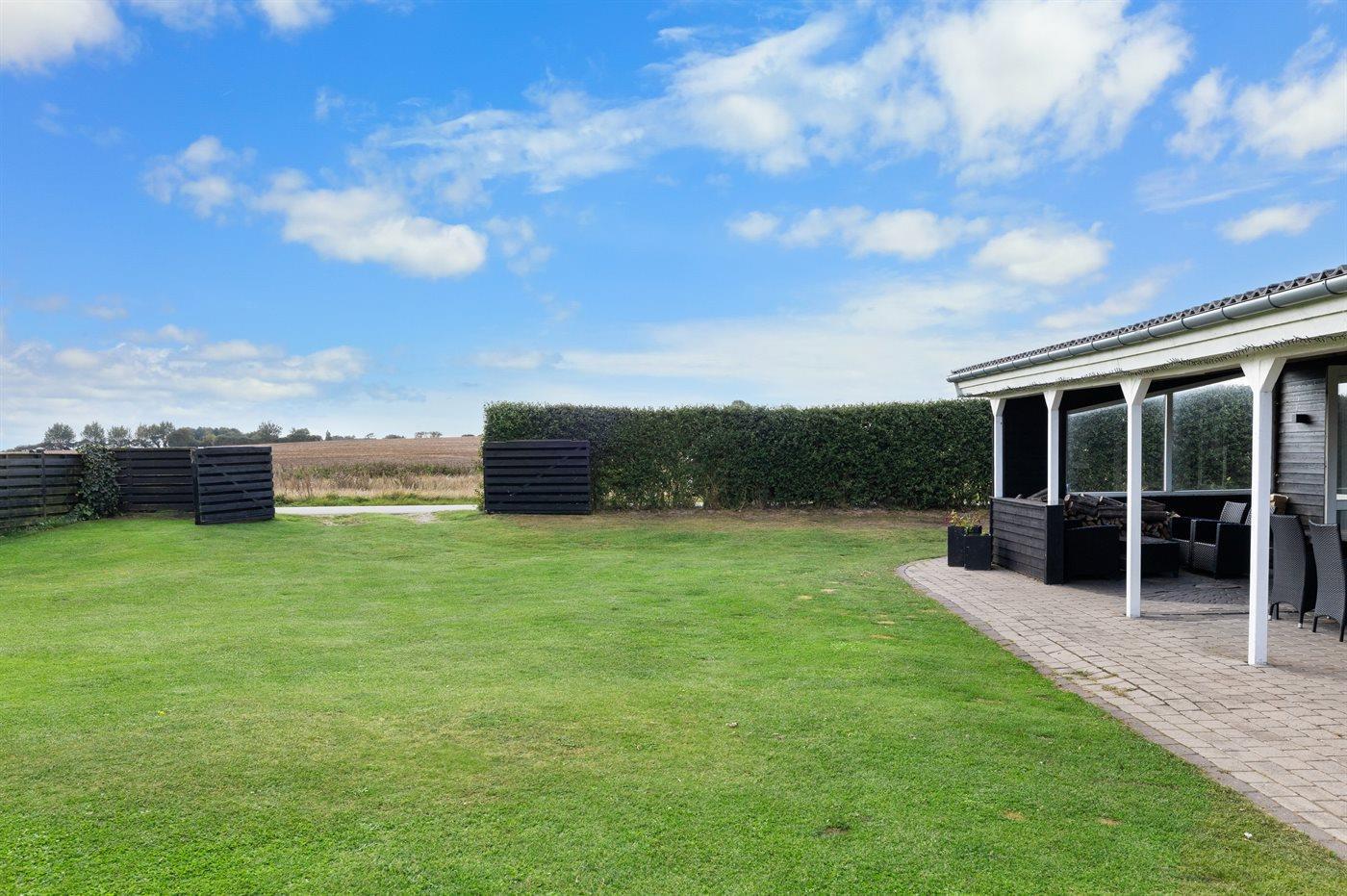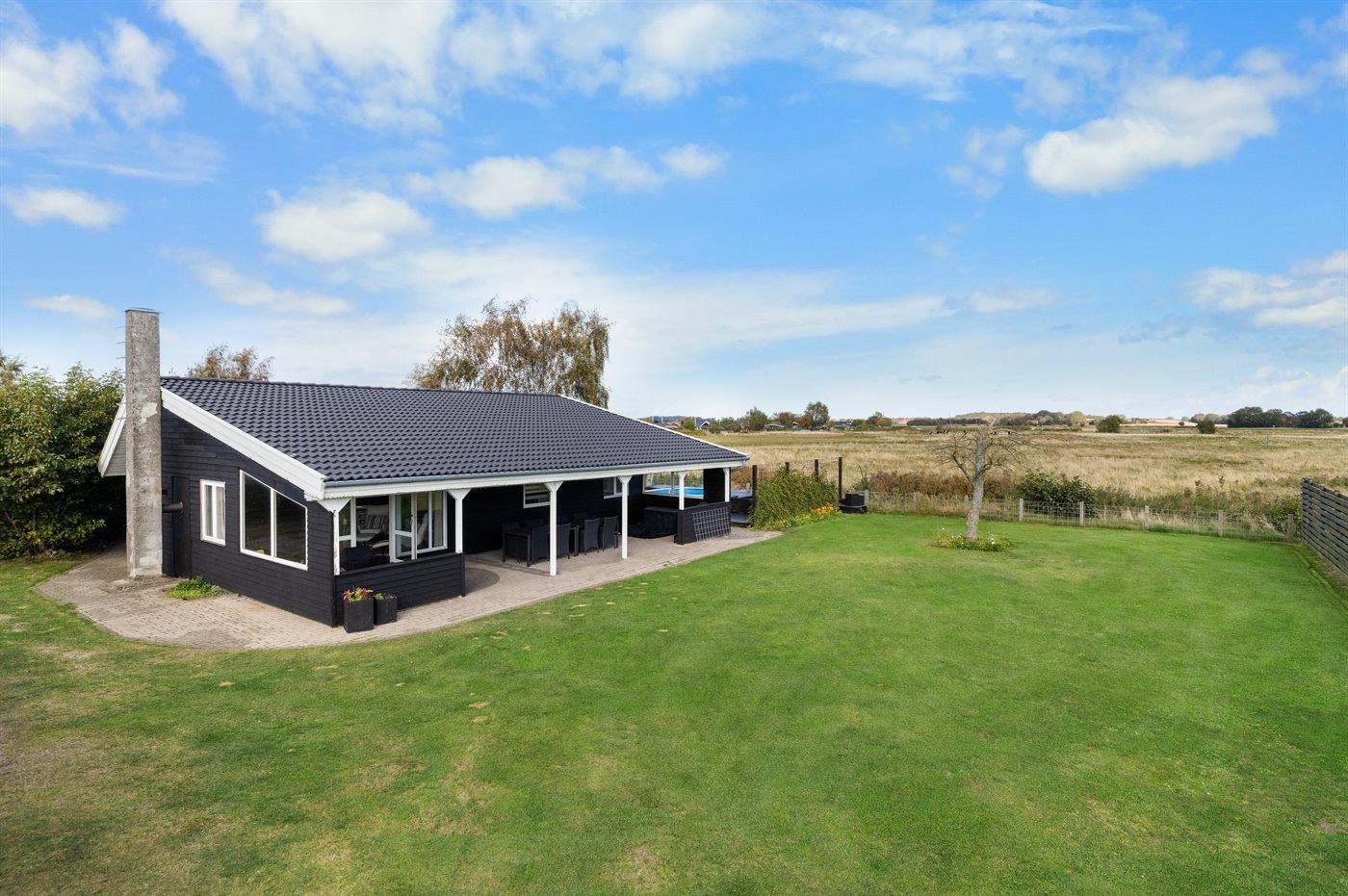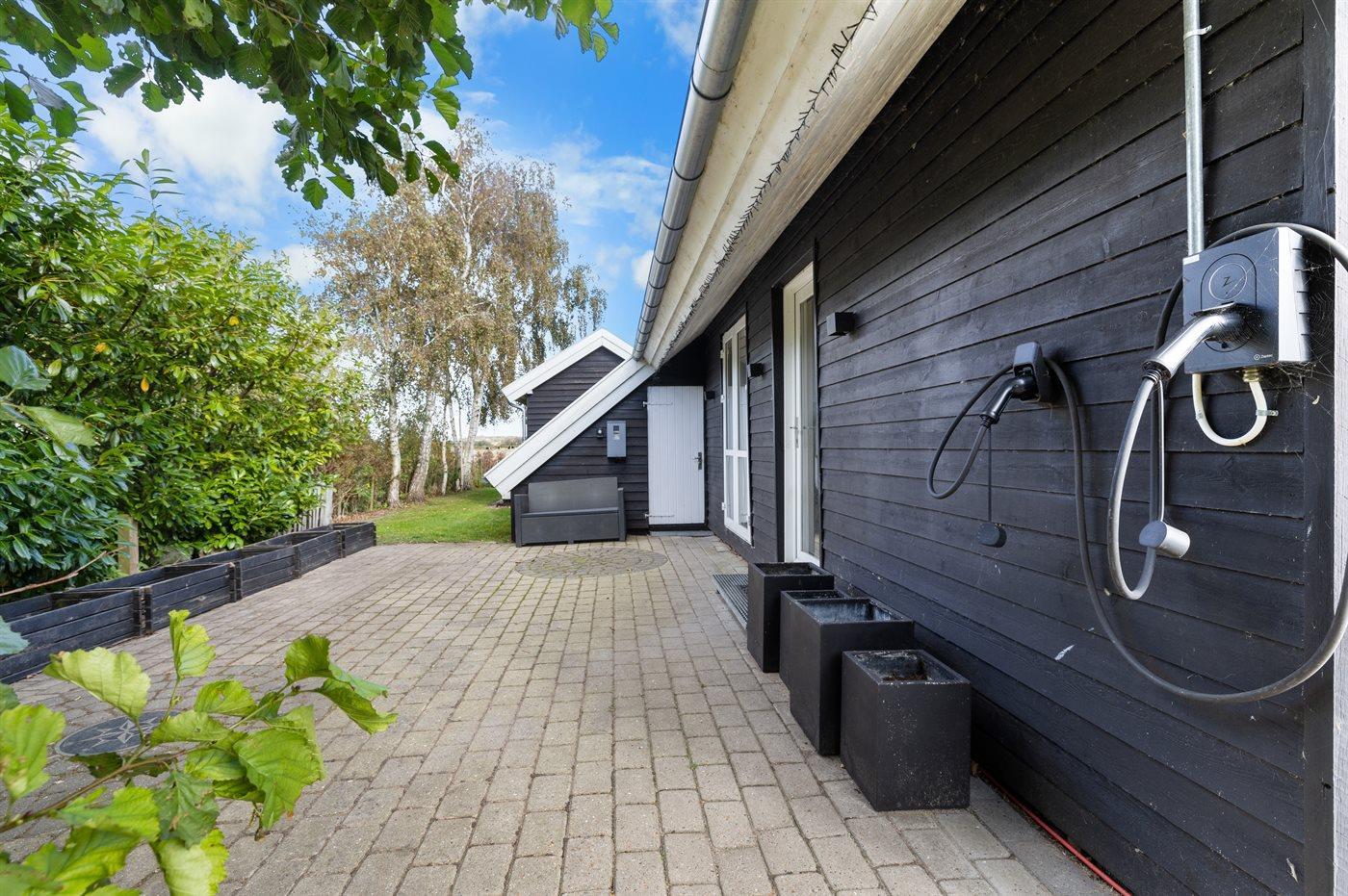 Ferieboligen er beliggende på en 675 m² stor havegrund. Grunden er indhegnet. Der er 250 m til havet. Nærmeste forretning er beliggende i en afstand af 2000 m. Der er en golfbane i en afstand af 5600 m. Til ferieboligen hører åbent terrasseareal. Desuden er der overdækket terrasse. Grill til rådighed. Der er installeret stik til opladning af elbil. Type 2 stik. Med 9 kW ladeeffekt. Parkering ved ferieboligen.