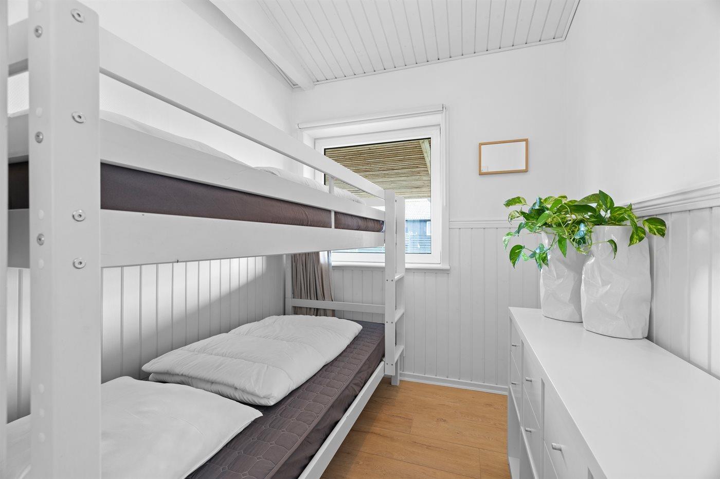 Der er i alt 3 soveværelser. Sovepladserne fordeler sig på: 2 sovepladser i dobbeltseng. 2 sovepladser i enkeltsenge. 2 sovepladser i køjeseng. Derudover er der 1 stk. barneseng.