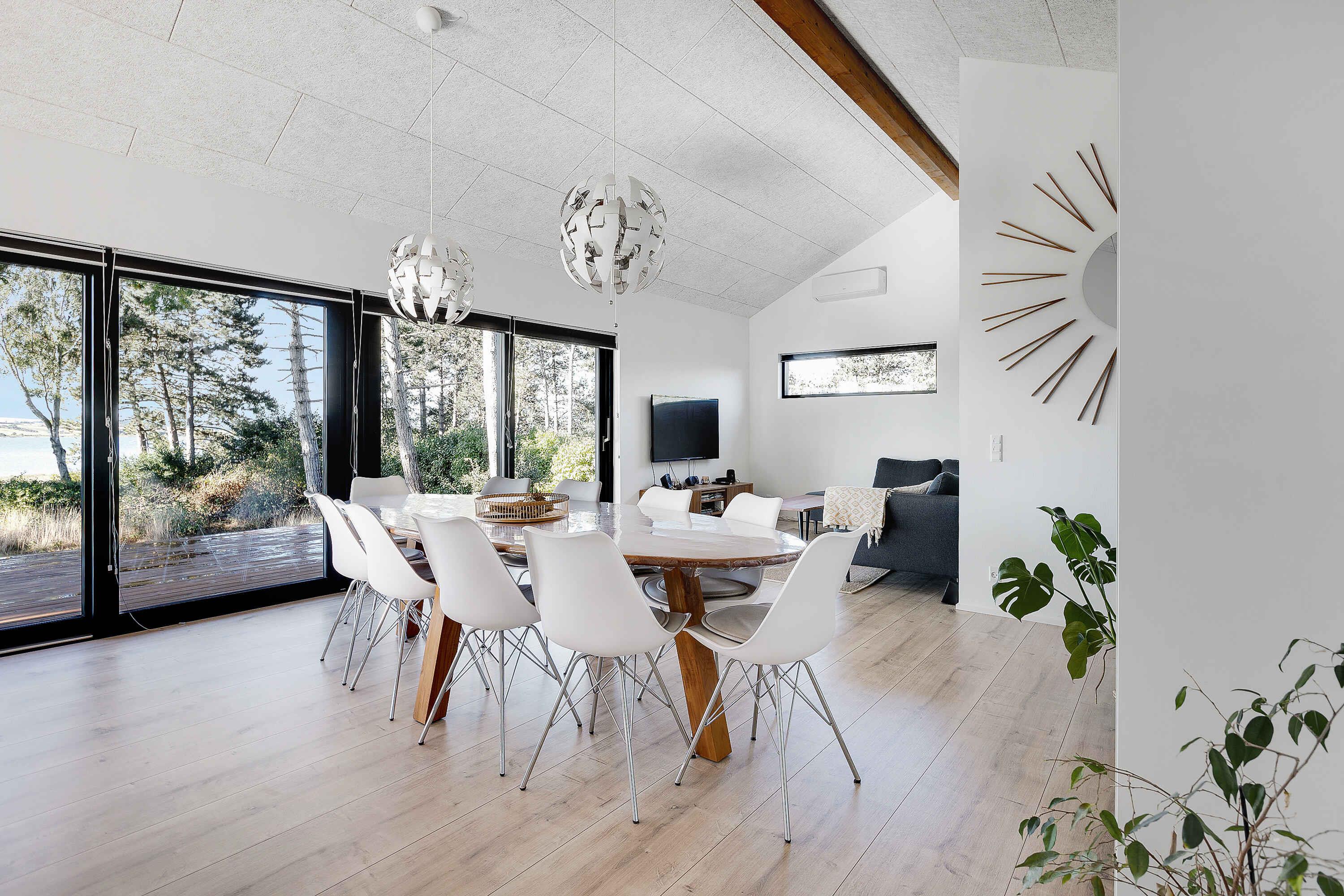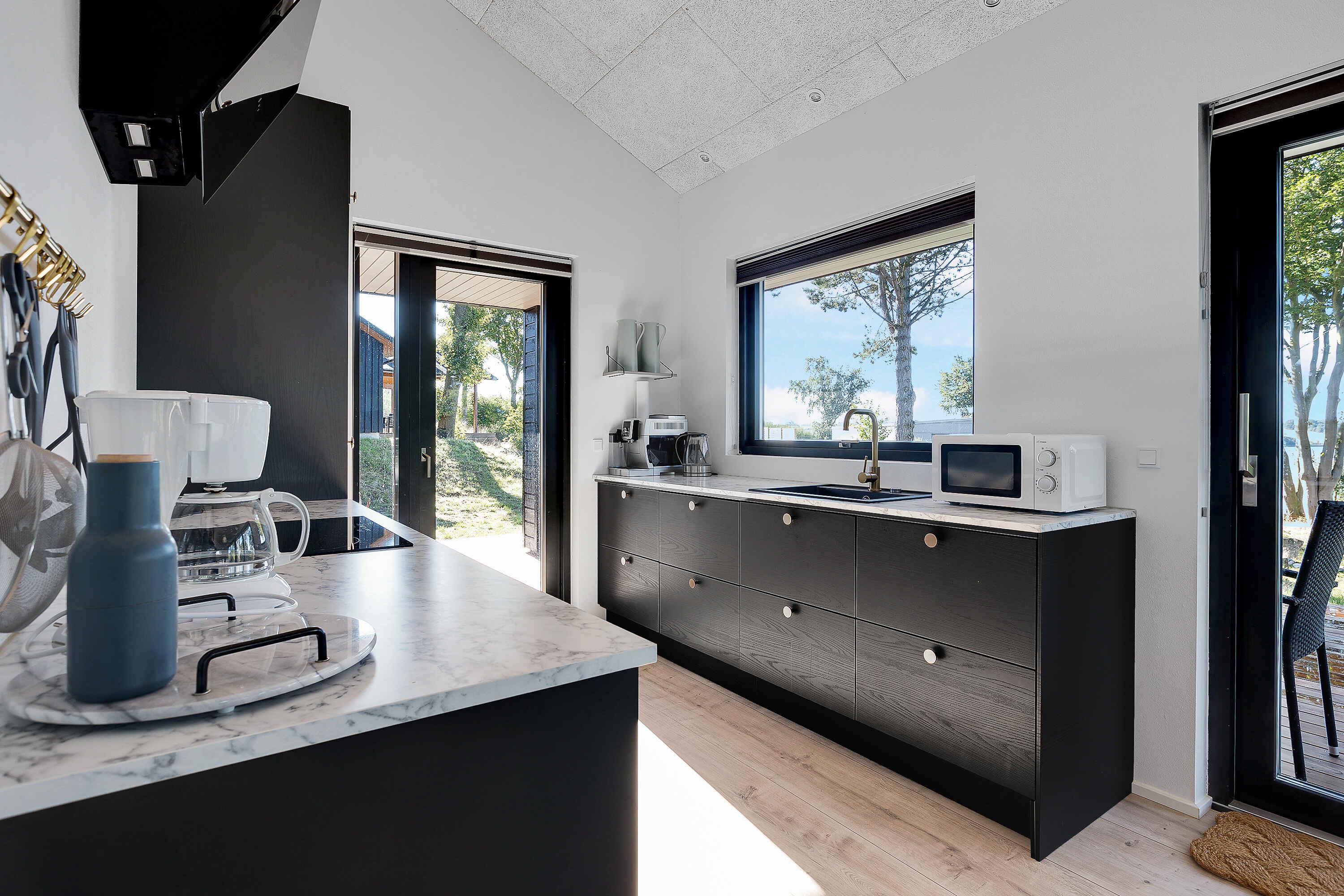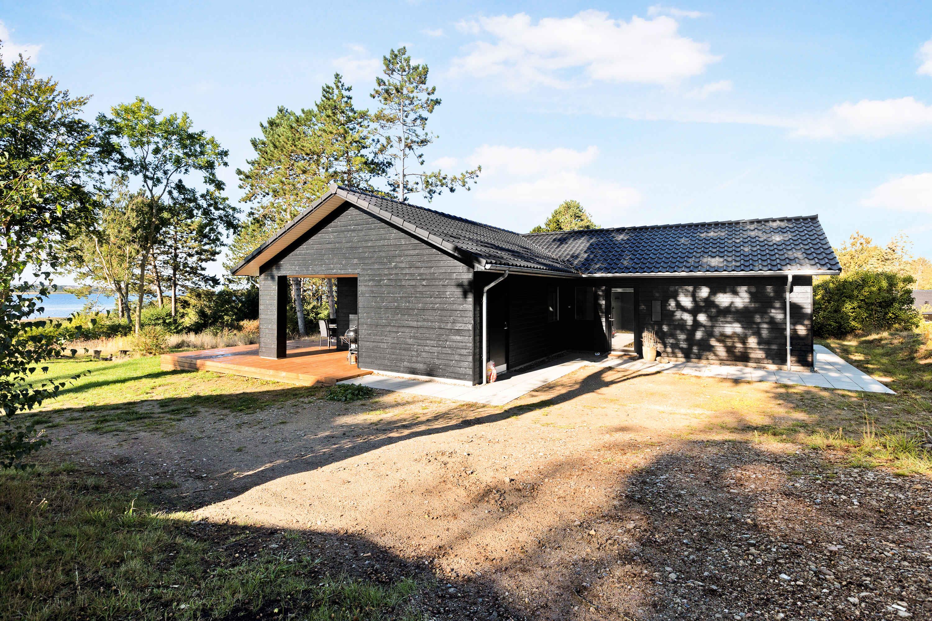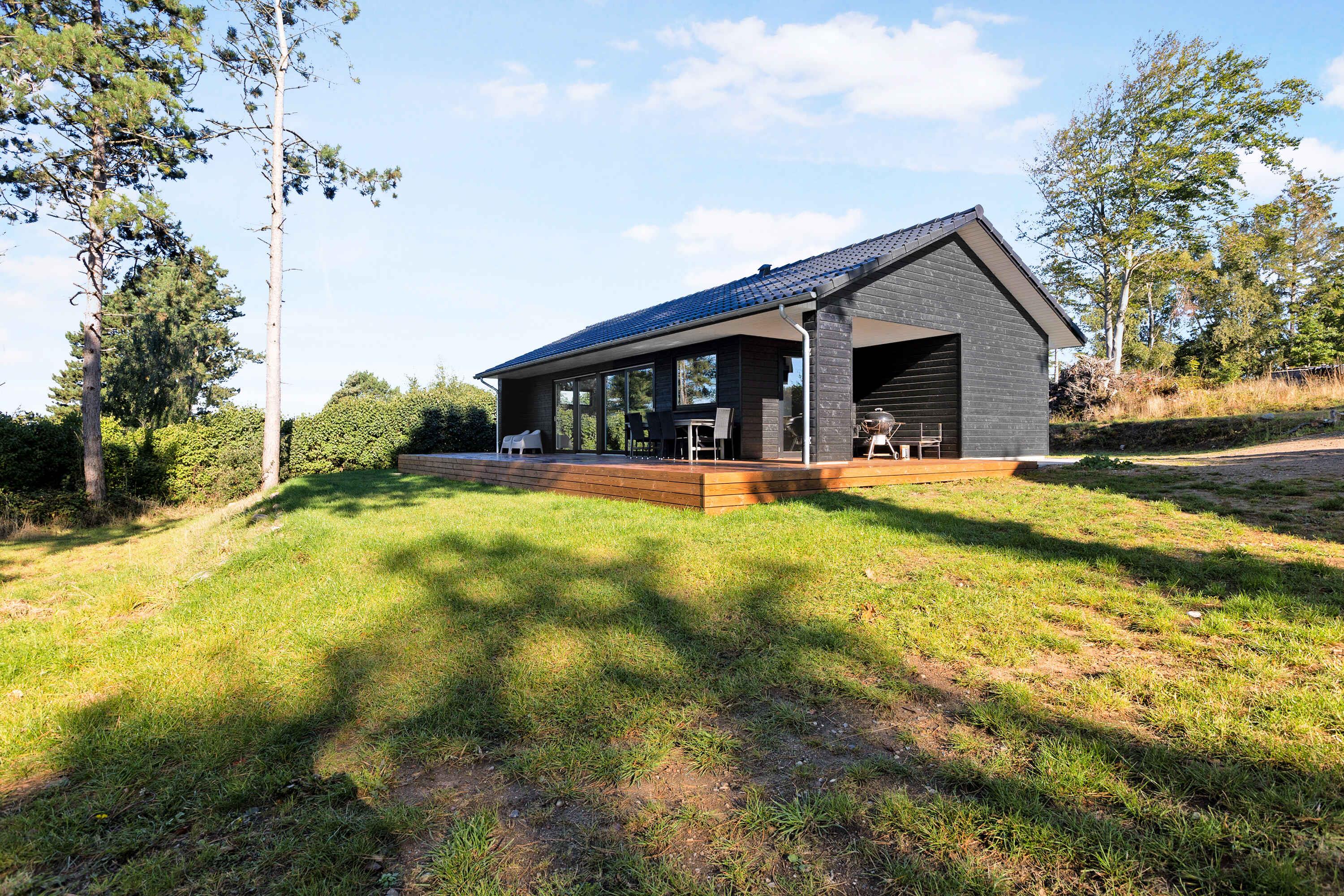 Nyt sommerhus fra 2021 på Sydfyn med panoramaudsigt over havet, spabad, sauna og stor terrasse tæt på naturen.