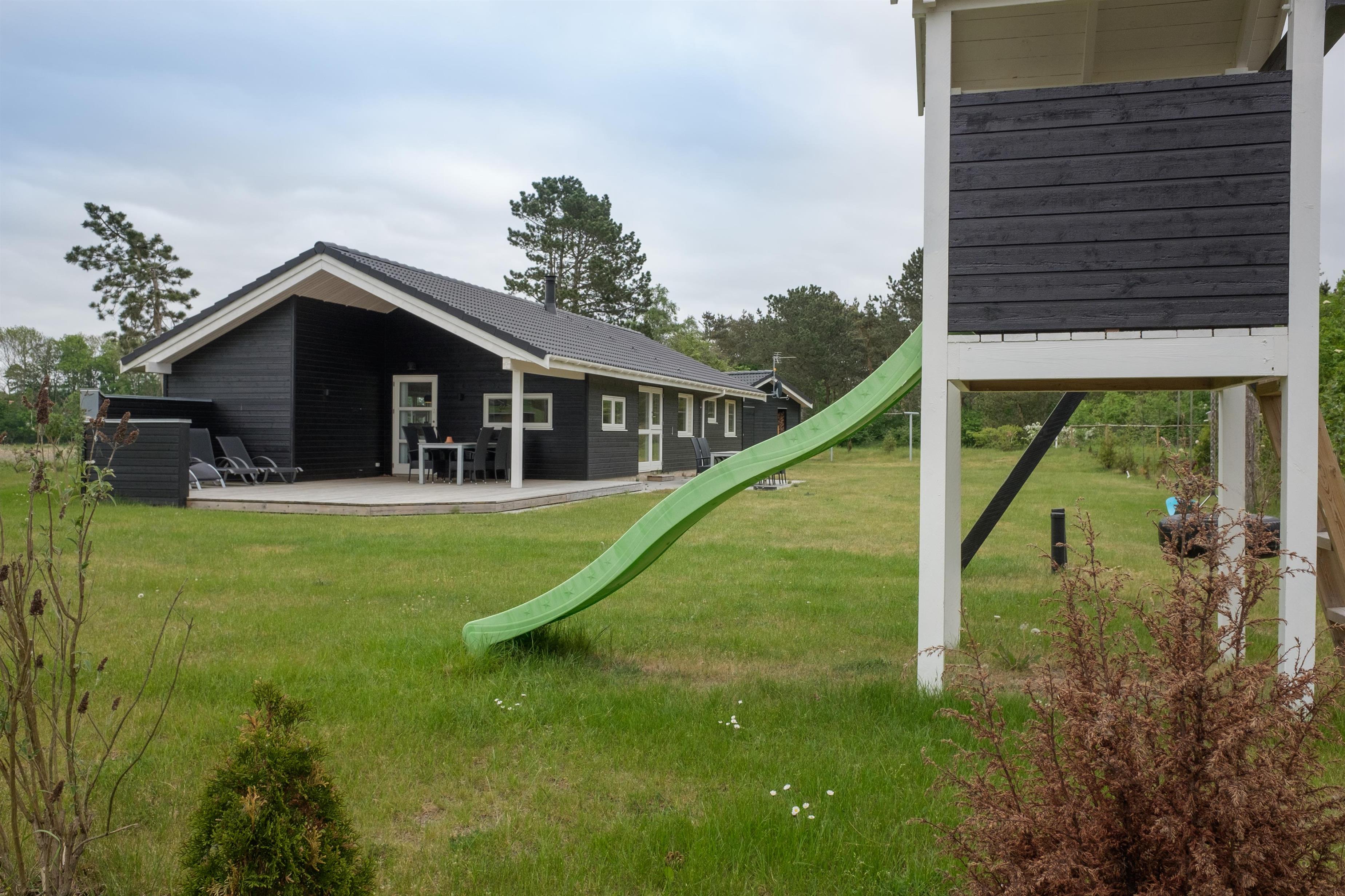 Nybygget sommerhus fra 2016 med stor terrasse nær en af Danmarks bedste børnevenlige strande.