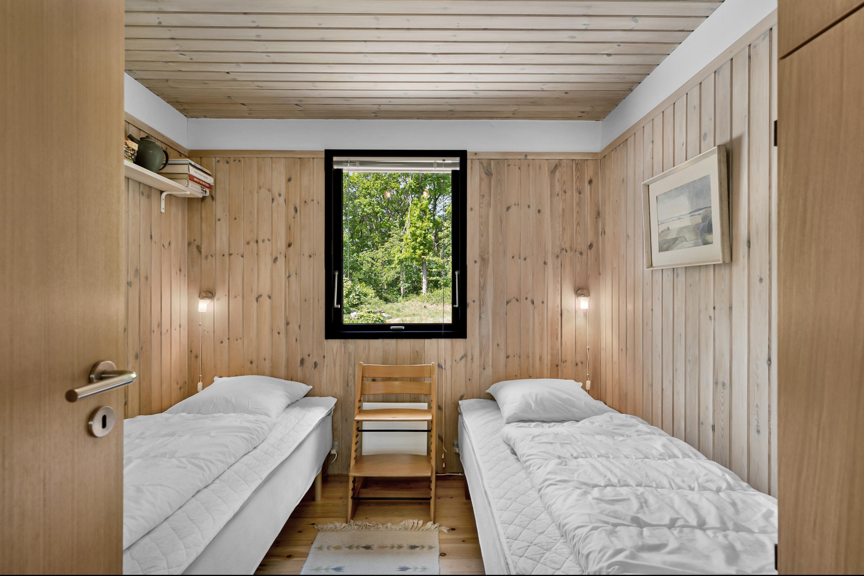 180° sydvendt panoramaudsigt både fra stuen og terrassen/haven ud over vandet (Kattegat og Begtrup Vig) samt det naturskønne Helgenæs. Dette dejlige og velholdte sommerhus ligger på toppen af Fuglsø Bakker i Nationalpark Mols Bjerge delvis omgivet af skov, hvilket giver meget læ for vinden. Der er to terrasser, hvoraf den ene er delvis overdækket og med havemøbler og grill. Huset ligger ugeneret i rolige omgivelser med meget dyrevildt. Indvendigt fremstår huset lyst og venligt. Der er brændeovn og pejs, TV med parabol og DVD samt stereoanlæg. Dejligt, nyere og funktionelt samtalekøkken med keramisk komfur, køleskab med fryser, mikrobølgeovn og opvaskemaskine. Godt badeværelse med brusekabine og vaskemaskine. Husets sovepladser fordeler sig på 3 gode værelser alle med boxmadrasser: 2 med dobbeltseng og 1 med enkeltsenge. Til de små feriegæster findes babyseng og barnestol.