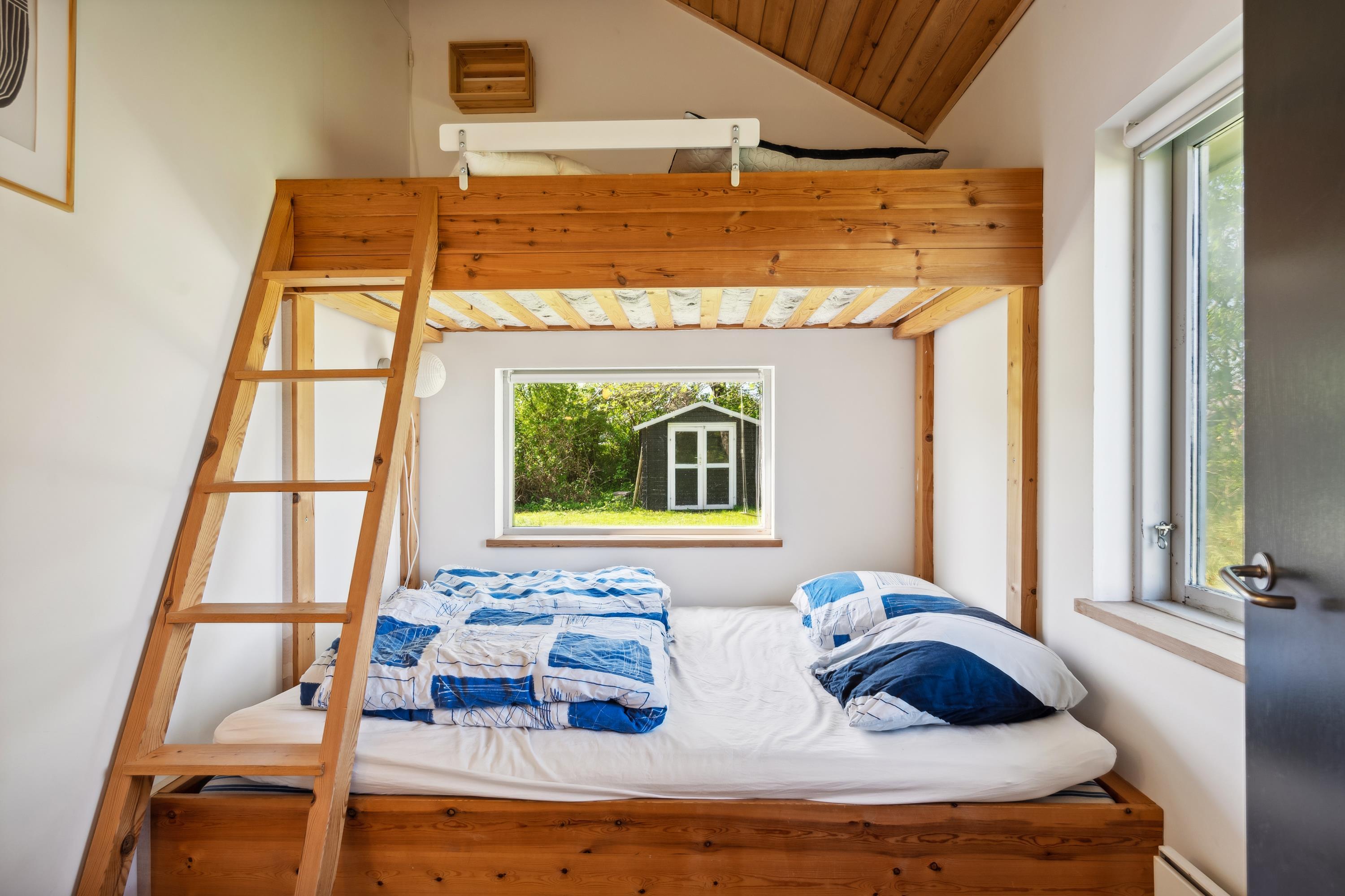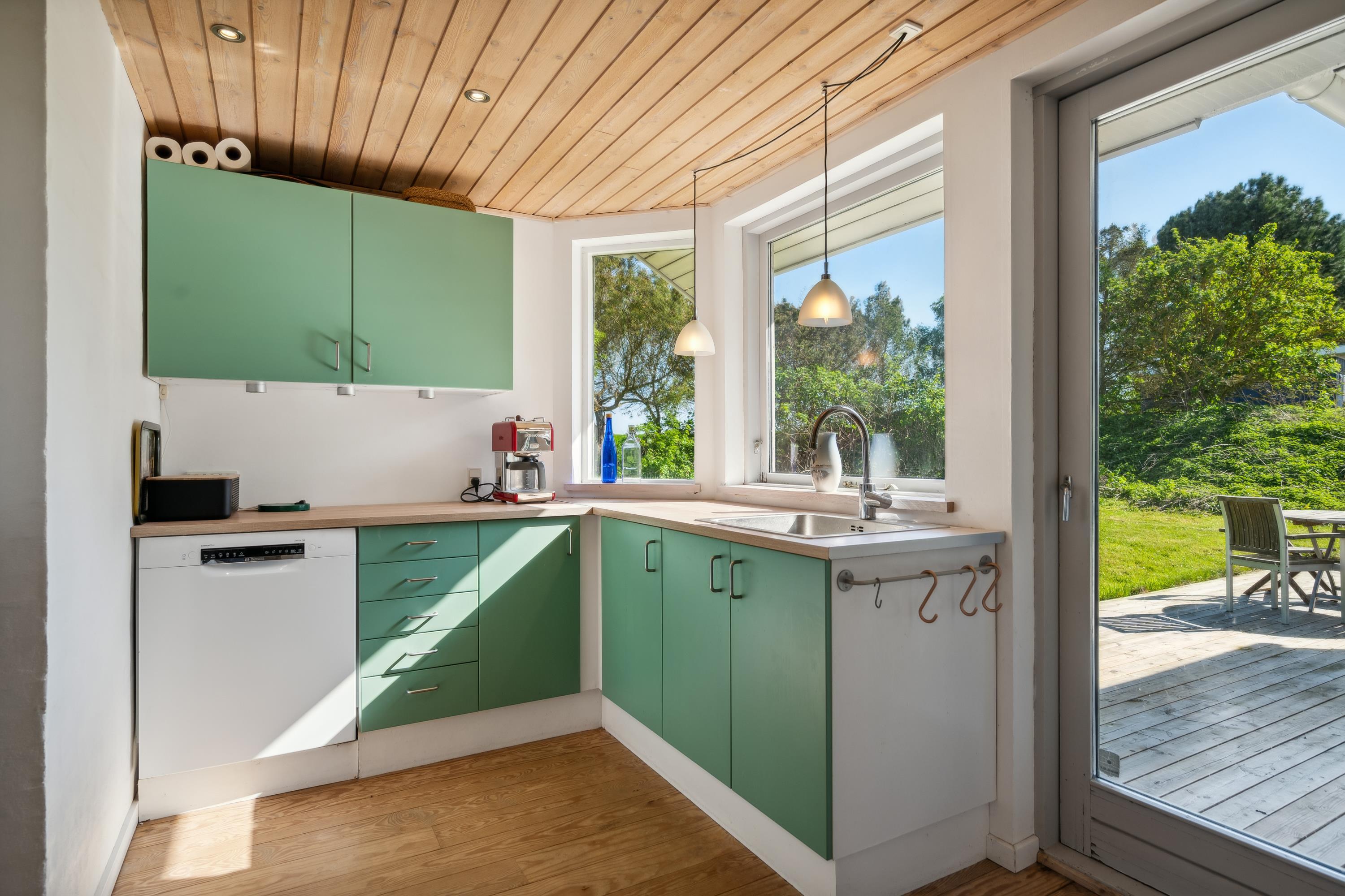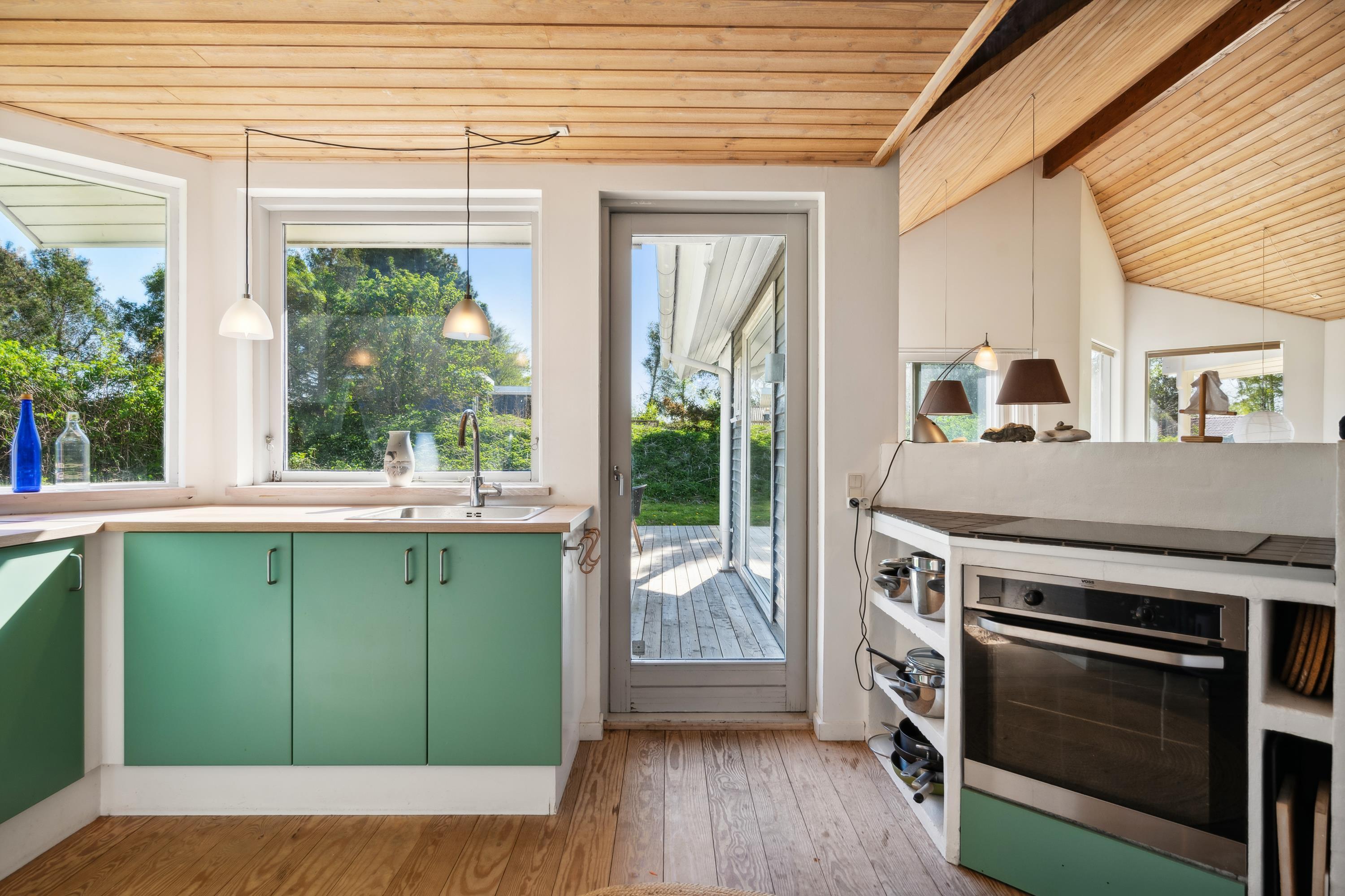 I den smukke natur på Mols med udsigt til marker og tæt på vandet, finder man dette hyggelige feriehus. Huset indeholder en lys stue med b.la. brændeovn og varmepumpe og en dejlig spiseafdeling, hvorfra der er udgang til den nyanlagte terrasse. Velfungerende køkken med b.la. opvaskemaskine. Husets sovepladser finder man i tre gode værelser, heraf to med dobbeltsenge samt et værelse med en dobbeltseng og en køjeseng. Pænt badeværelse med bruseniche. Til de små feriegæster er der høj barnestol og en barneseng. Trappen i spisestuen er ikke en del af udlejning, da den føre op til en privat hems. Tv foregår med Chromecast/internet. Huset er beliggende på en dejlig grund med en stor græsplæne, velegnet til leg og boldspil og til de små feriegæster er der gynger og en sandkasse.