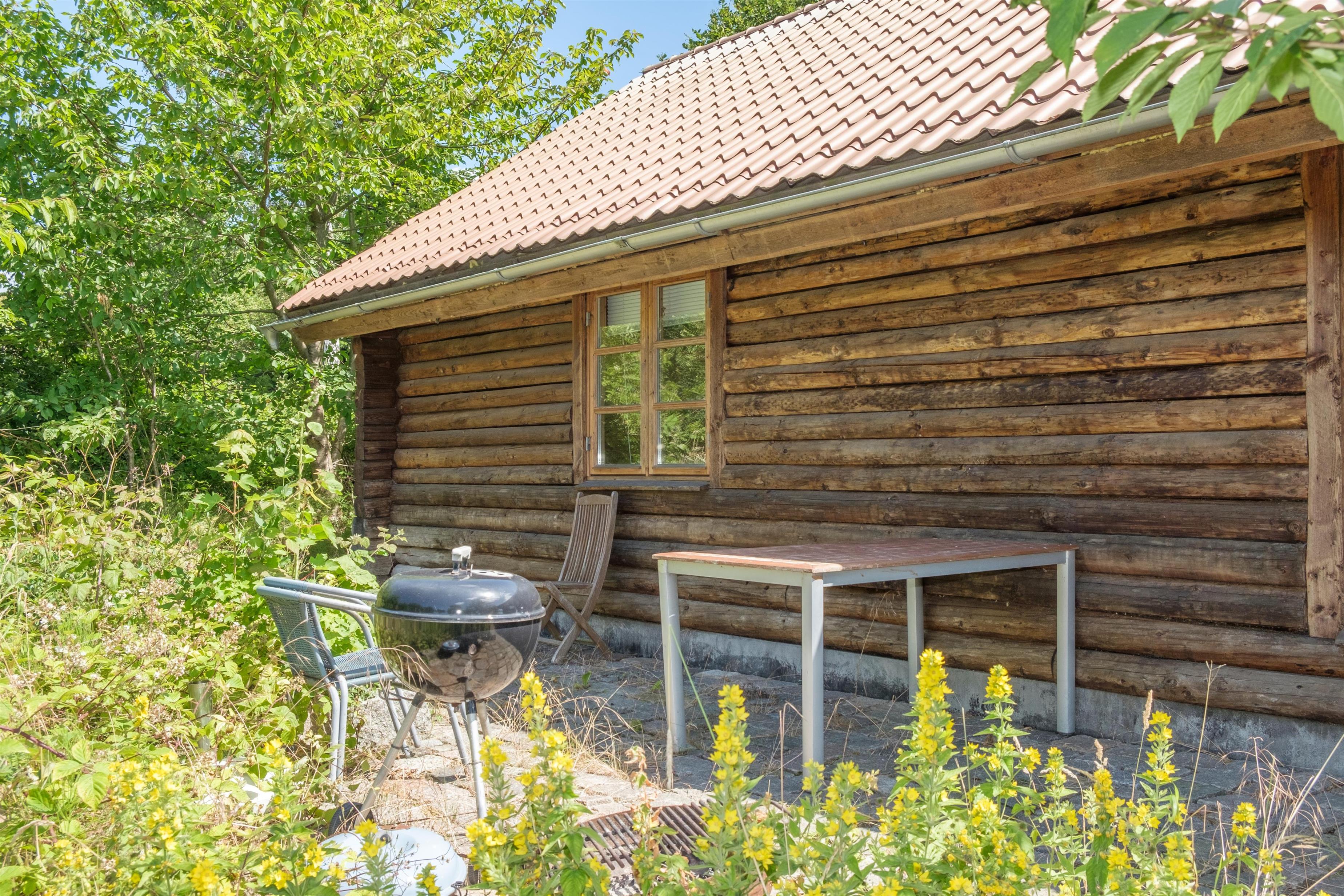 Ældre bjælkehytte beliggende på dejlig naturgrund i skønne omgivelser og tæt på den børnevenlige strand ved Begtrup Vig. Et rustikt og enkelt hus, hvor man skal vægte naturen og beliggenheden frem for komfort og for naturelskere. Delvist overdækket fliseterrasse med sol og læ, havemøbler, liggestole og grill.