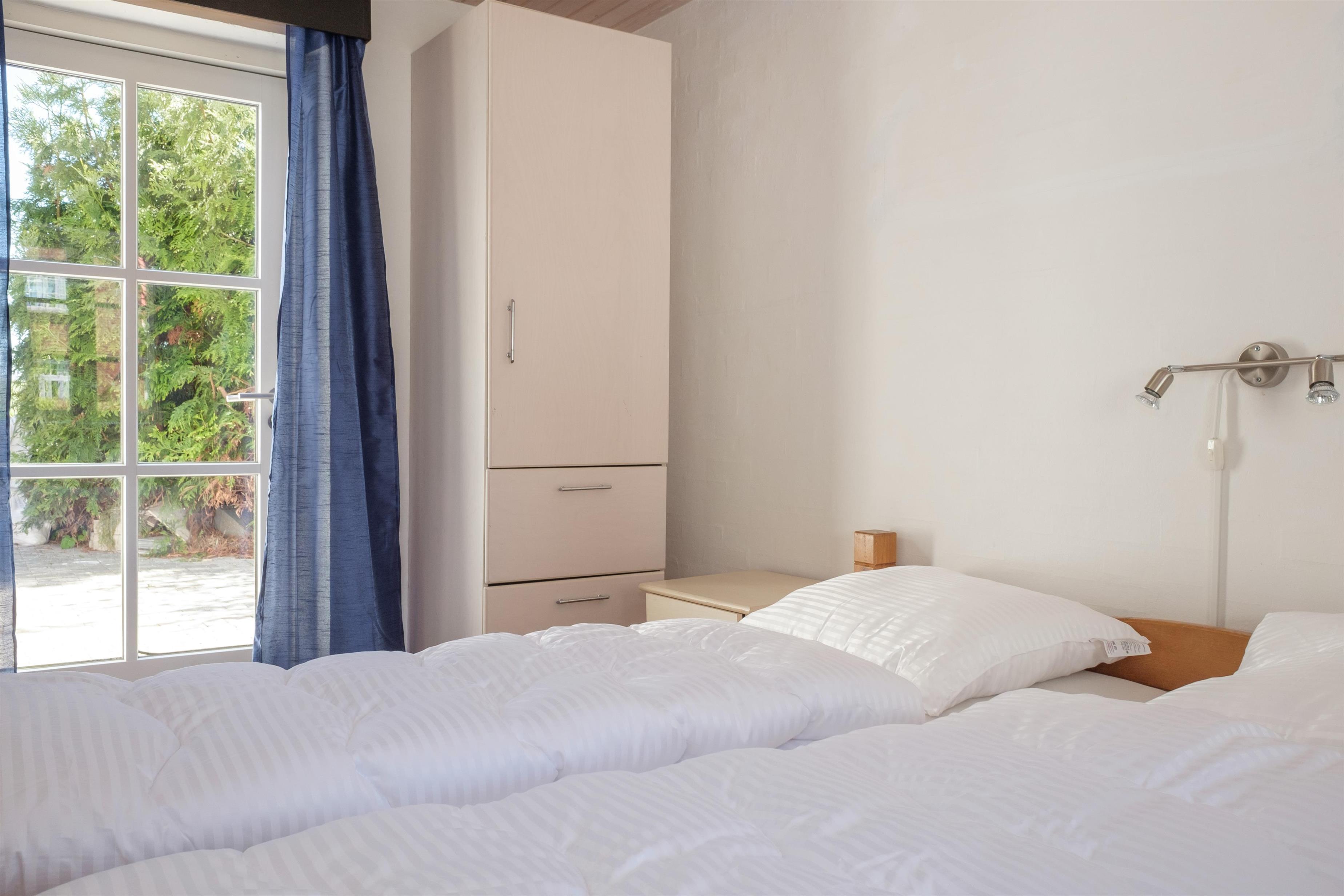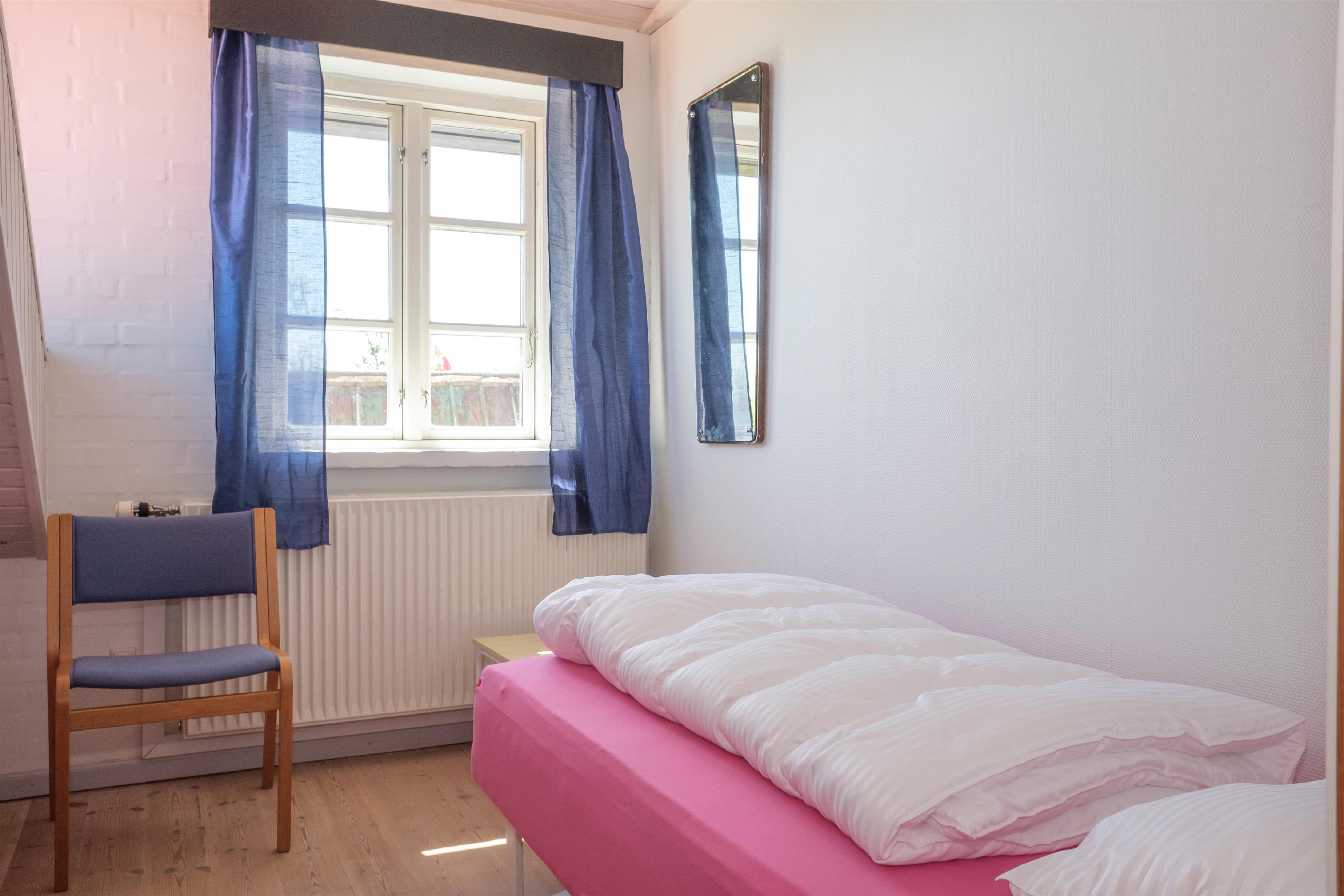 På 1. salen findes der 4 værelser: 3 med enkeltsenge og 1 med dobbeltseng, hvorfra der er udgang til balkon med udsigt ud over Kalø Vig. Endvidere fællesrum, stort badeværelse samt walk-in closet.
