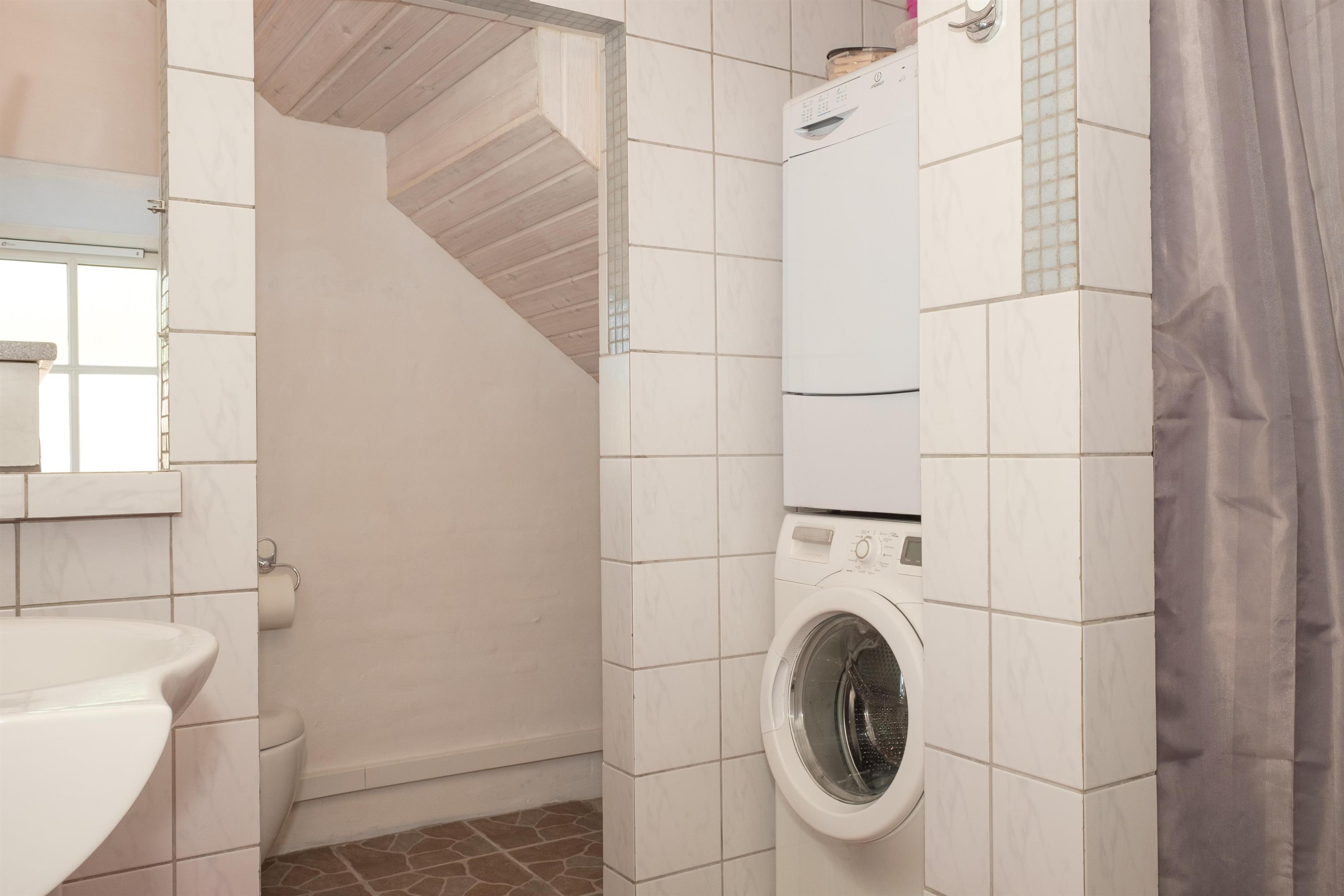 Huset er i stueplan indrettet med stort køkken/alrum med brændeovn – her er der masser af plads til at samles om fælles madlavning og spisning, også hvis der skal holdes fest i familien. Endvidere er der en stor stue med udgang til den dejlige have – her findes husets anden brændeovn. Derudover er der i stueetagen 2 værelser med dobbeltsenge og badeværelse.