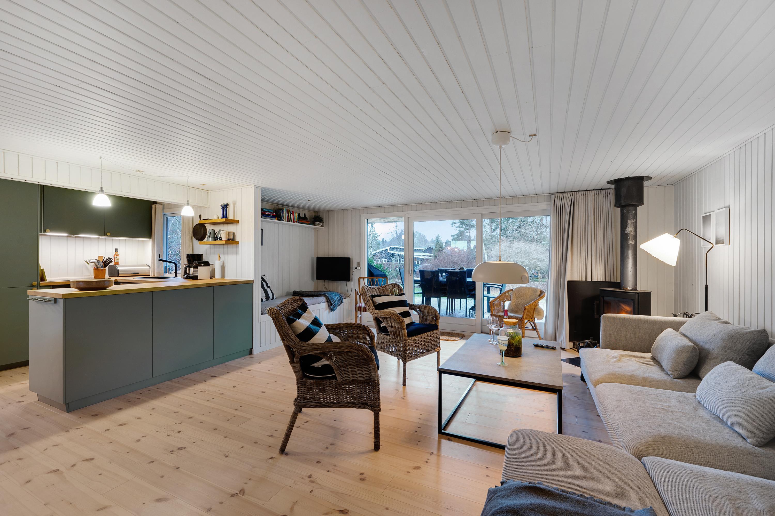 Ikke langt fra Skødshoved Strand, finder man denne naturperle, som oser af ægte sommerhusstemning og "rigtigt" sommerhus. Huset er moderniseret i 2022 og her finder man en hyggelig stue, møbleret med lækre møbler og med både brændeovn og varmepumpe. Herfra er der udgang til en skøn overdækket terrasse med havemøbler. I forbindelse med stuen finder man det flotte køkken med b.la vaskemaskine og en hyggelig spisekrog. Pænt badeværelse med bruseniche. Husets sovepladser finder man i et værelse med en køjeseng og en enkeltseng, et værelse med en dobbeltseng og den sidste soveplads i en hyggelig alkove i stuen. Der er både spil og legesager til børnene i huset som må benyttes. Tv foregår via chromecast . Udendørs er der både legehus, sandkasse og gynge til de små feriegæster, samt en stor græsplæne- velegnet til leg og boldspil og udendørs hygge.