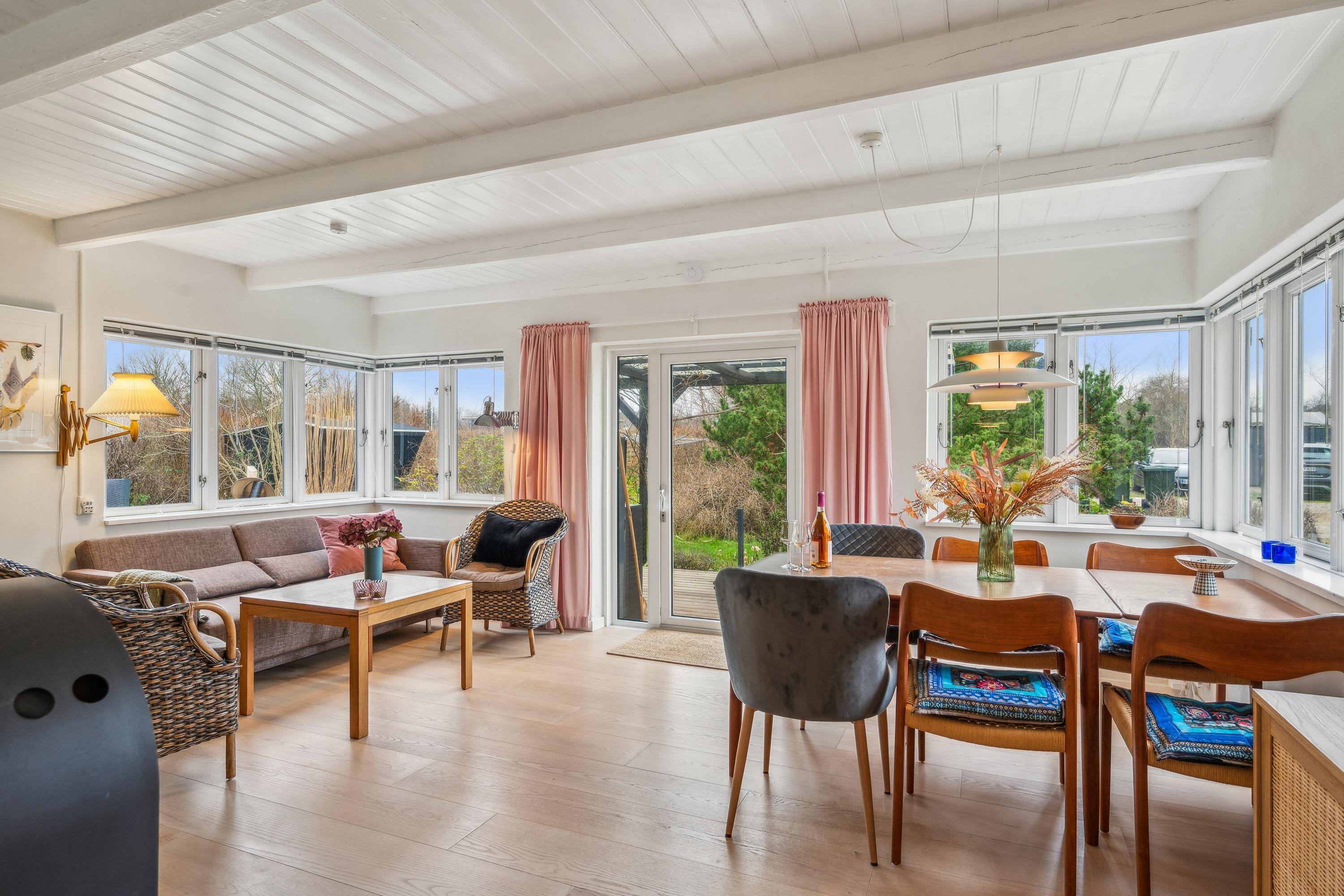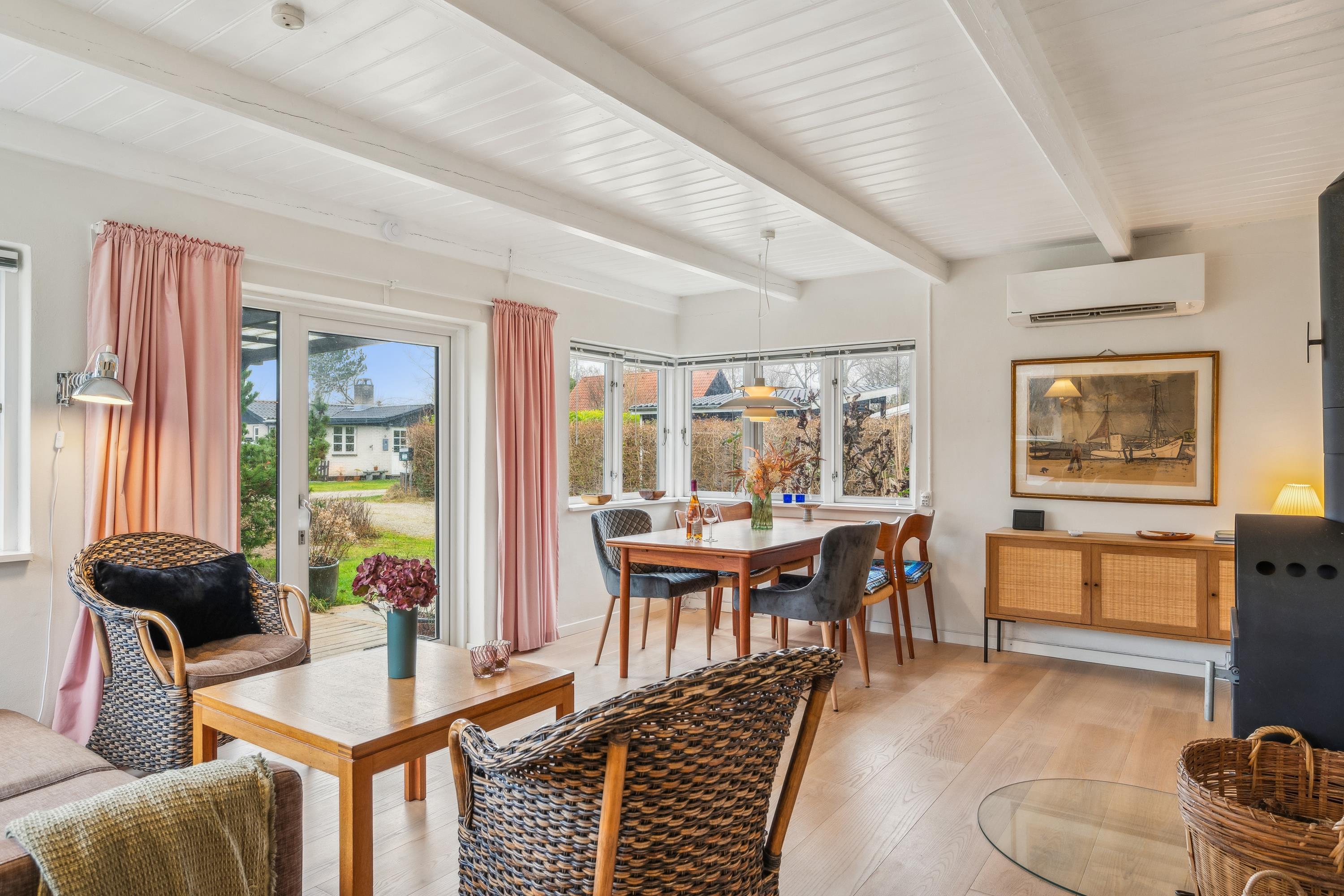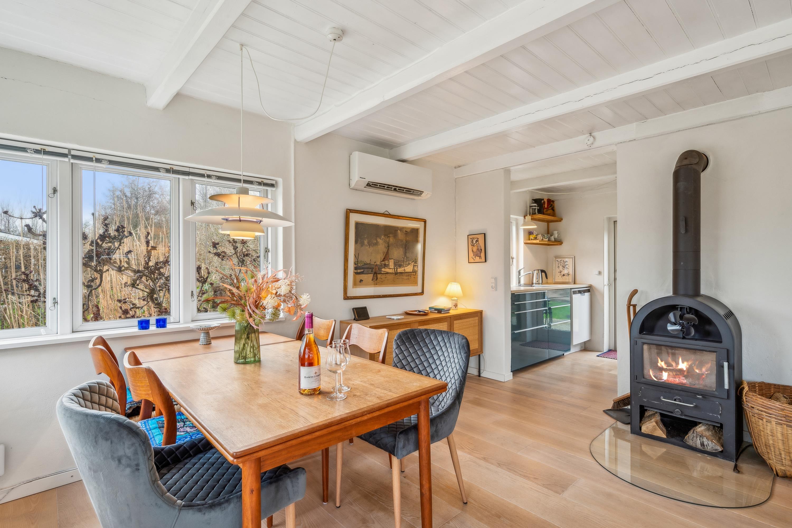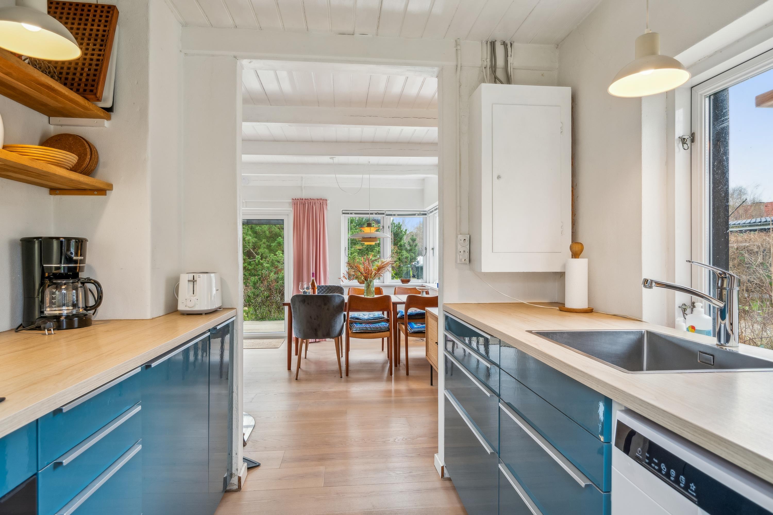 Blot 200 m fra vandet finder man dette hyggelige sommerhus. Huset er renoveret i 2021 med bl.a. nyt køkken. Her finder man en mindre stue med både brændeovn og varmepumpe som ligger i forbindelse med det flotte køkken. Husets sovepladser finder man i tre gode værelser, heraf to med dobbeltsenge og et værelse med to enkeltsenge. To gode badeværelser med bruseniche og gulvvarme og hvoraf det ene er med adgang til både vaskemaskine og tørretumbler. Huset er omgivet af store terrasser med havemøbler og grill og på grunden er der et hyggeligt shelter og udendørs bruser.