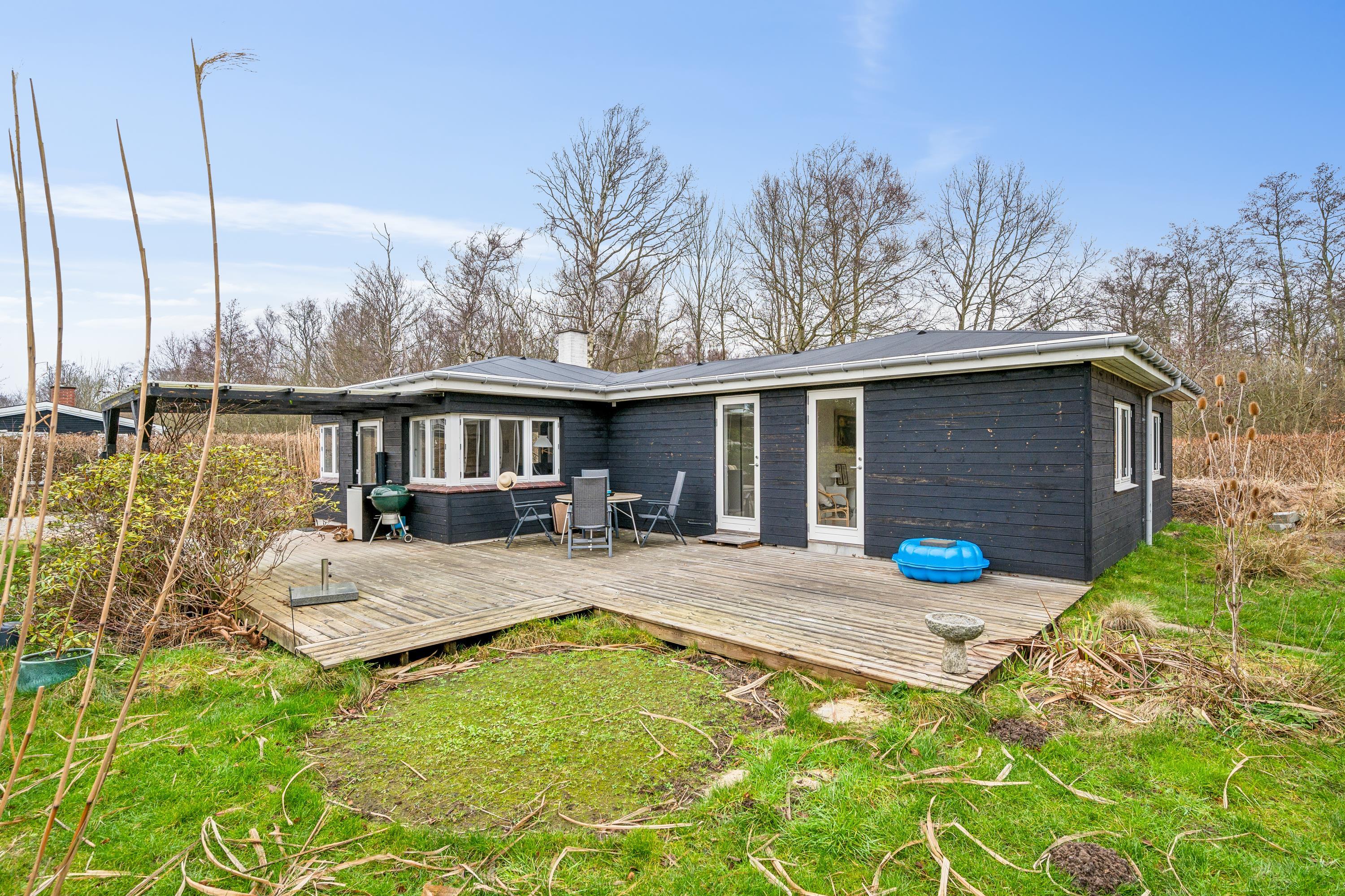 Hyggeligt sommerhus ved Skødshoved Strand med nyt køkken, 3 soveværelser og stor terrasse med grill.