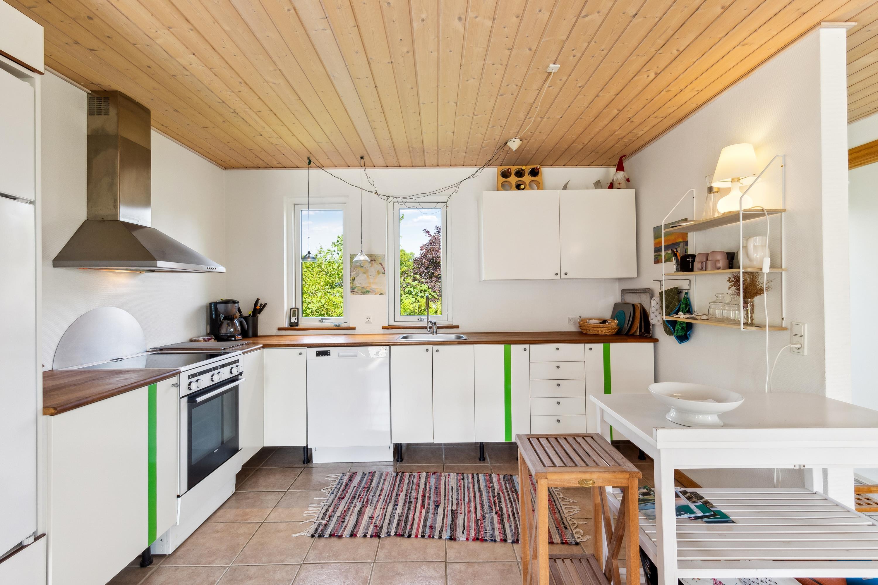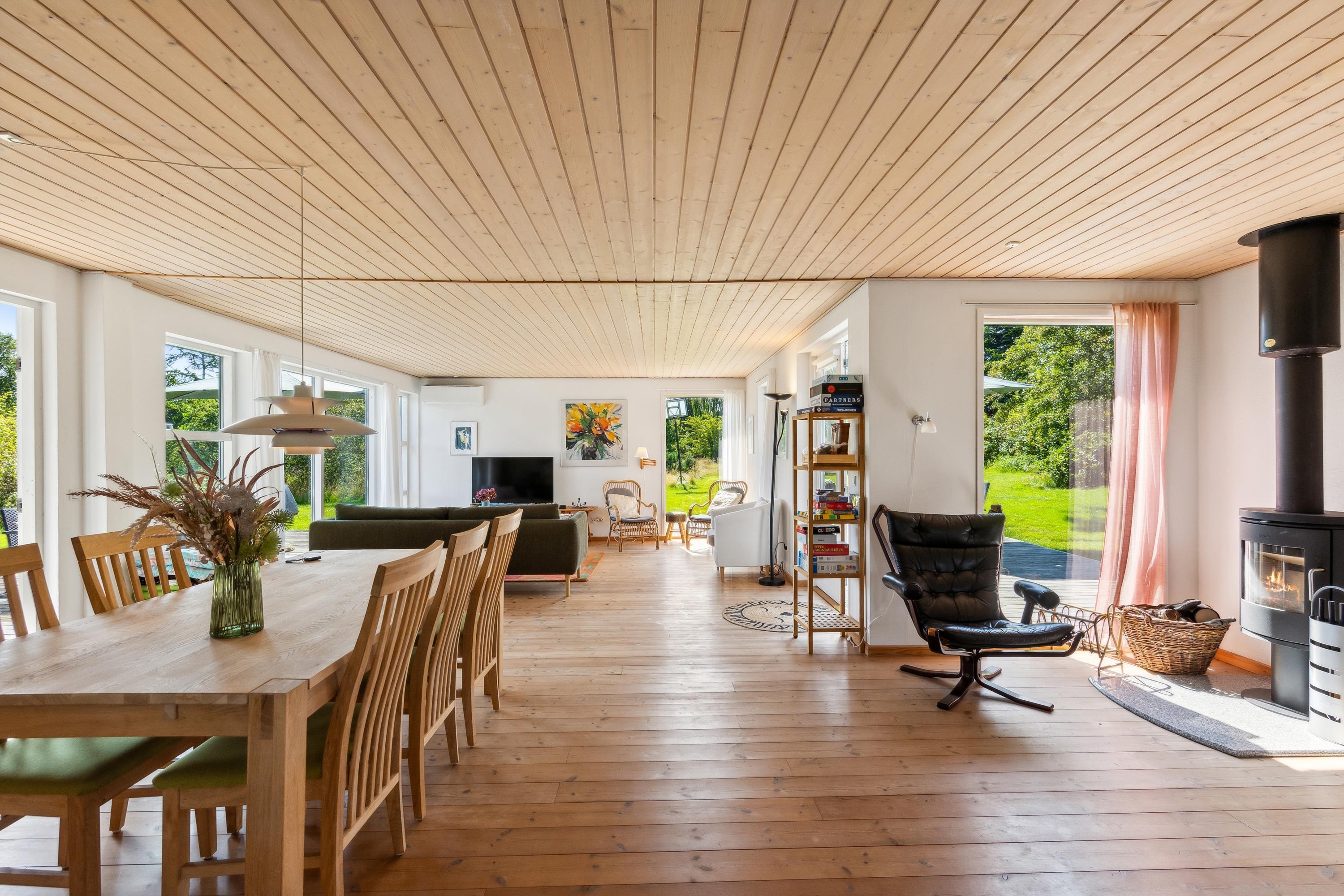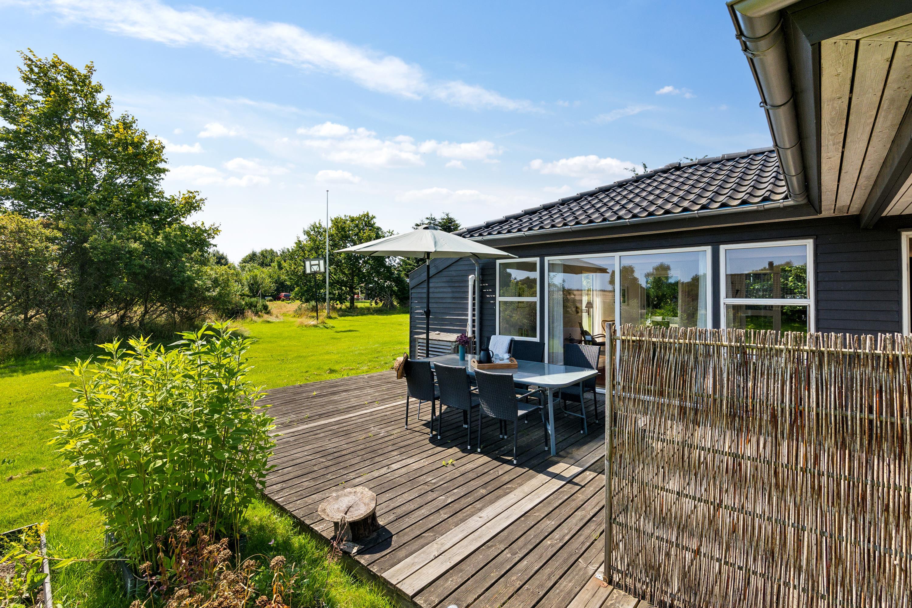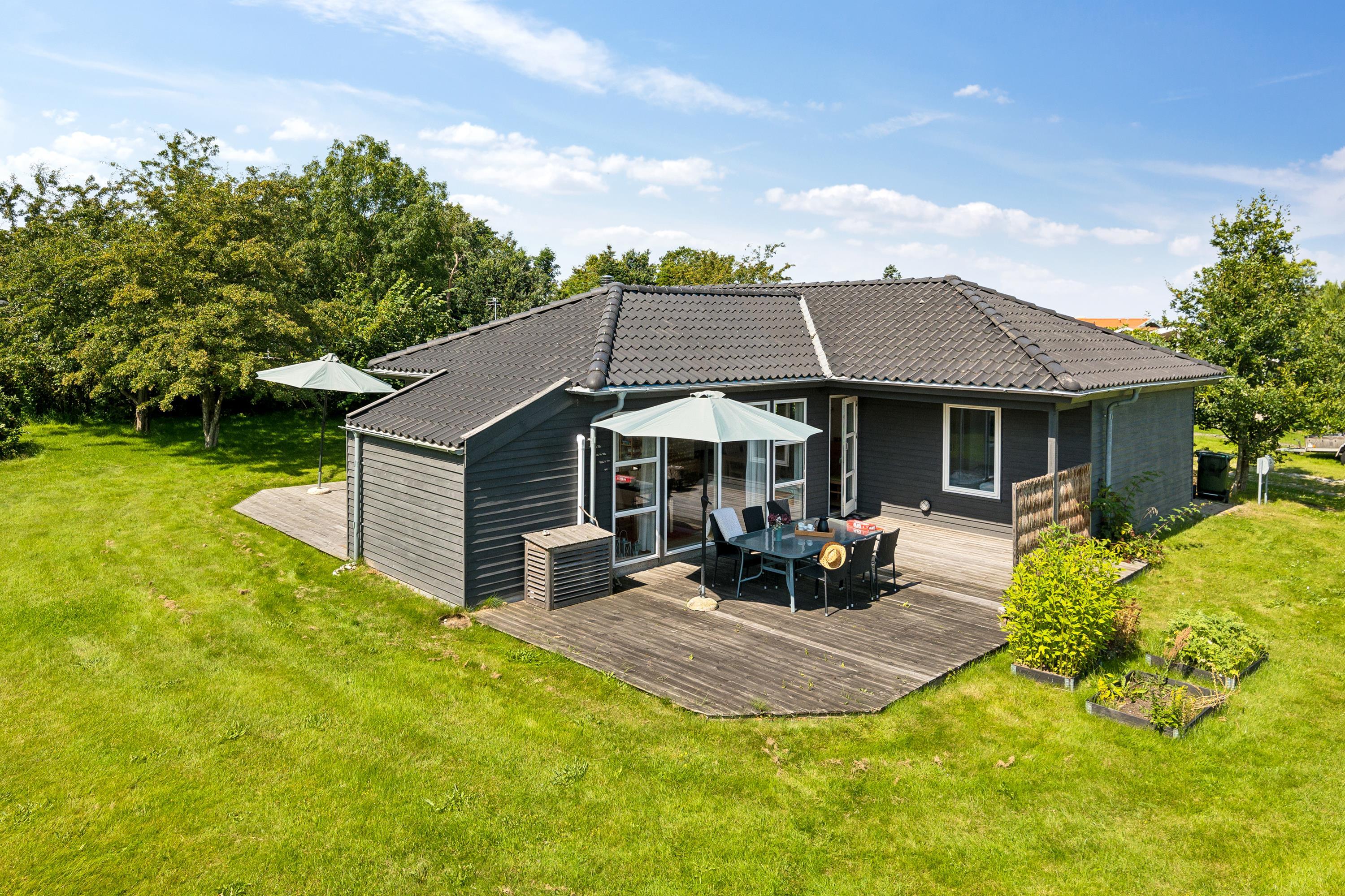 I det smukkeste område på Mols, med udsigt over mark og skov og tæt på vand, finder man dette særdeles velholdte feriehus. Her finder man en lys og rummelig stue, hyggeligt møbleret med gode møbler, brændeovn og varmepumpe og med udgang til en dejlig terrasse. I forbindelse med stuen finder man det velfungerende køkken med b.la. opvaskemaskine. Huset indeholder to flotte badeværelser, hvoraf det ene er med spa-bad og adgang til sauna. Der er tre gode værelser, heraf to med dobbeltsenge og et værelse med to enkelt senge. Fra det ene soveværelse er der direkte udgang til en lille overdækket terrasse. Der er flere skønne terrassearealer, så man kan nyde både solopgang og solnedgang. Huset er beliggende på en skøn grund med stor græsplæne, velegnet til leg og udendørs hygge. Området er roligt og meget børnevenligt og af stisystemet tæt ved huset, er der 5 min gang til vandet. En god badestrand finder man ved Skødshoved ca. 5- 10 min kørsel fra huset.