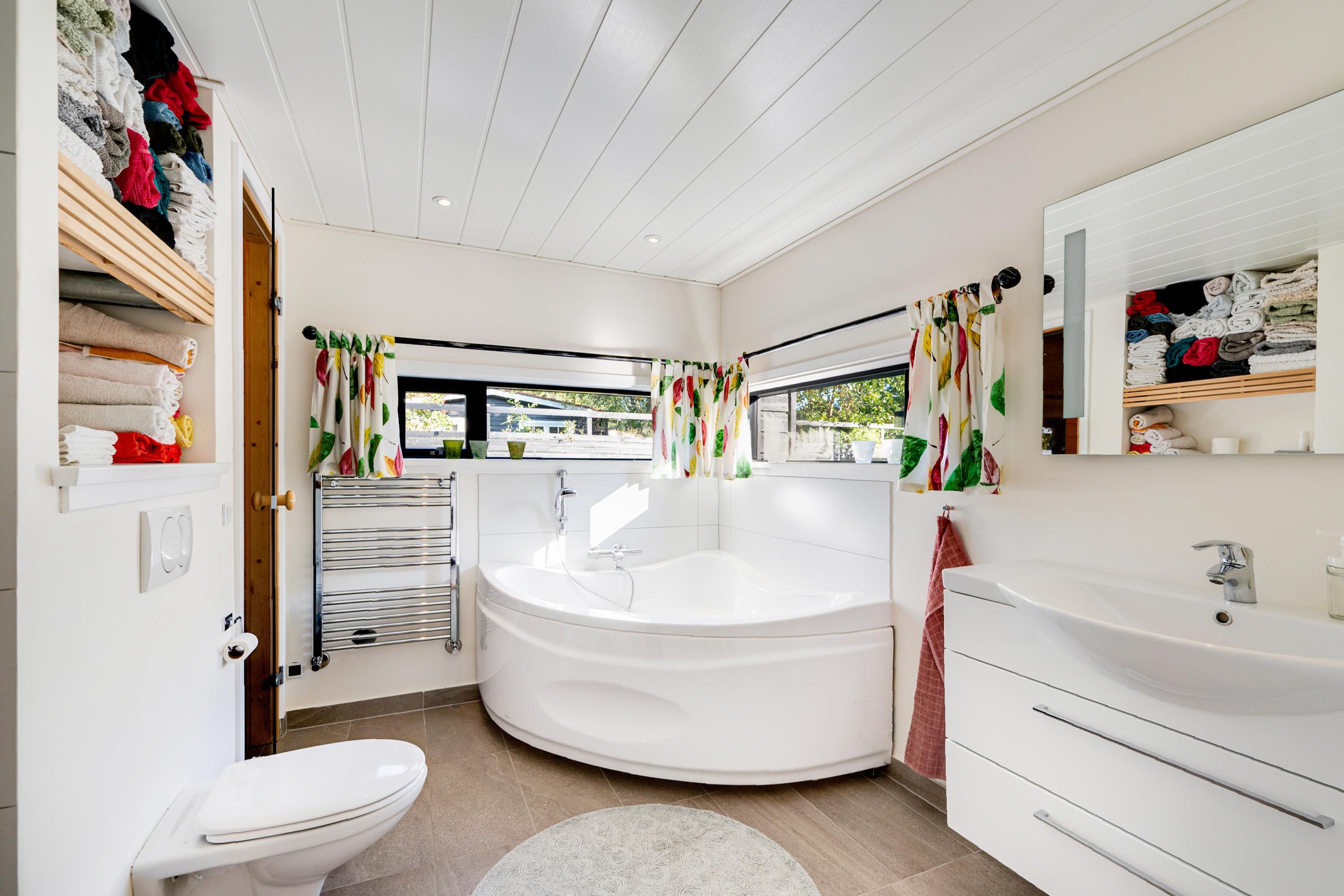 Dette nye og meget rummelige feriehus er beliggende på opvokset naturgrund i det smukke og rolige område ud til Begtrup Vig. Huset er omgivet af en træterrasse, hvis sydvendte del er overdækket, med gode havemøbler, liggestole, parasol og grill. Et virkelig skønt og velindrettet hus til den store eller flere familier. Huset er desuden energivenligt.