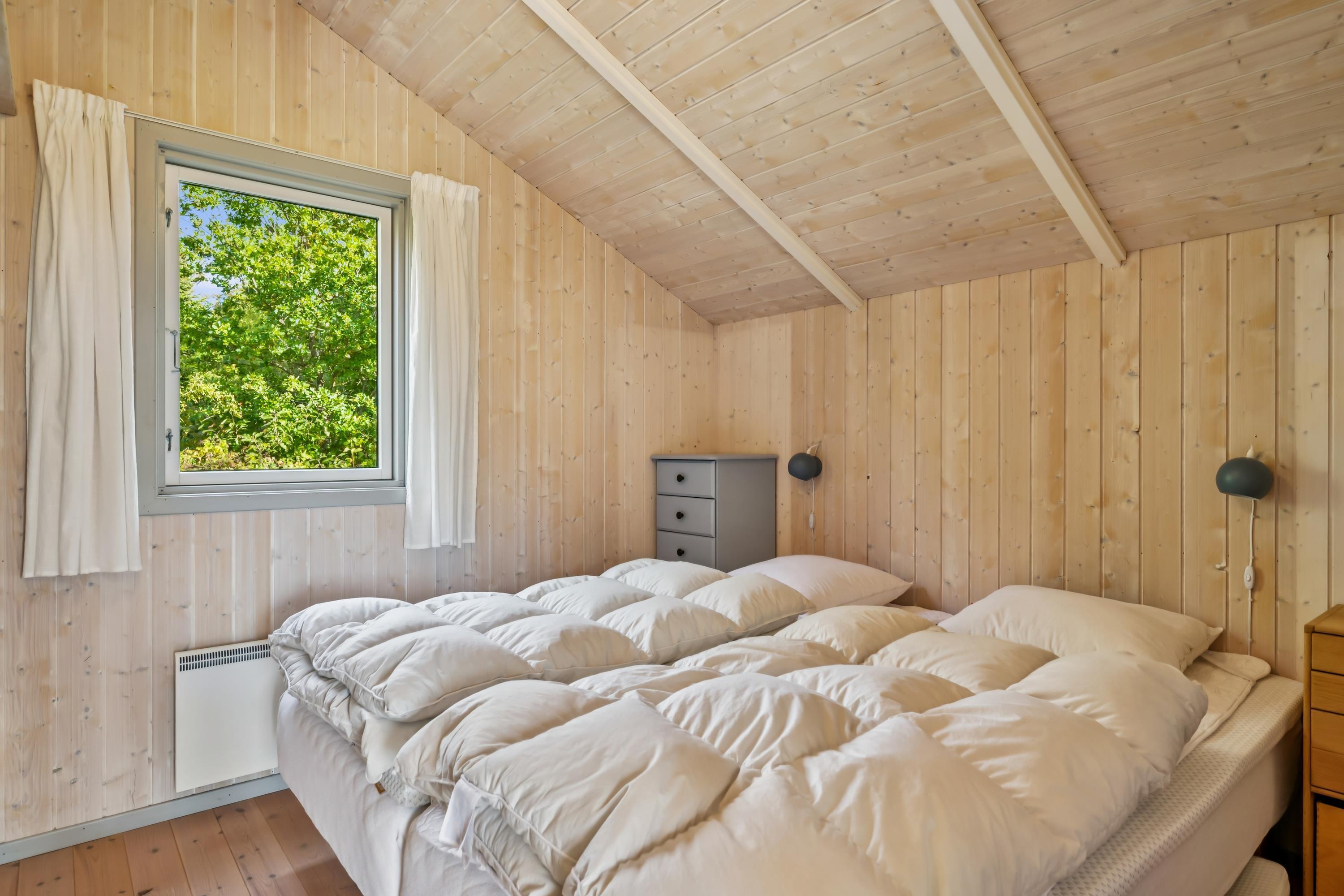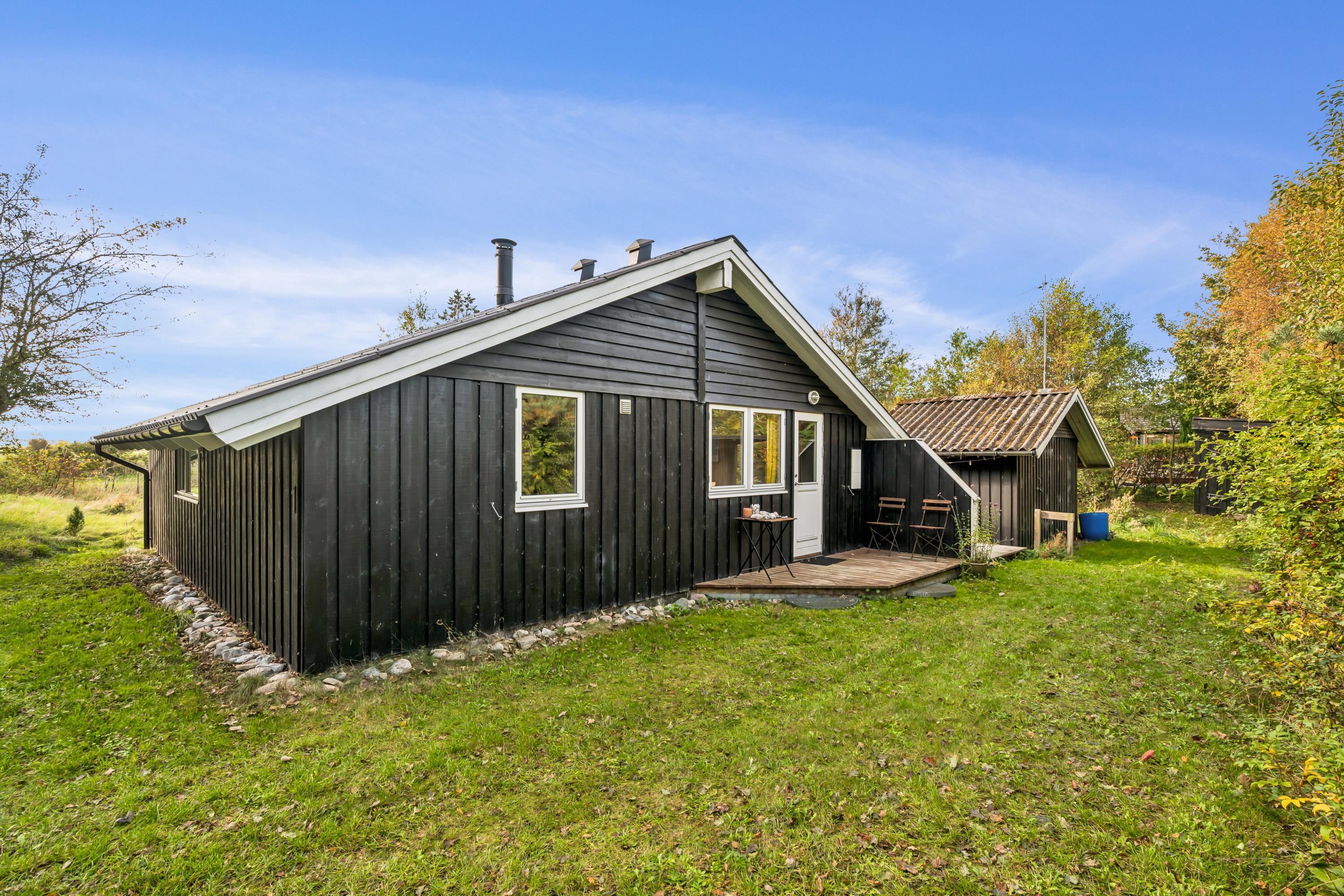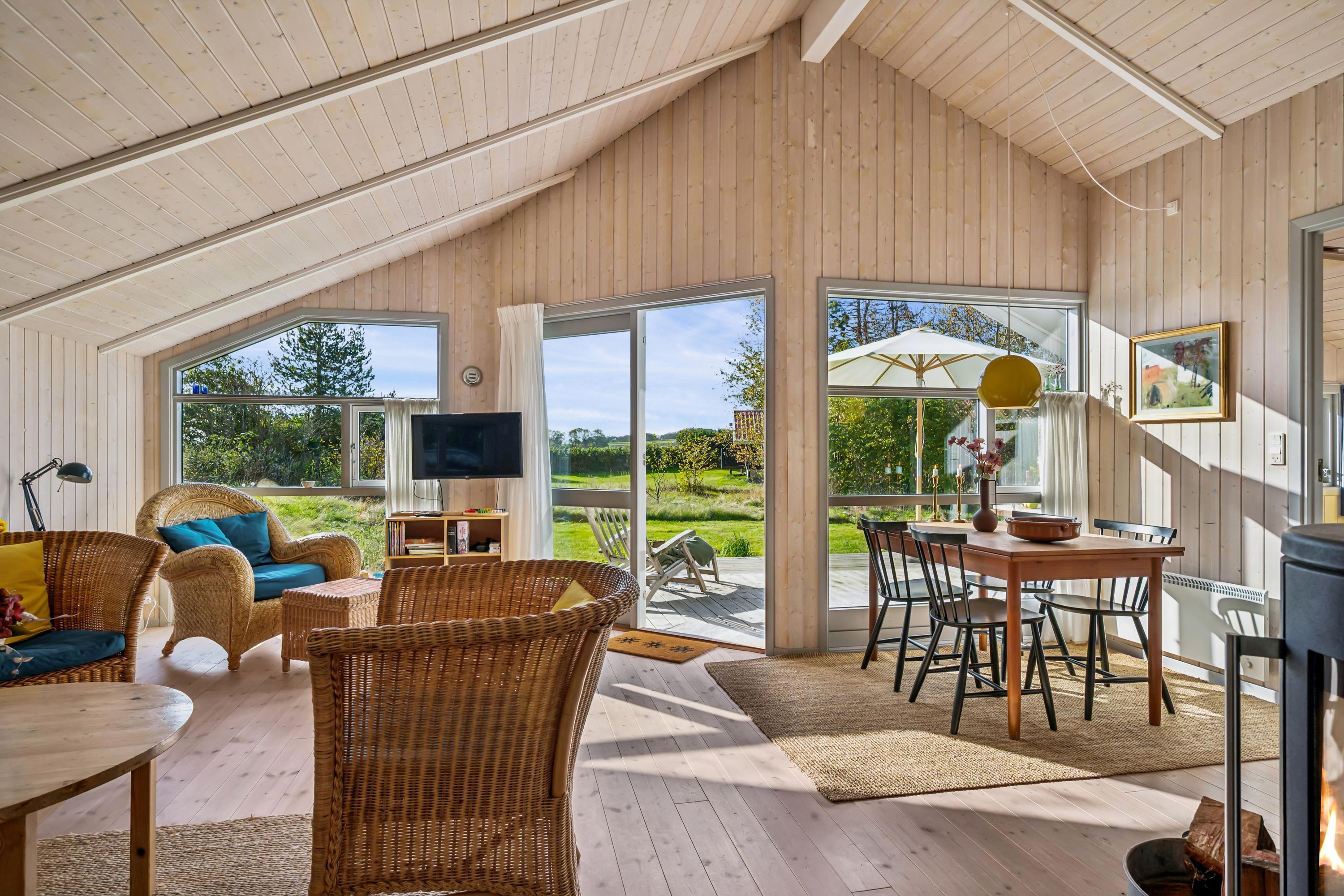 Blot 5 minutters gang til en dejlig og børnevenlig sandstrand finder man dette hyggelige feriehus. Her finder man en dejlig lys stue med brændeovn og varmepumpe og med udgang til både overdækket og åbent terrasseareal med havemøbler. I forbindelse med stuen finder man det flotte køkken med b.la. opvaskemaskine og vaskemaskine. Dejligt badeværelse med bruseniche og gulvvarme. Husets sovepladser finder man i to hyggelige værelser med dobbeltsenge og den sidste soveplads finder man på en god sofa i stuen. Et rigtig hyggeligt feriehus beliggende på en dejlig naturgrund med græsplæne, velegnet til leg og udendørs hygge.