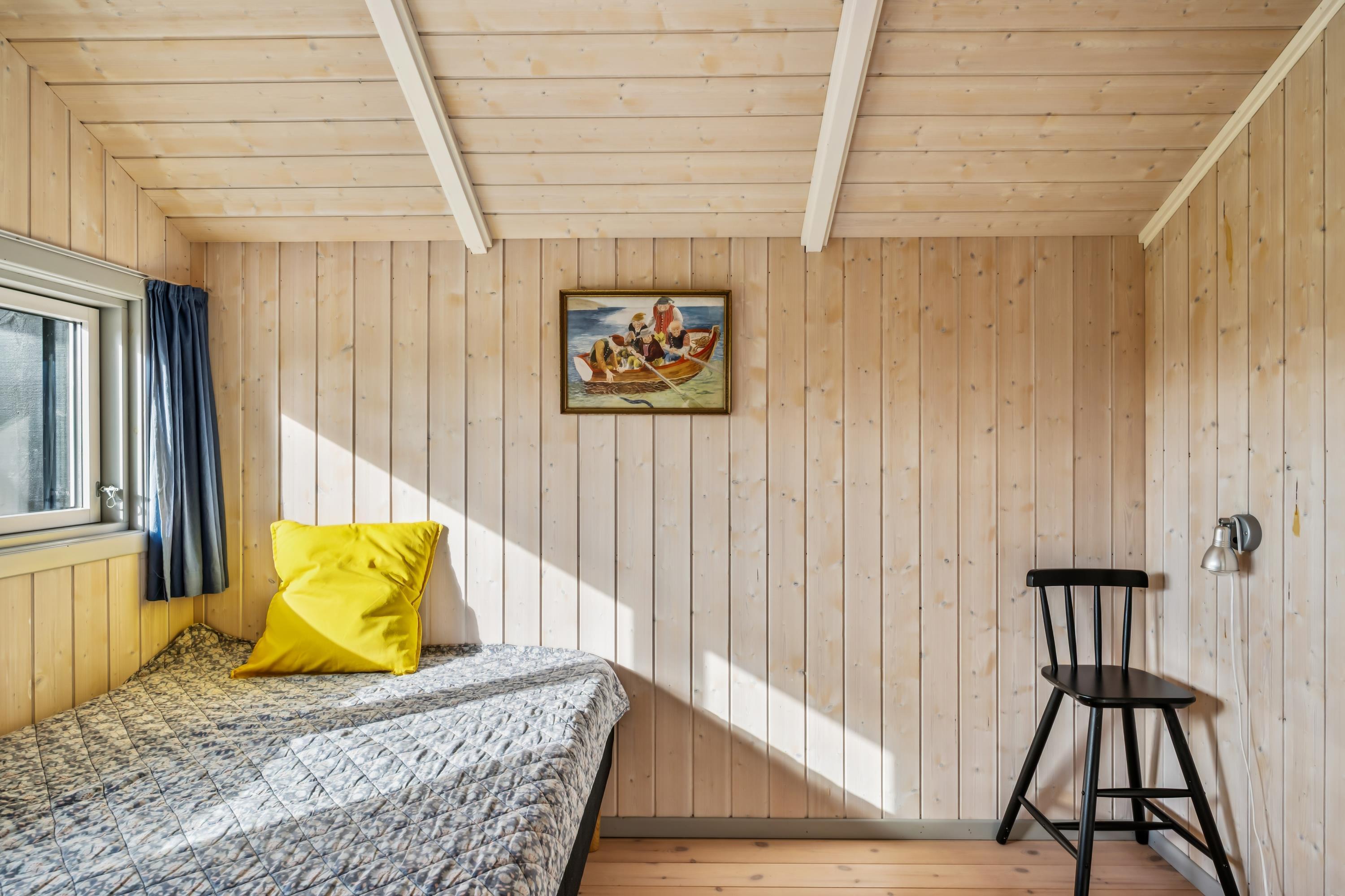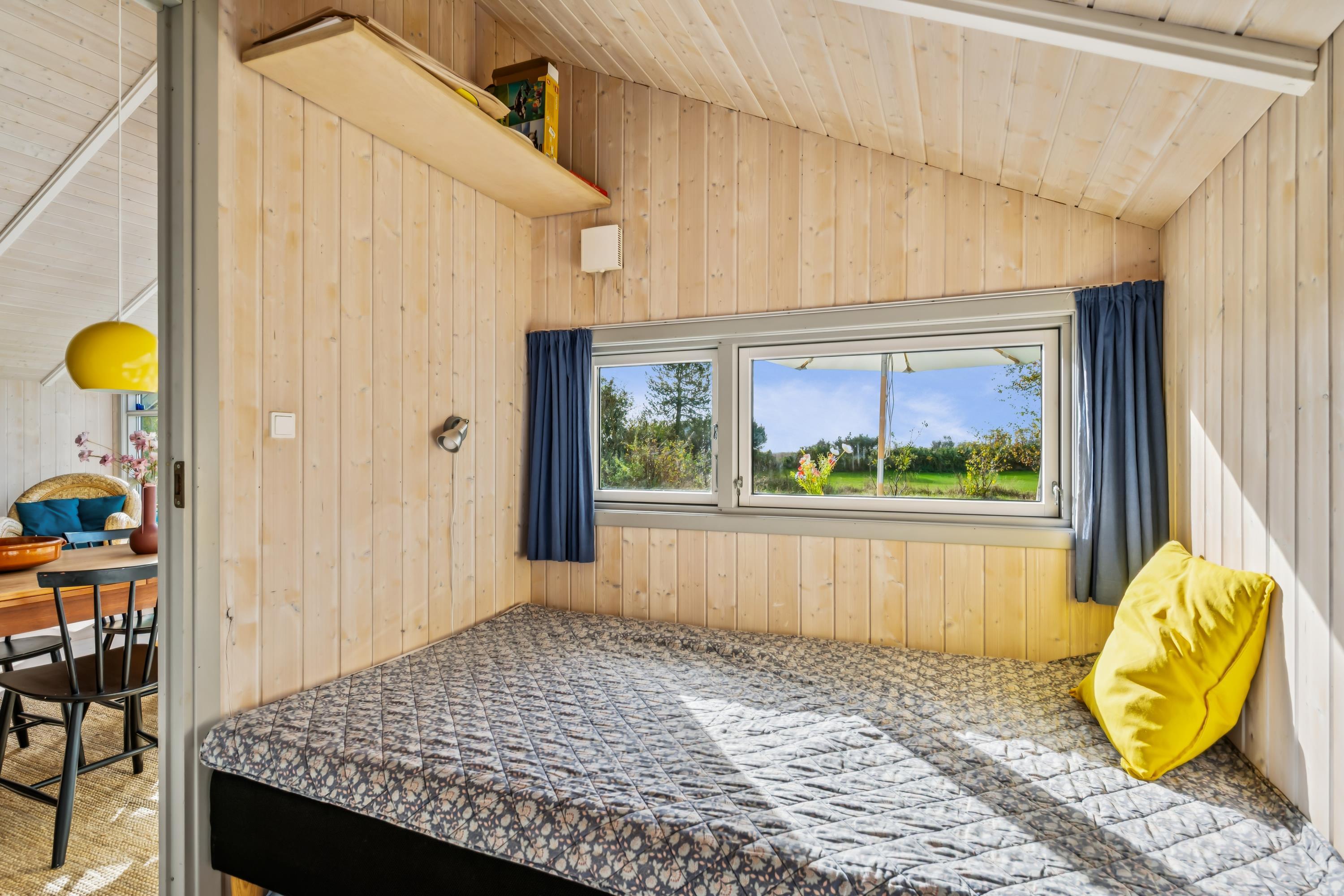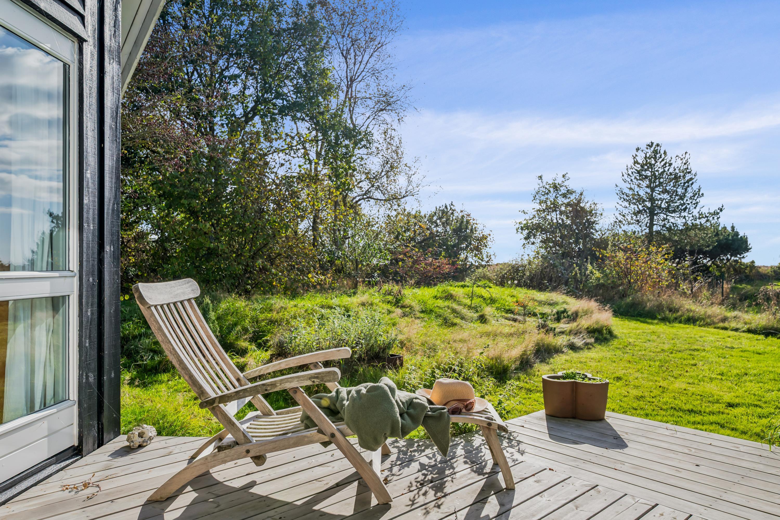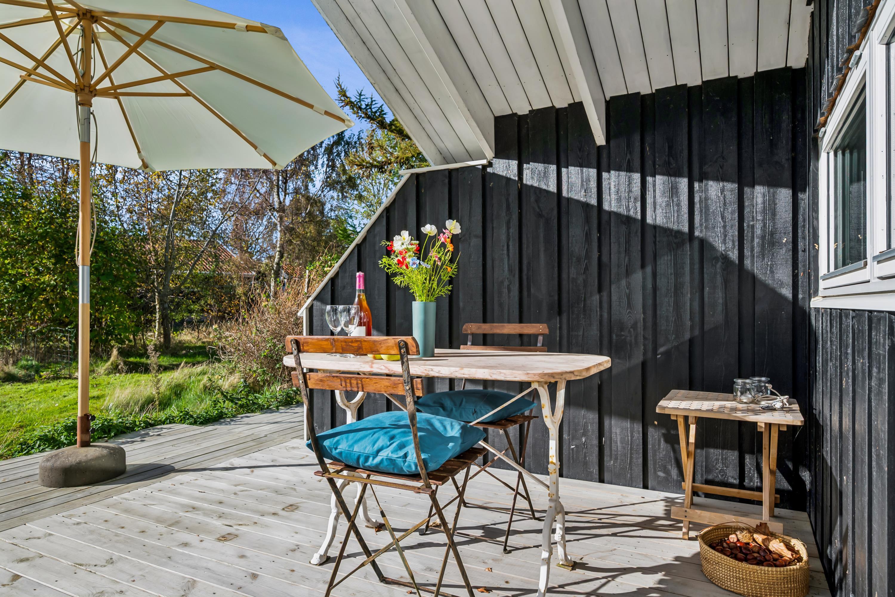 Blot 5 minutters gang til en dejlig og børnevenlig sandstrand finder man dette hyggelige feriehus. Her finder man en dejlig lys stue med brændeovn og varmepumpe og med udgang til både overdækket og åbent terrasseareal med havemøbler. I forbindelse med stuen finder man det flotte køkken med b.la. opvaskemaskine og vaskemaskine. Dejligt badeværelse med bruseniche og gulvvarme. Husets sovepladser finder man i to hyggelige værelser med dobbeltsenge og den sidste soveplads finder man på en god sofa i stuen. Et rigtig hyggeligt feriehus beliggende på en dejlig naturgrund med græsplæne, velegnet til leg og udendørs hygge.
