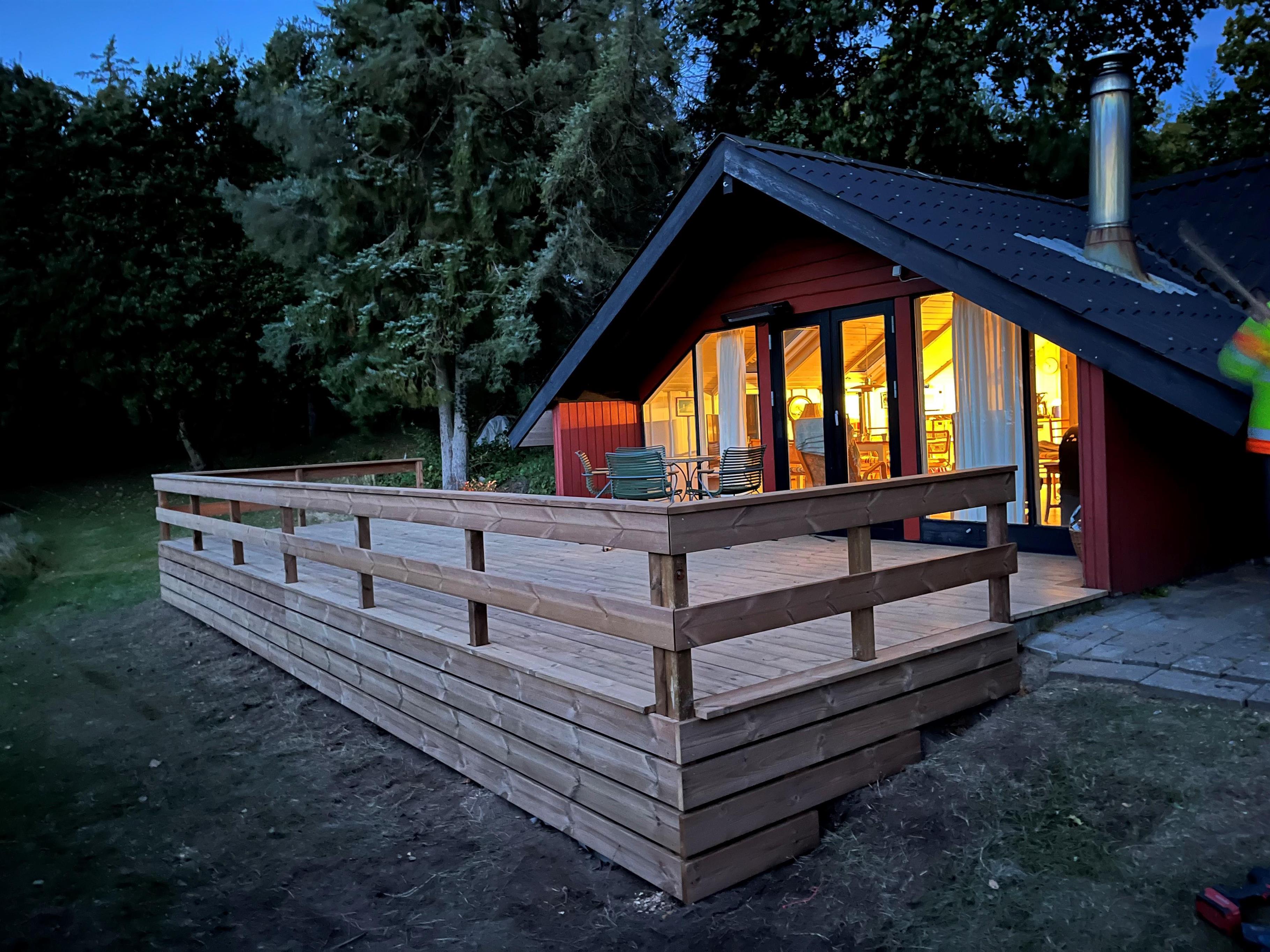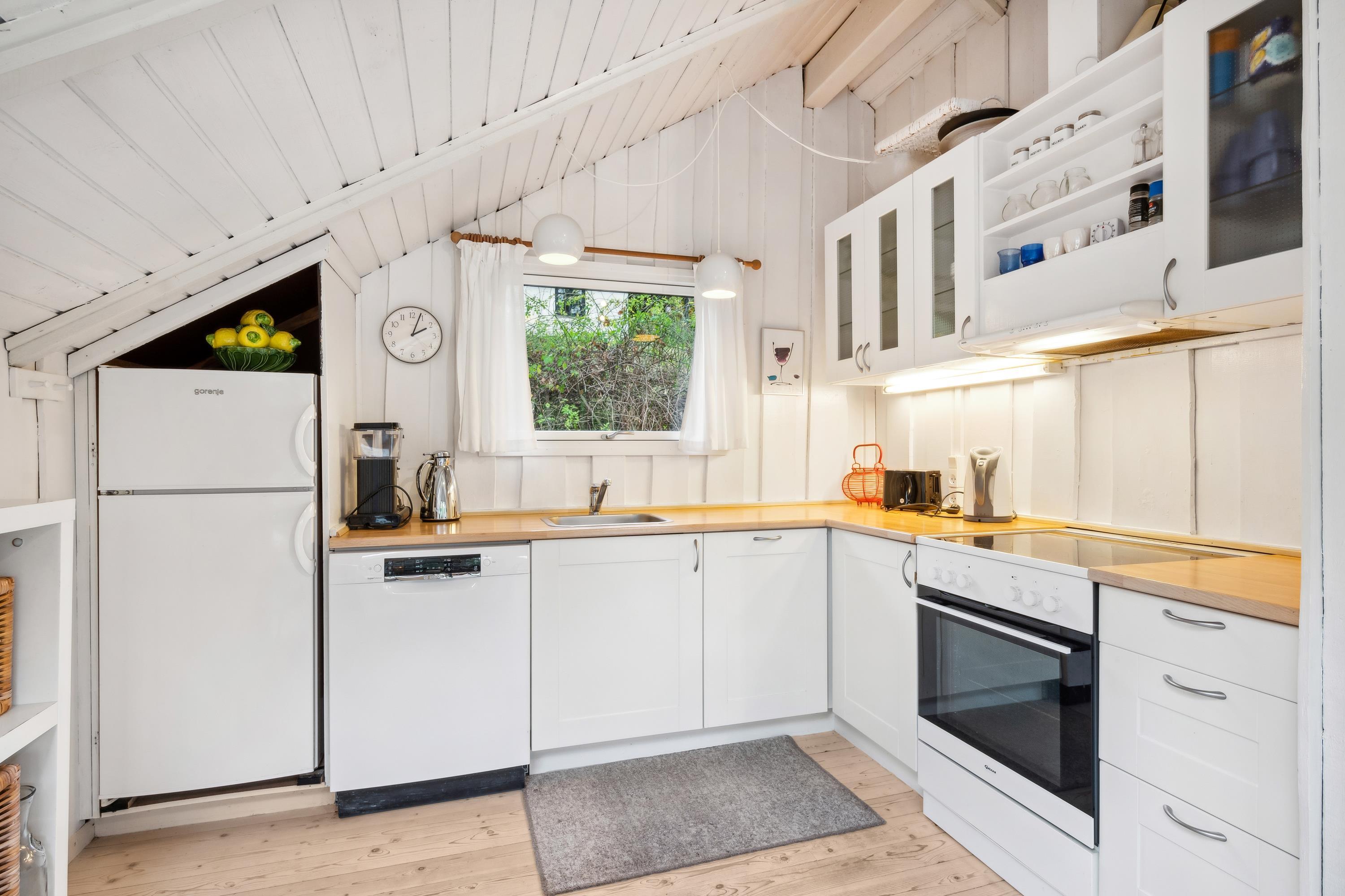 Velholdt og dejligt sommerhus beliggende på meget stor naturgrund i 1. række til vandet med havkig samt god terrasse med havemøbler og grill. Lys og venlig indretning med hyggelig opholdsstue med brændeovn, TV (gratis danske programmer og TV2), DVD samt stereoanlæg med CD. Pænt og veludstyret køkken med komfur med keramiske kogeplader, køleskab med lille fryser, mikrobølgeovn og opvaskemaskine. Nyere, flot badeværelse med bruseniche og gulvvarme. Husets sovepladser fordeler sig på 2 soverum med helt nye kvalitetssenge: 1 med dobbeltseng (280 cm bred) og 1 med 2 gode enkeltsenge. Terrassevarmer.