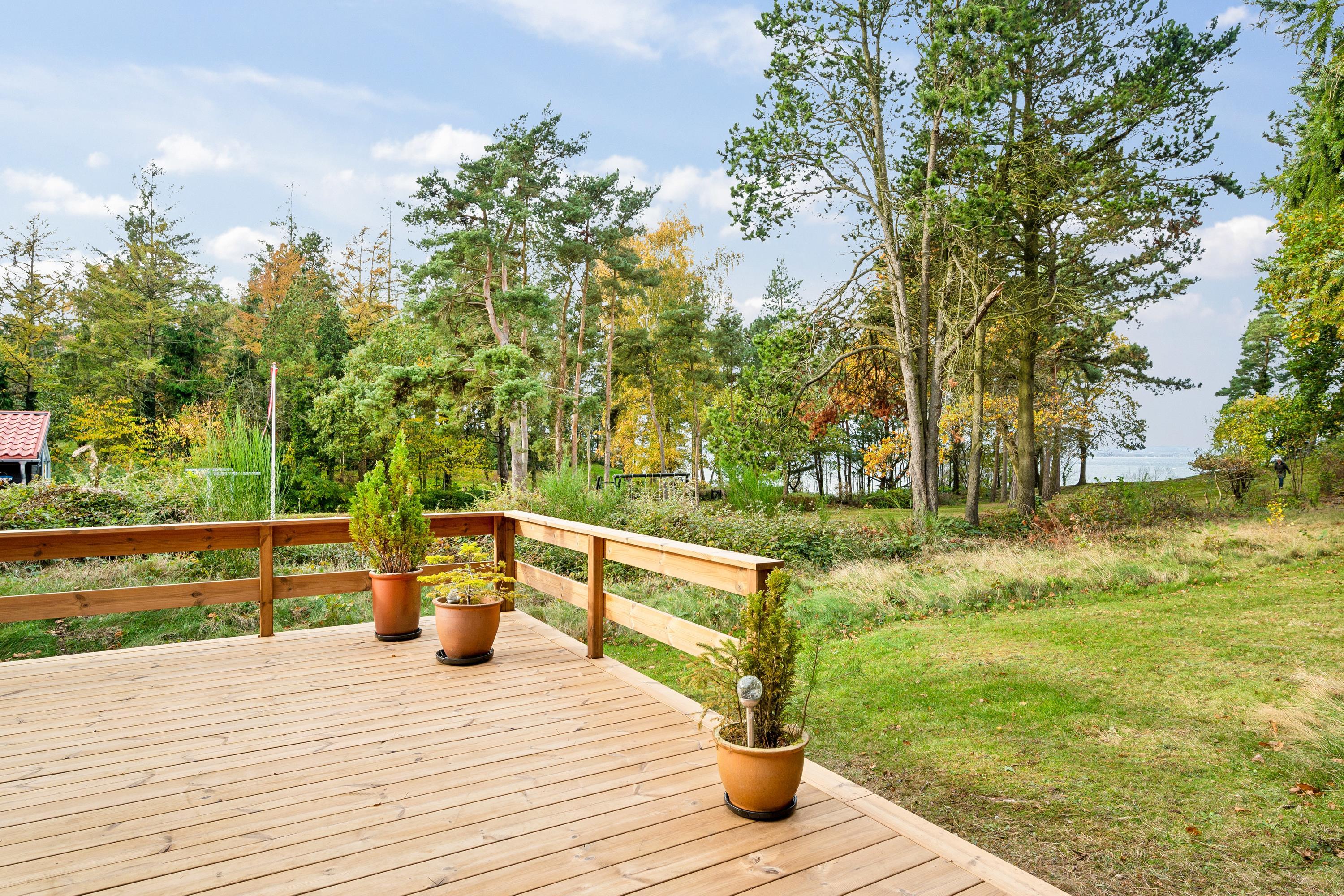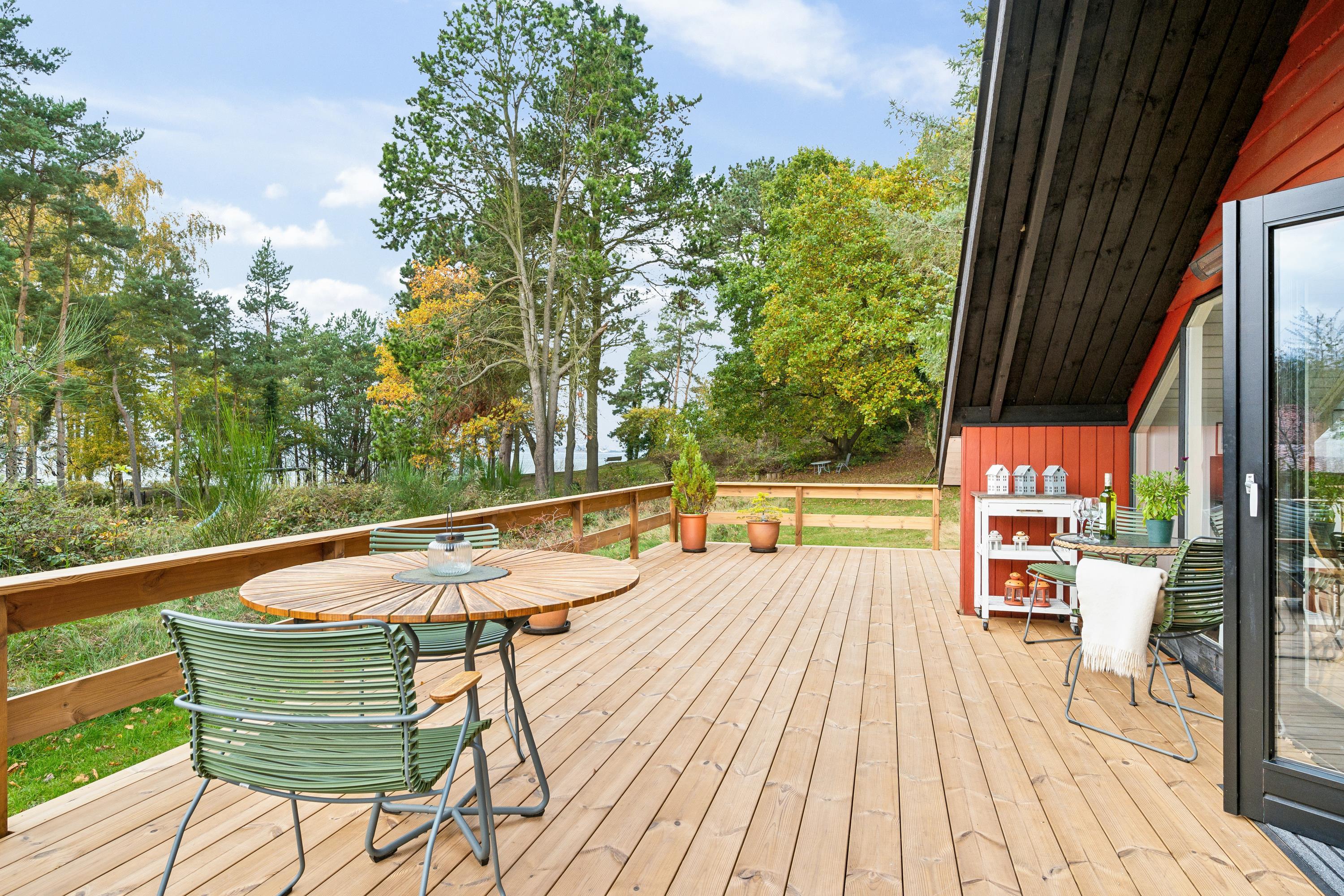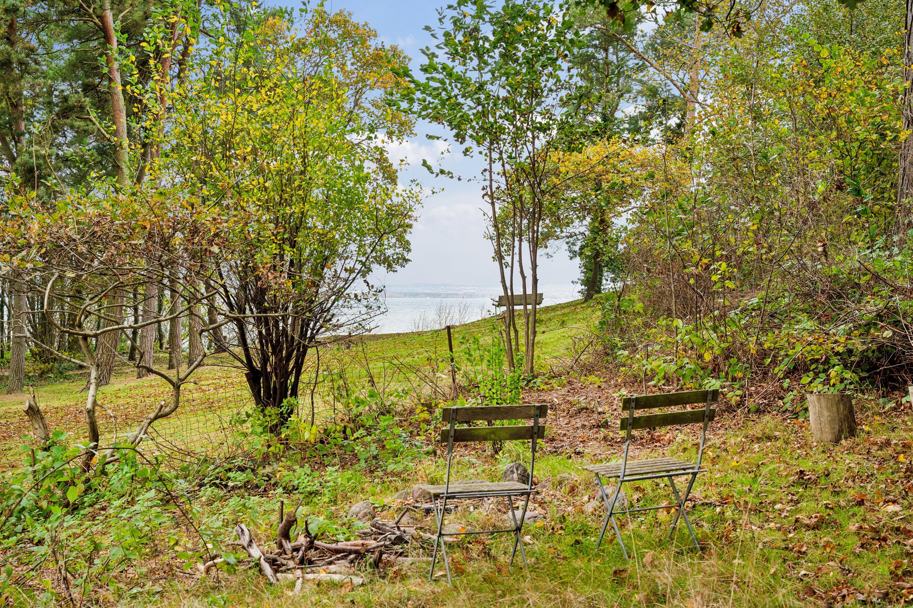 Charmerende sommerhus i 1. række til vandet med stor naturgrund, havkig og dejlig terrasse med grill og havemøbler.