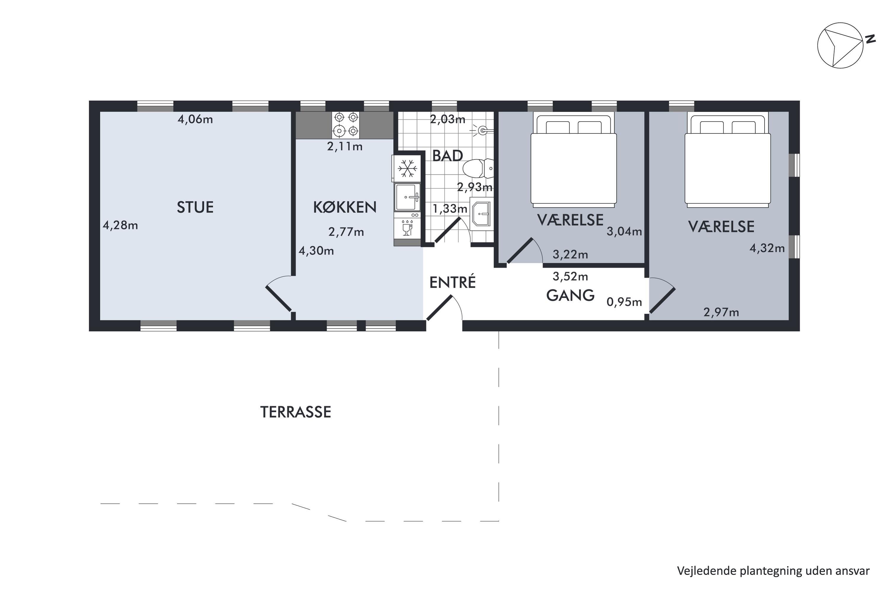 I dag er huset nænsomt restaureret og indrettet med en hyggelig stue med spiseplads, et moderne og veludstyret køkken samt to dejlige soveværelser med dobbeltsenge. Badeværelset er lyst og funktionelt med bruseniche.