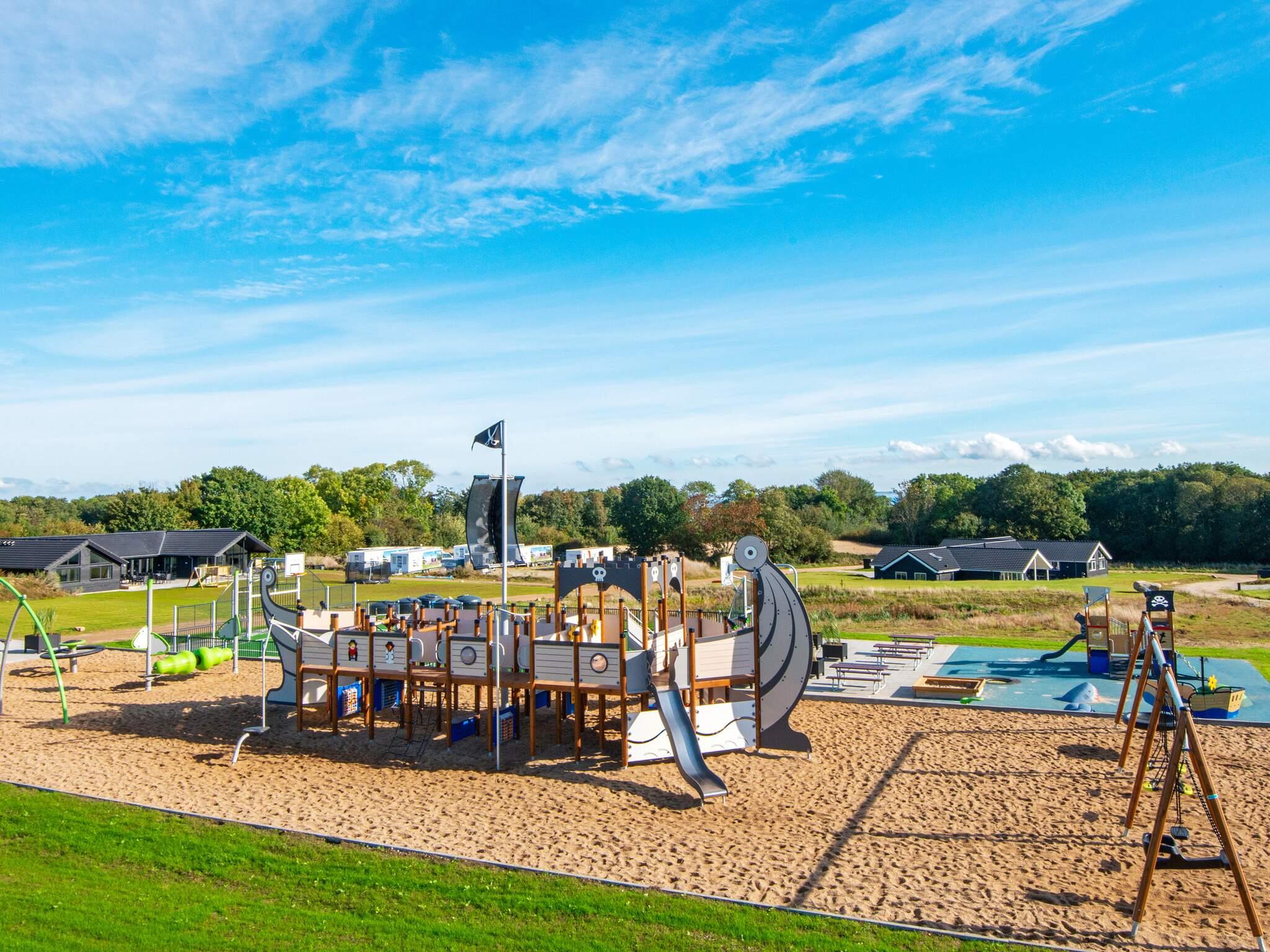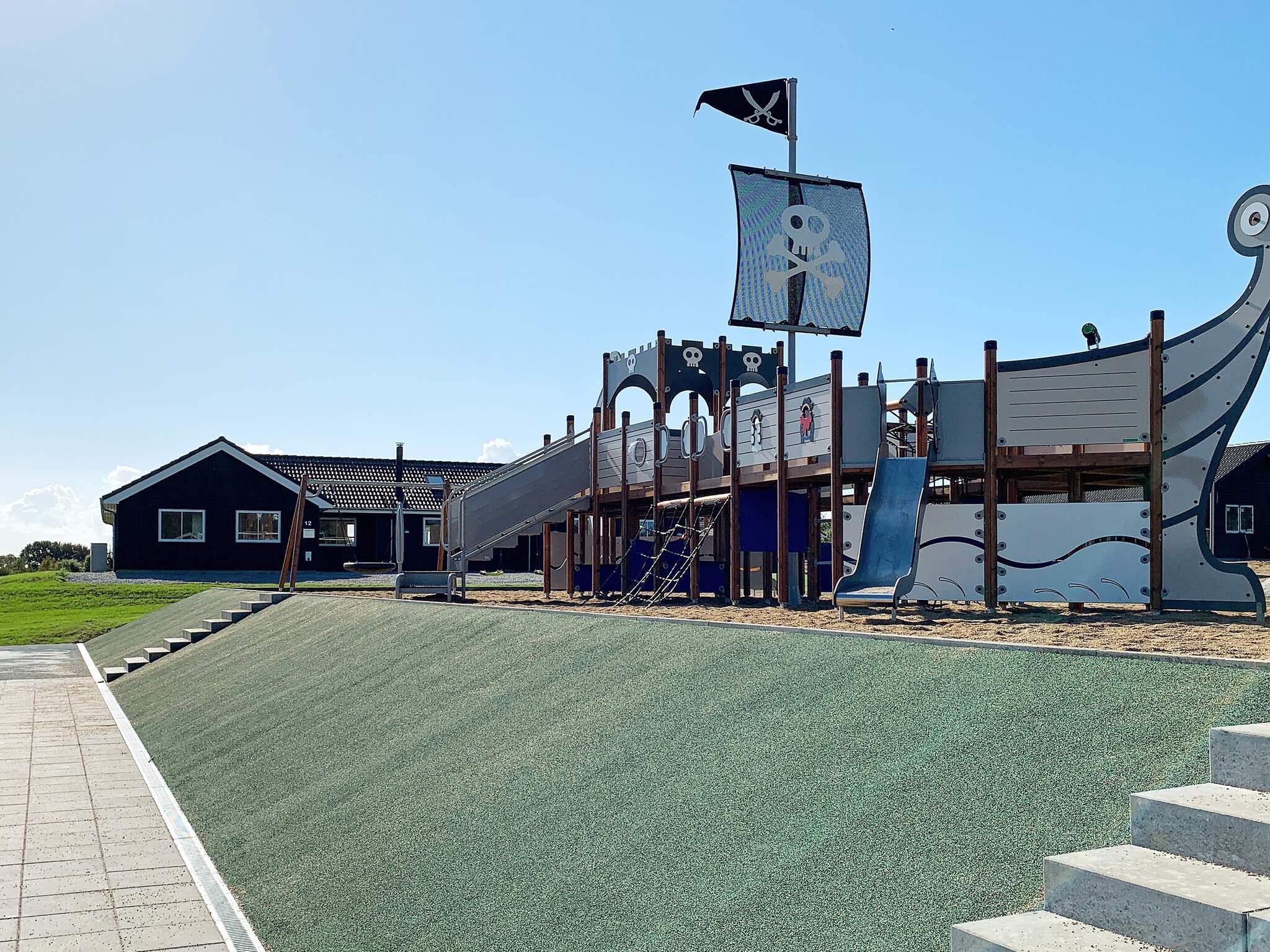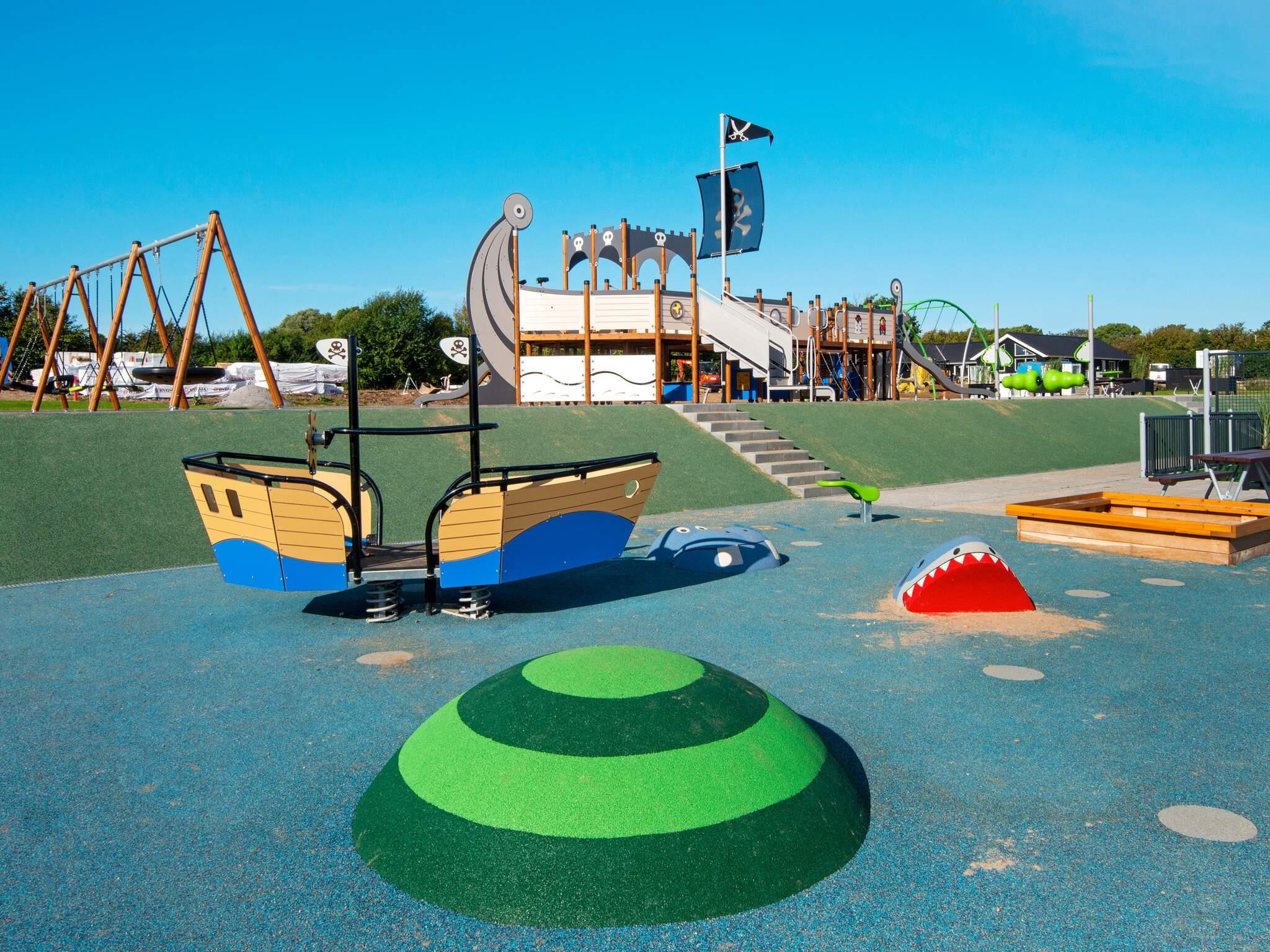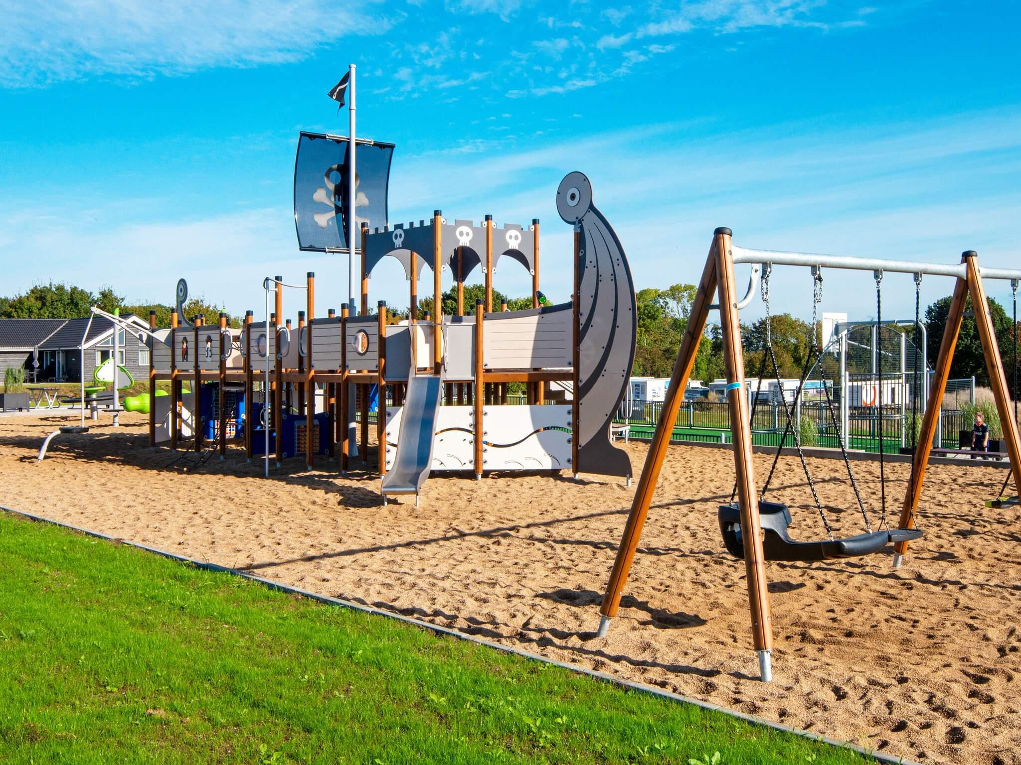 Alle luksusferiehuse i Mommark har adgang til et stort, fælles udendørs legeområde og multibane. Her kan børn og sjæleunge tilbringe deres feriedage med at lege på det store piratskib, gynge, glide og klatre på klatrestativet. Den græsdækkede multibane kan bruges til fodbold, basketball, fodtennis, volleyball og badminton. Ved siden af ??legepladsen finder du også borde og bænke, hvor voksne og andre tilskuere kan hygge sig og slappe af.