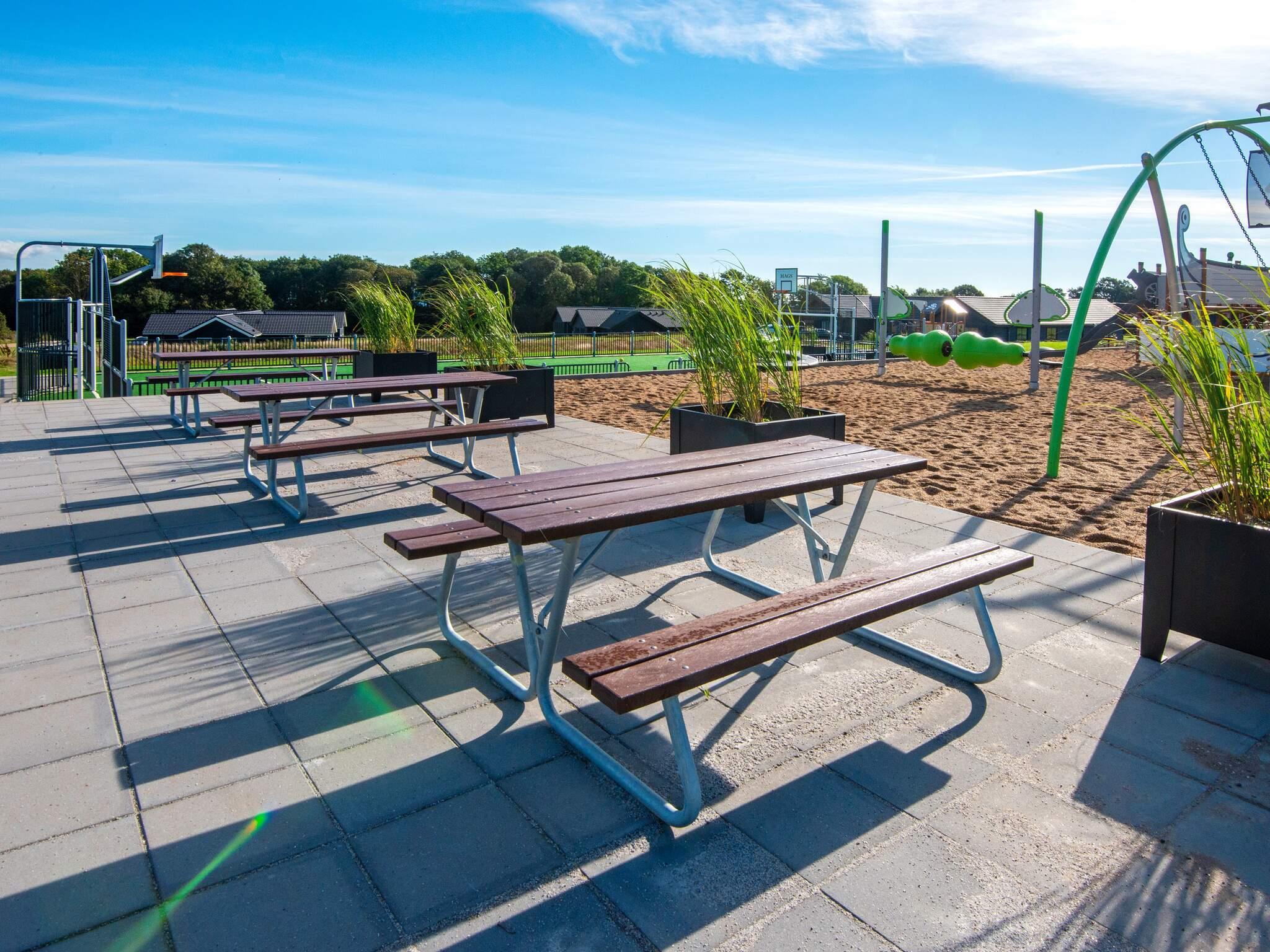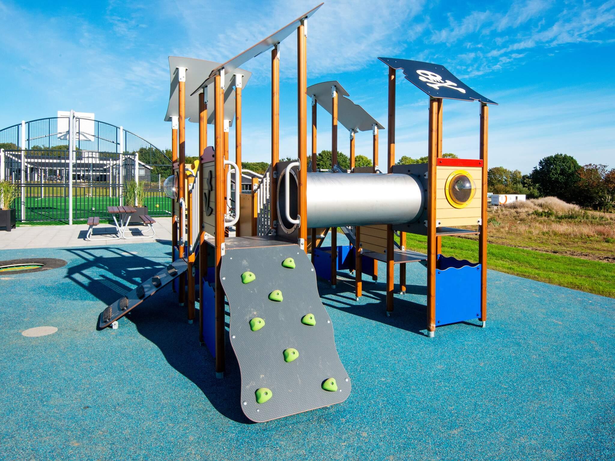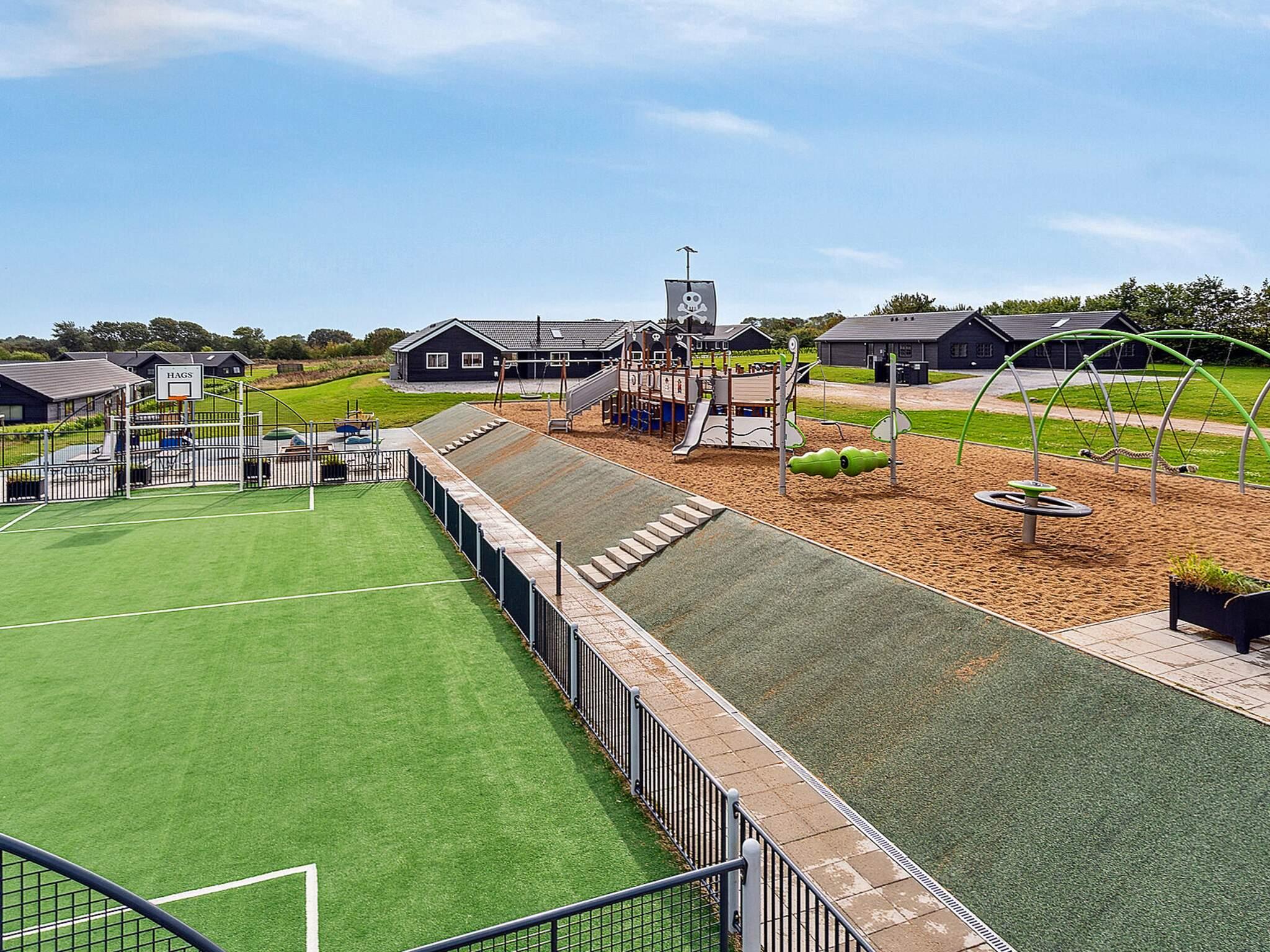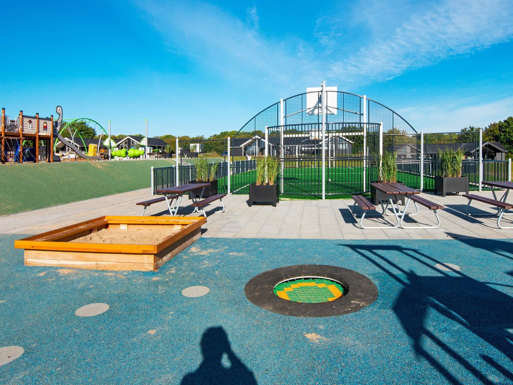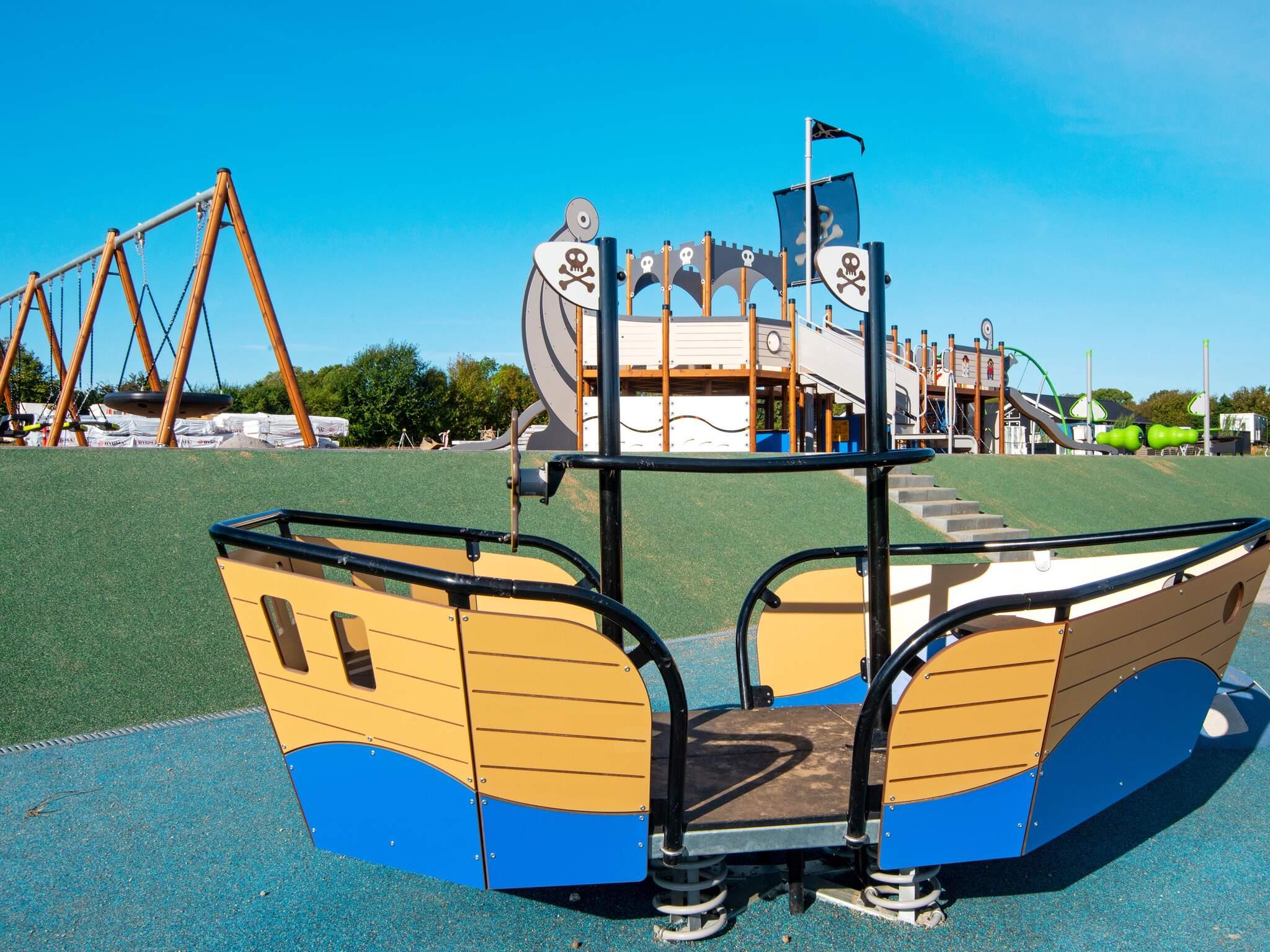 Alle luksusferiehuse i Mommark har adgang til et stort, fælles udendørs legeområde og multibane. Her kan børn og sjæleunge tilbringe deres feriedage med at lege på det store piratskib, gynge, glide og klatre på klatrestativet. Den græsdækkede multibane kan bruges til fodbold, basketball, fodtennis, volleyball og badminton. Ved siden af ??legepladsen finder du også borde og bænke, hvor voksne og andre tilskuere kan hygge sig og slappe af.
