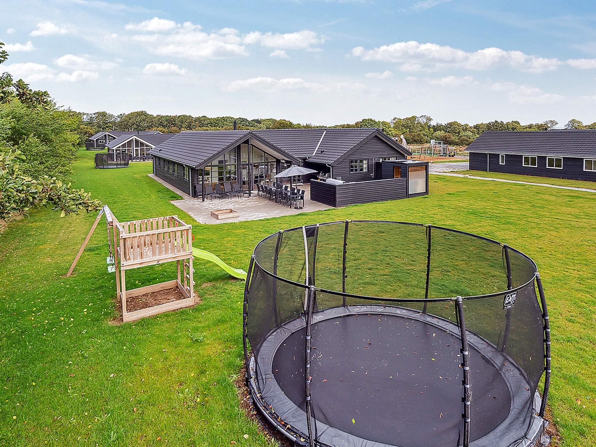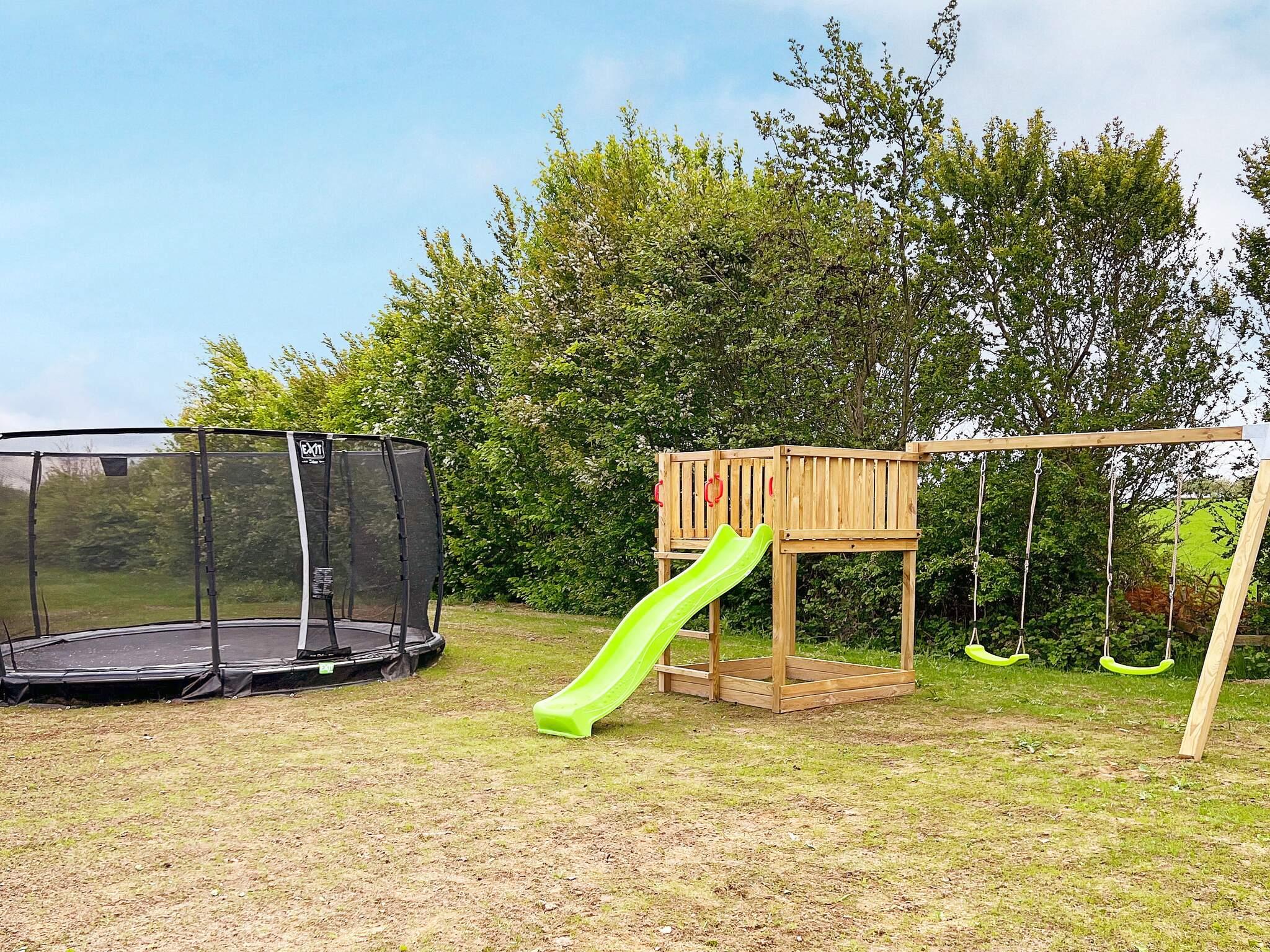 I sommerhusets have er der rig mulighed for hygge på trampolinen (anvendes på eget ansvar/forsikring) og legestalden med gynger og rutsjebane.