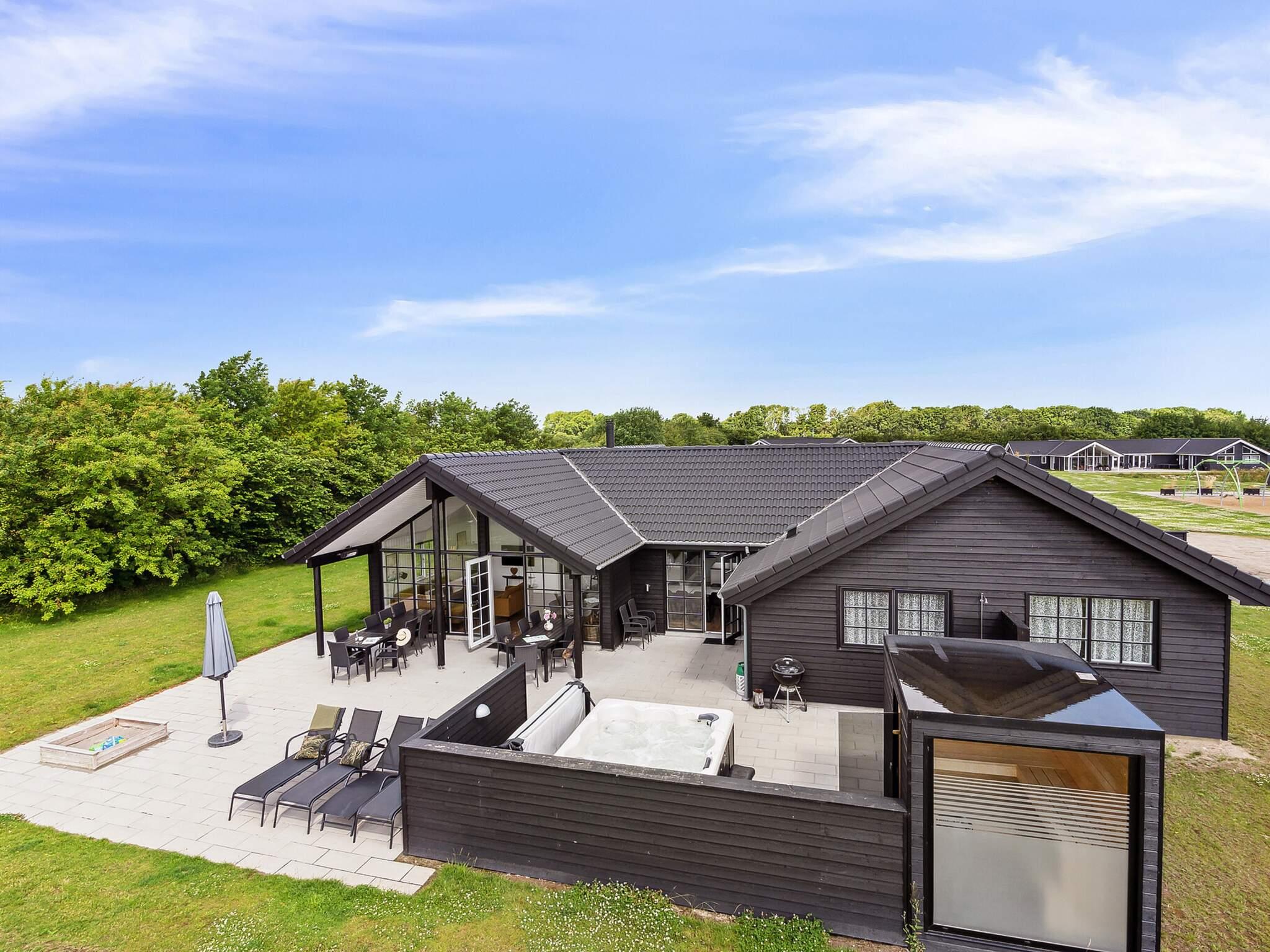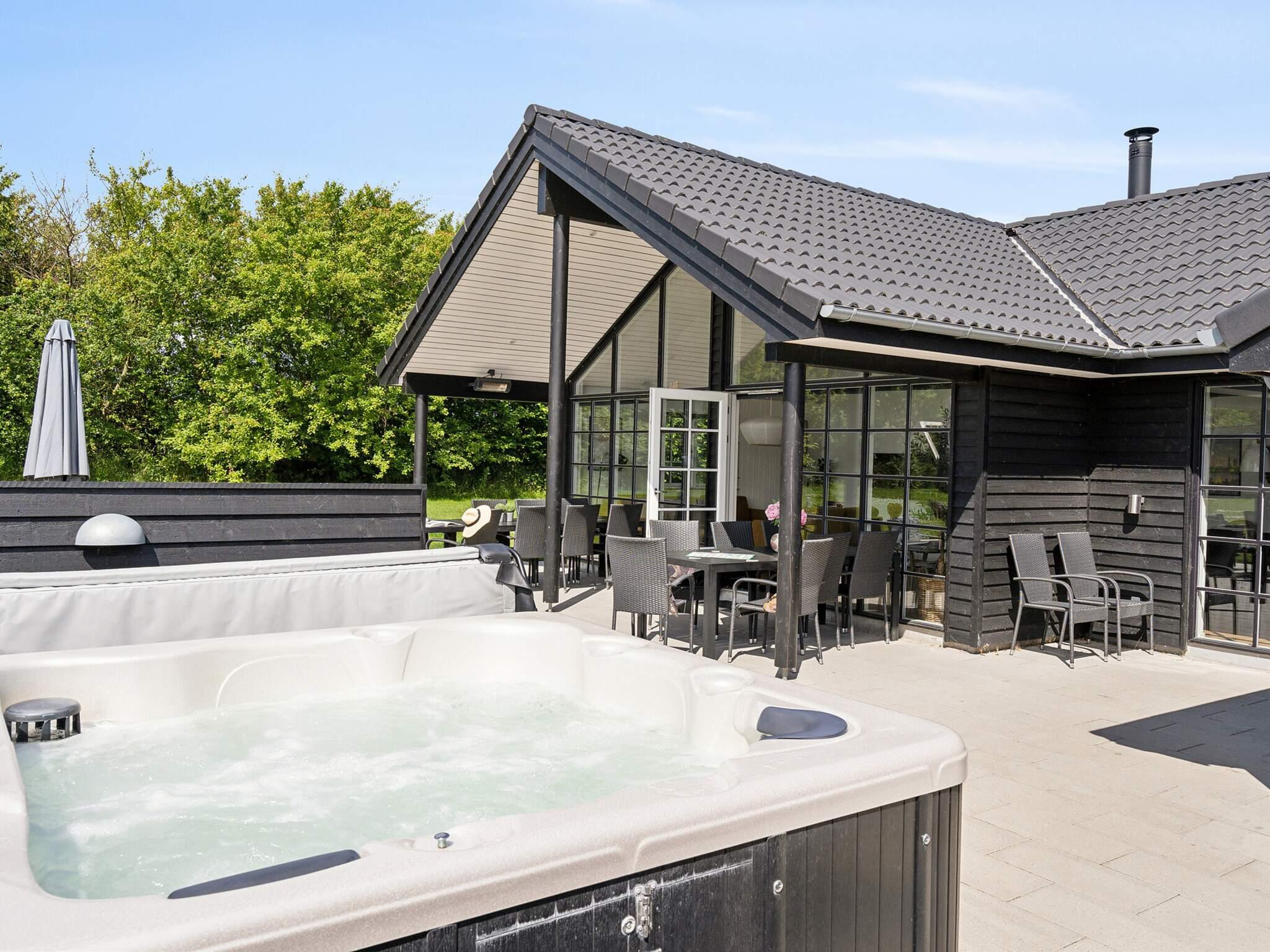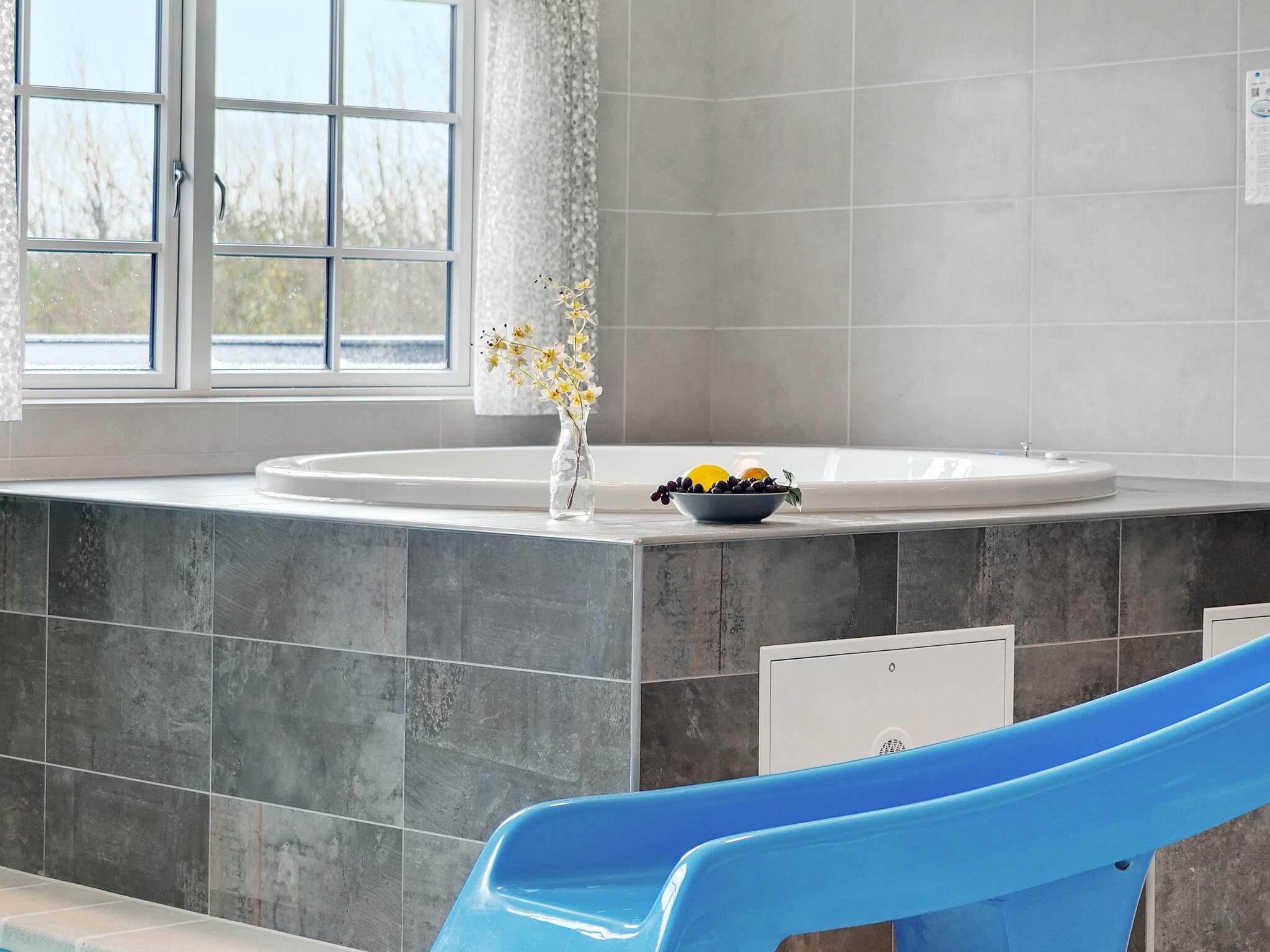 I Mommark finder du dette luksusferiehus til 18 personer med swimmingpool og både udendørs og indendørs spabade og saunaer. Trænger du til et koldt plask efter saunaen, er der udendørs bruser. Vandelskere kan også brænde lidt energi af i den 18 m2 indendørs swimmingpool med romerske trin, modstrømssystem og vandrutsjebane.