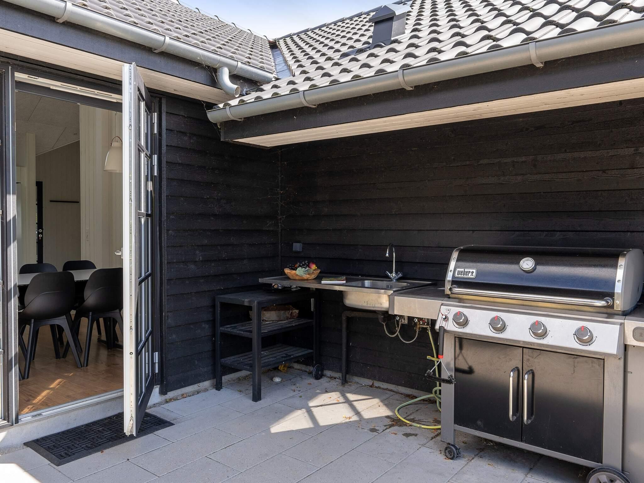 Hvis vejret er godt, kan aftensmaden tilberedes i udekøkkenet, hvor du finder bord, grill og vandhane. Er du ikke involveret i madlavningen, kan du slappe af i komfortable havemøbler på den delvist overdækkede terrasse med terrassevarmer.