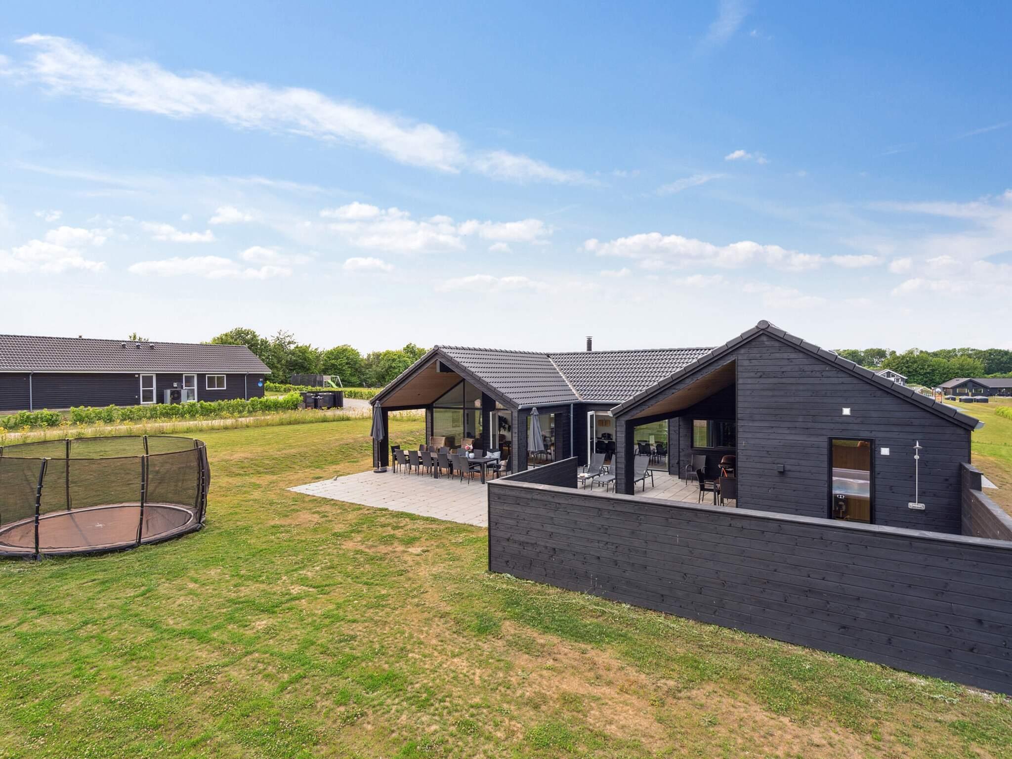 Husets udeareal byder også på et legeparadis for de mindste gæster. Med et legetårn, trampolin og gynge er timevis af sjov garanteret. Mens de yngste gæster leger, kan resten af ??gæsterne, hvis vejret tillader det, tilberede lækre måltider på husets grill eller slappe af på den delvist overdækkede terrasse med komfortable havemøbler.
