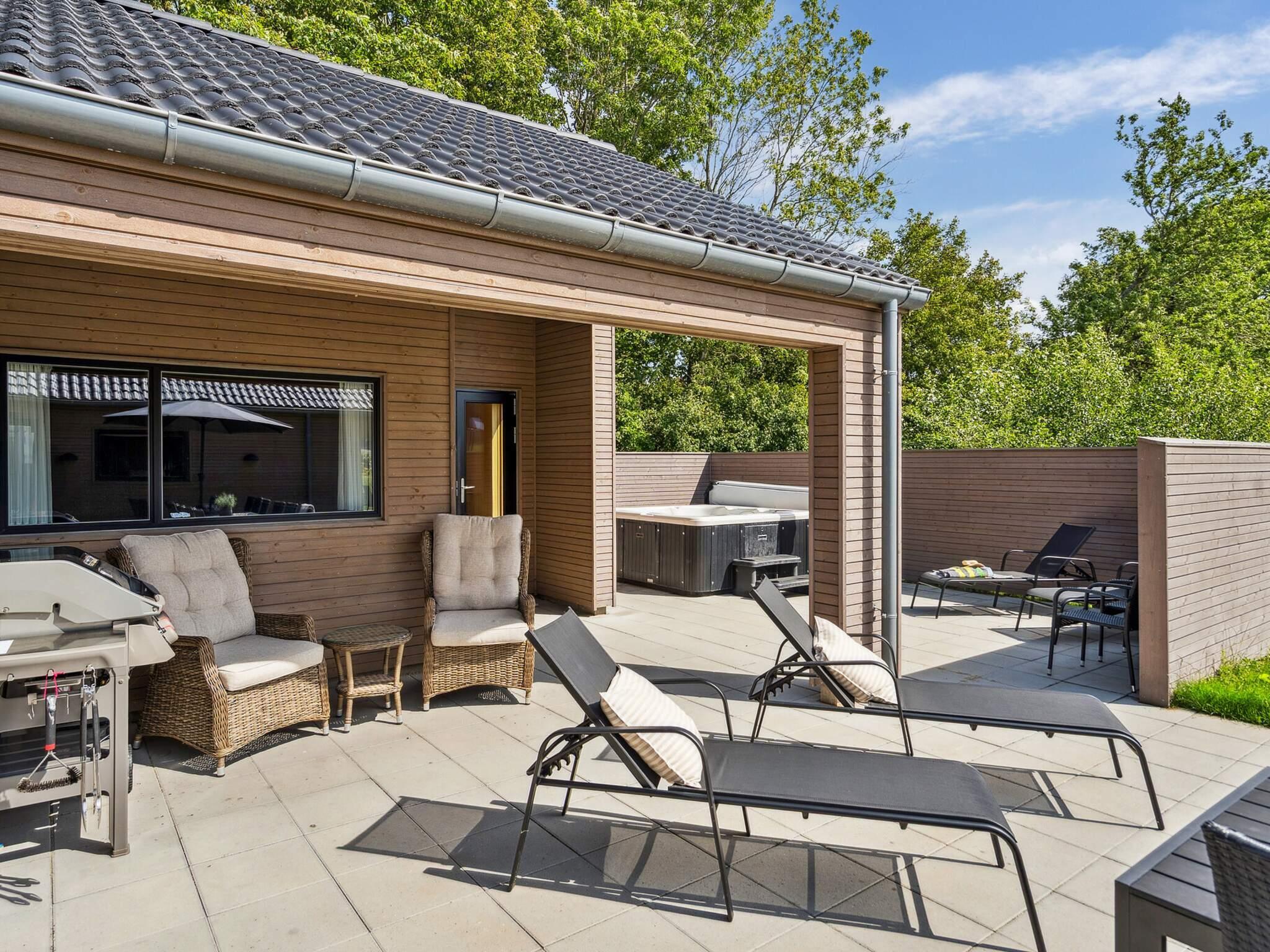 Udendørs er der en stor, delvist overdækket terrasse, hvor I kan nyde solen og samværet. Børnene kan lege på den nedgravede trampolin eller i haven, mens de voksne slapper af og hygger sig.