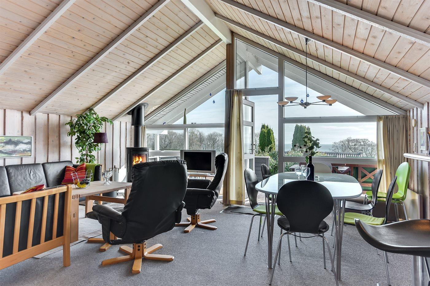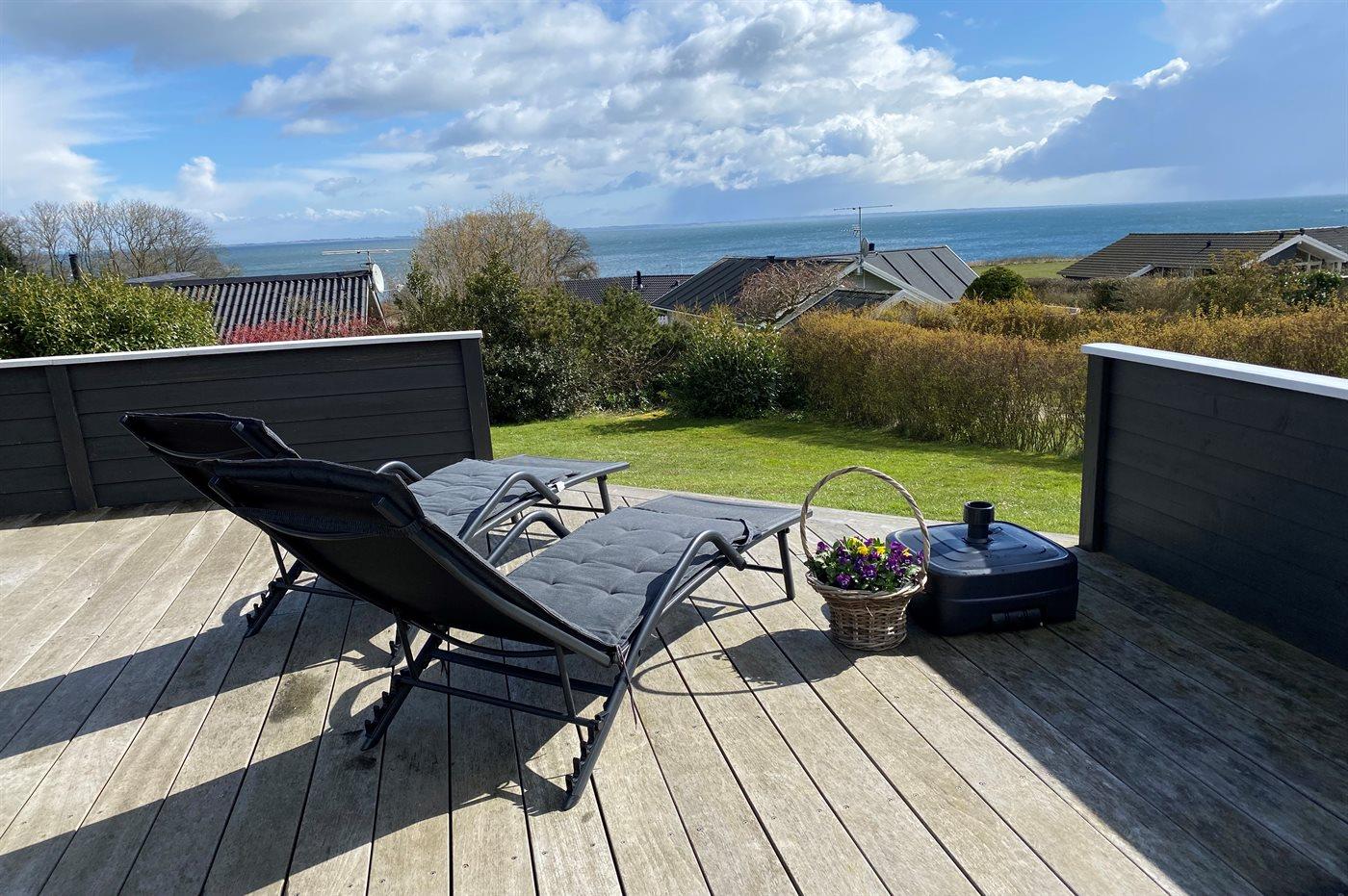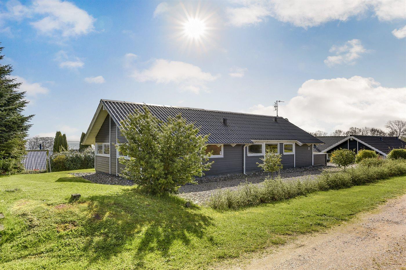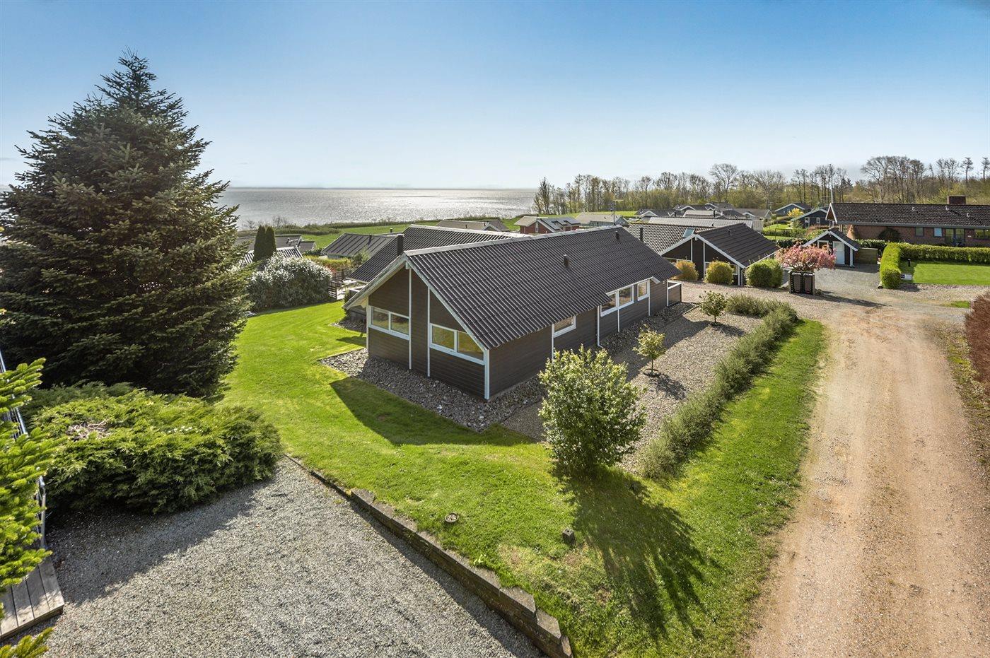 Højt beliggende med en fantastisk havudsigt fra såvel hus som grund ligger dette dejlige sommerhus. Huset ligger på en skrånende grund, på en lukket vej, i et mindre og roligt sommerhusområde tæt på badestrand.