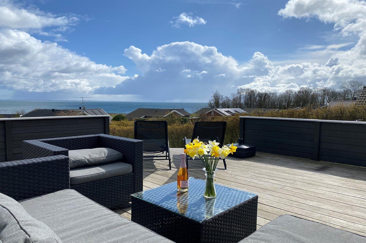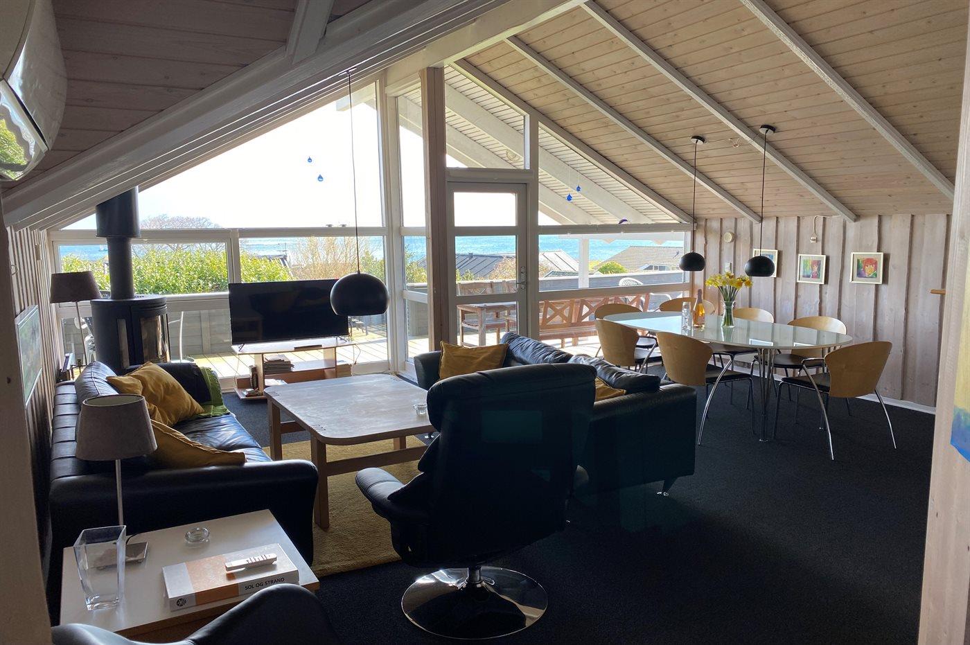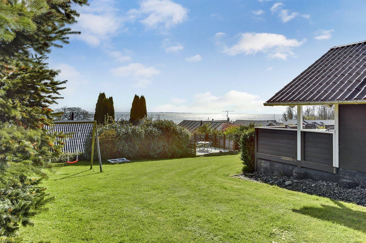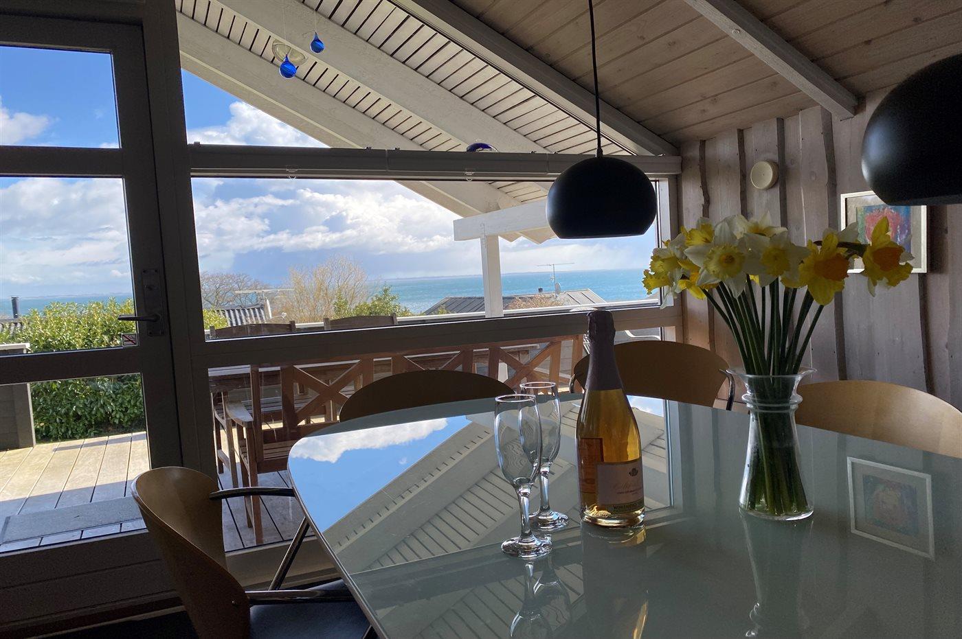 Højt beliggende med en fantastisk havudsigt fra såvel hus som grund ligger dette dejlige sommerhus. Huset ligger på en skrånende grund, på en lukket vej, i et mindre og roligt sommerhusområde tæt på badestrand.
