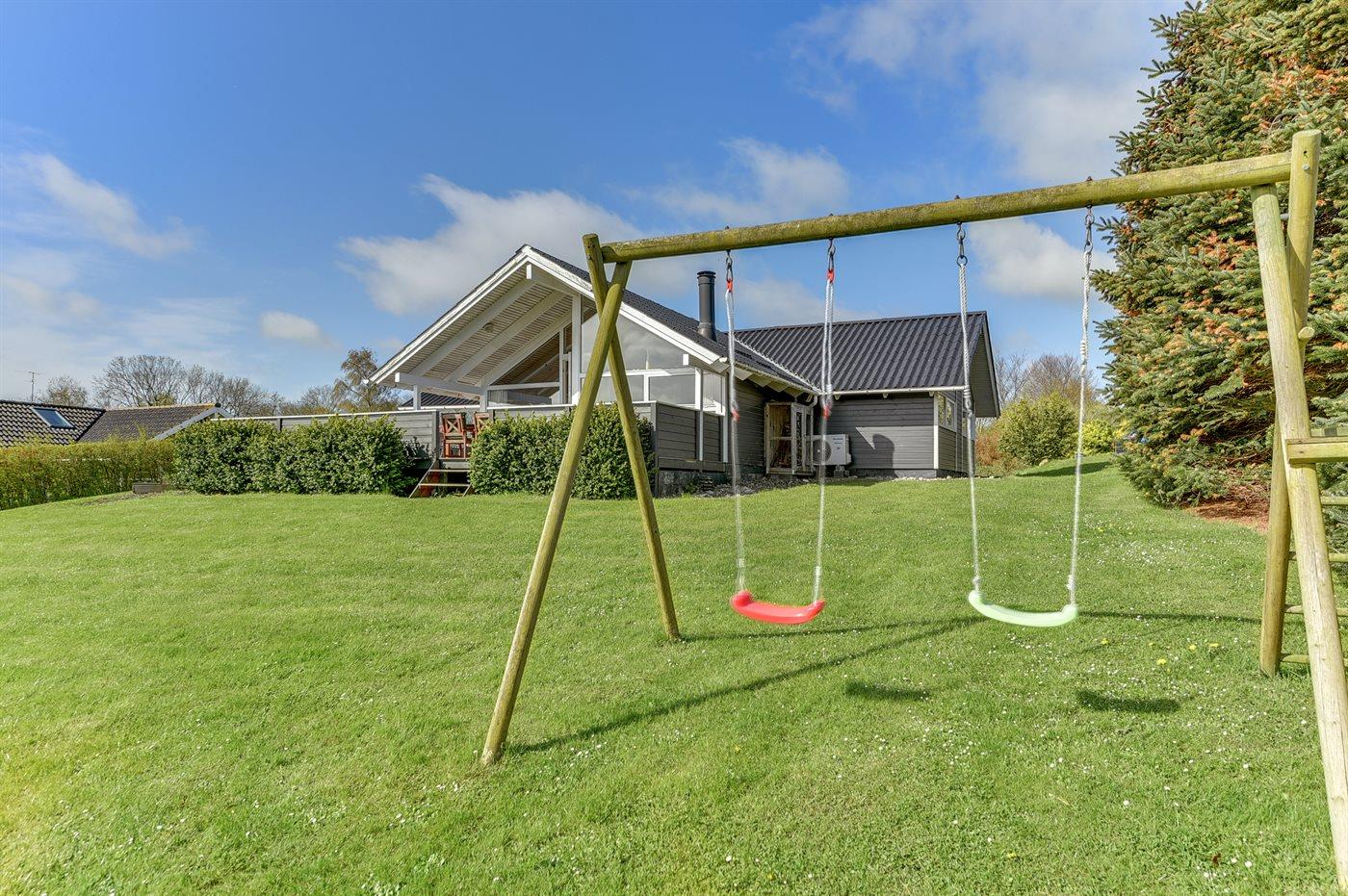 Ferieboligen er beliggende på en 816 m² stor havegrund. Der er 200 m til havet. Nærmeste forretning er beliggende i en afstand af 4000 m. Til ferieboligen hører 40 m² terrasseareal. Desuden er der 15 m² overdækket terrasse. Gynge. Sandkasse. Parkering ved ferieboligen.