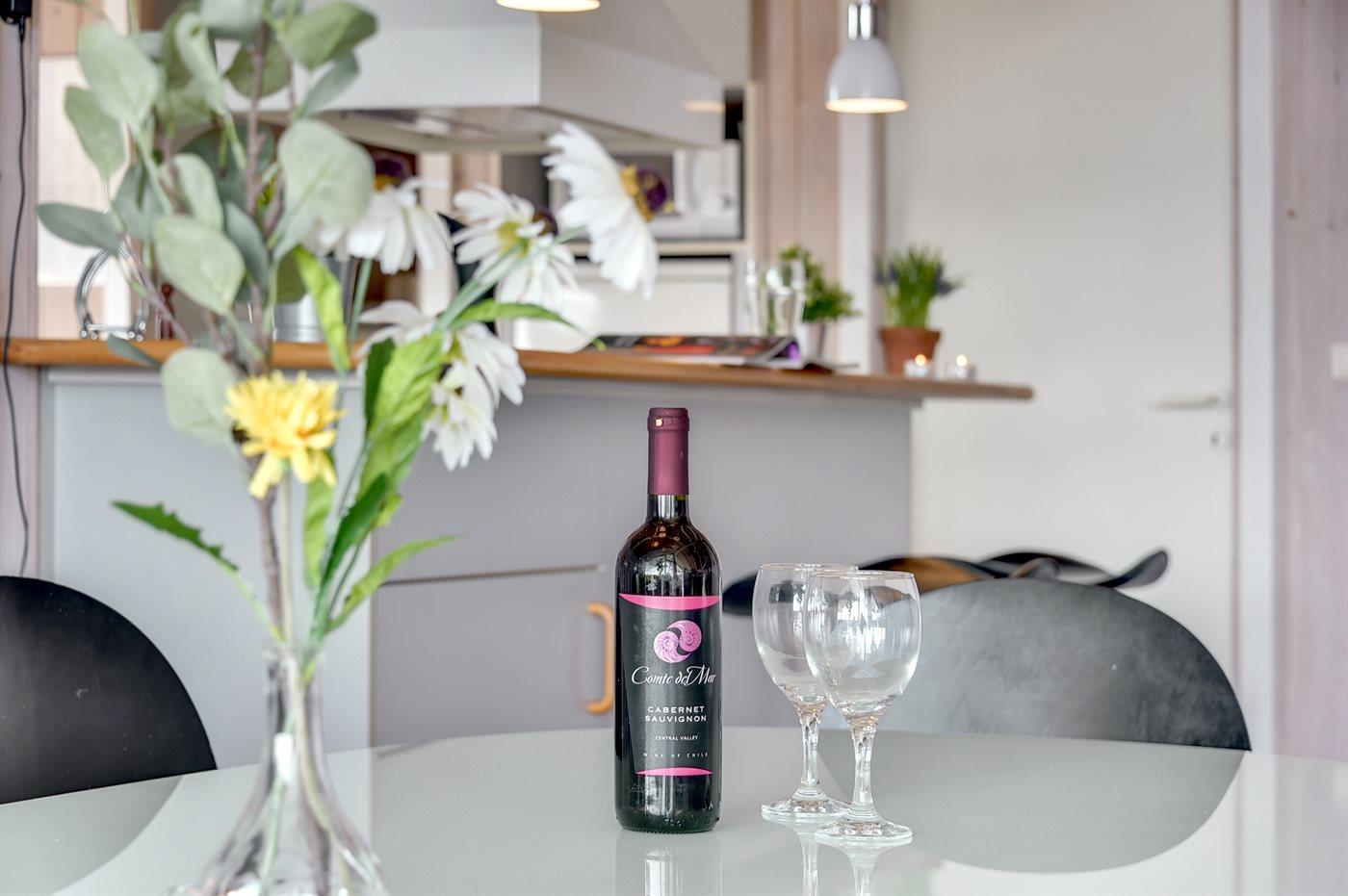 Køkkenet er udstyret med 1 køleskab. Der er 4 keramiske kogeplader, varmluftovn, mikrobølgeovn samt opvaskemaskine.