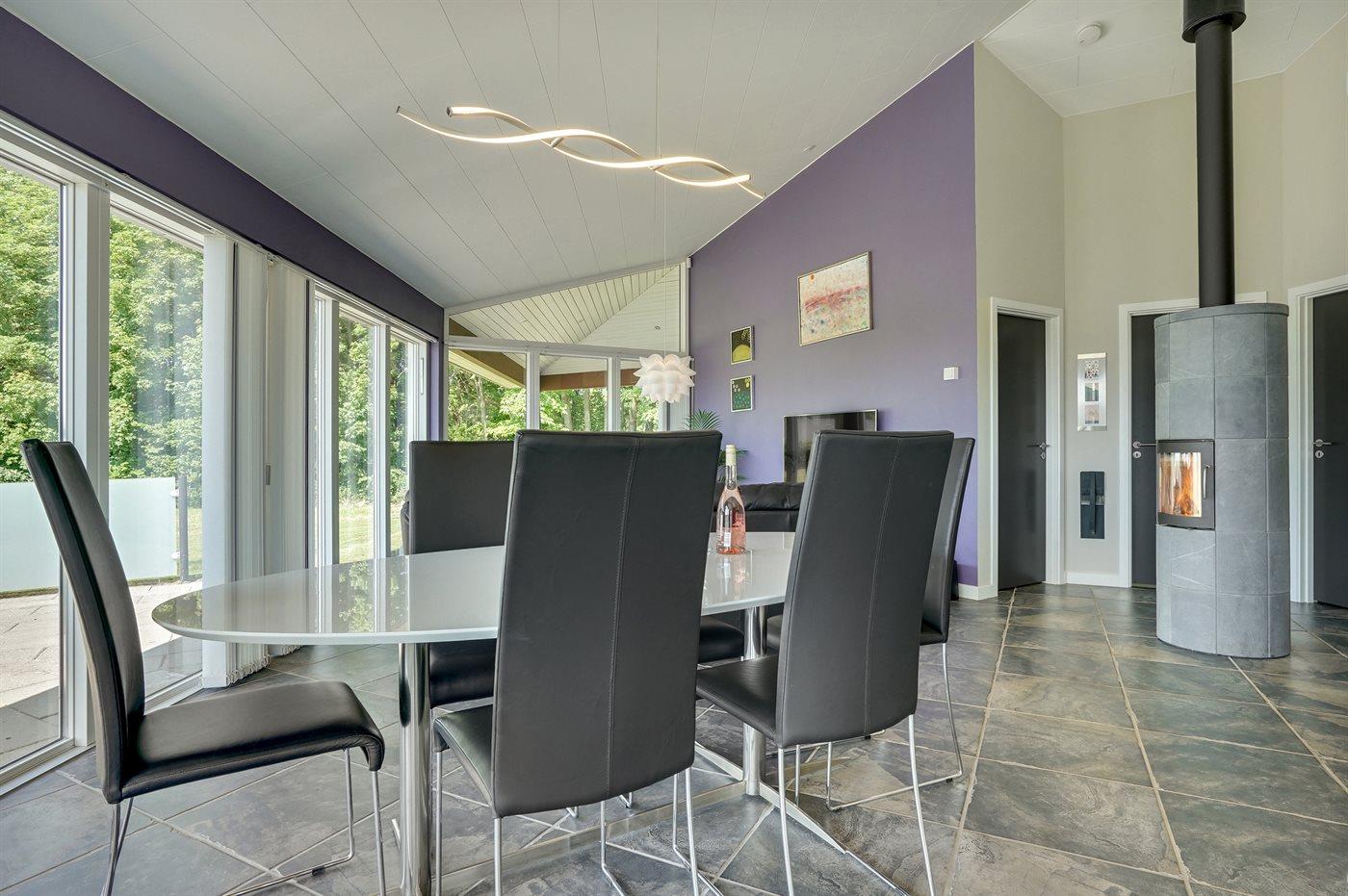 Unikt og spændende indrettet sommerhus med god plads og med gode lysindfald fra de store vinduespartier i de fleste rum. Huset er beliggende på en delvis åben grund i et roligt og naturskønt område tæt på vandet og dejlig badestrand.