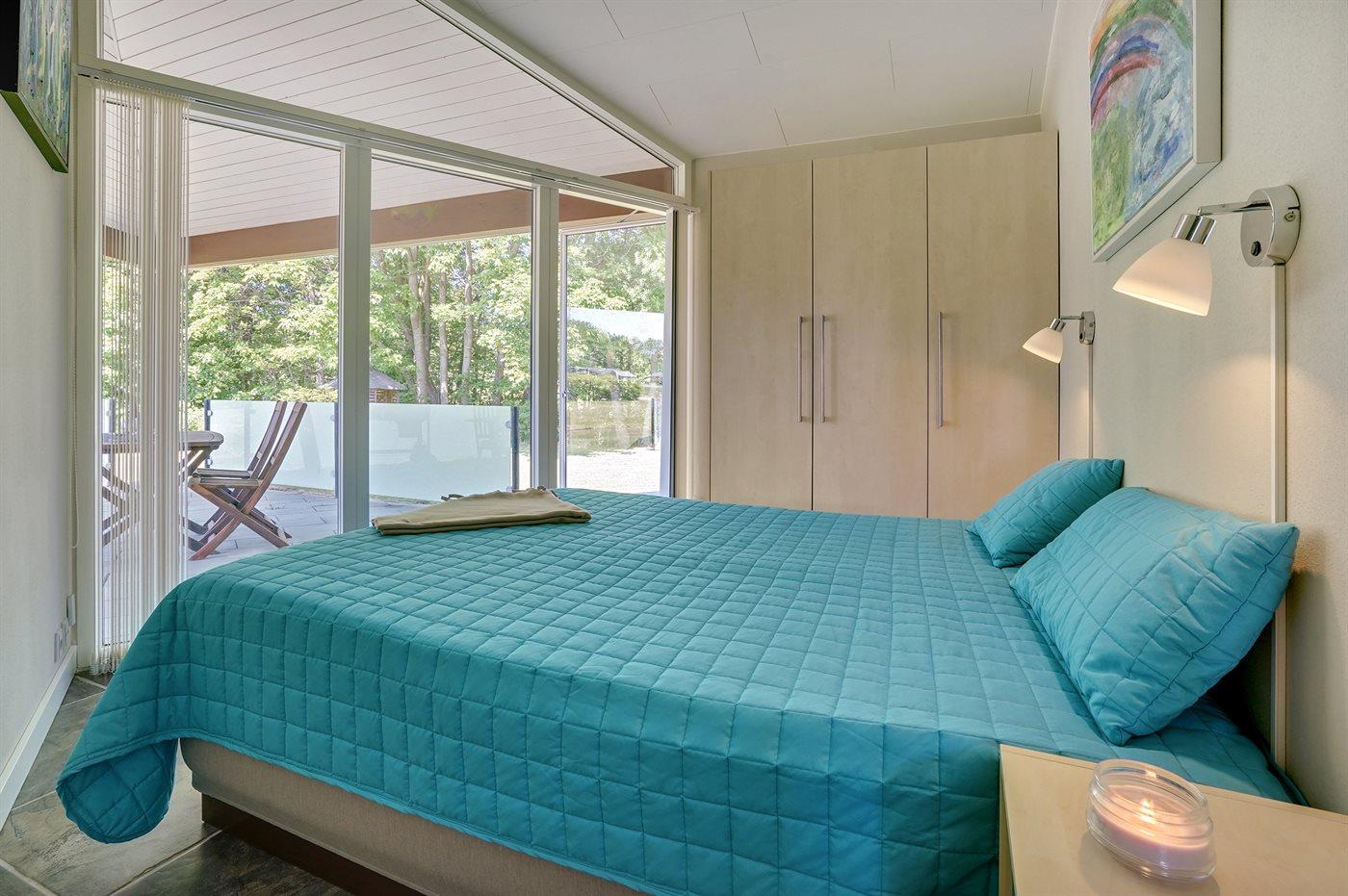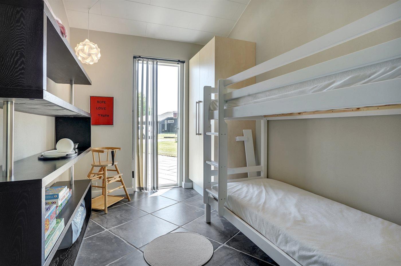 Der er i alt 3 soveværelser. Sovepladserne fordeler sig på: 4 sovepladser i dobbeltsenge. 2 sovepladser i køjeseng. Derudover er der 1 stk. barneseng.